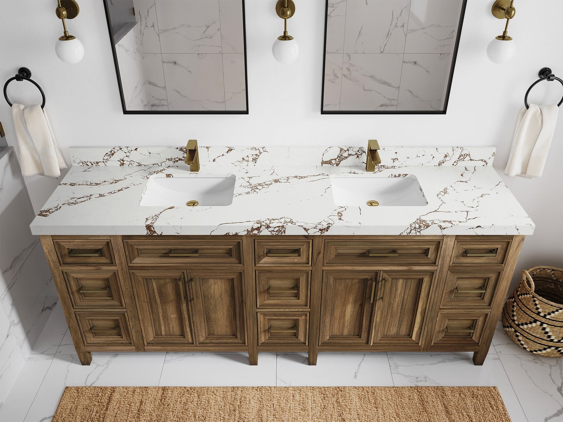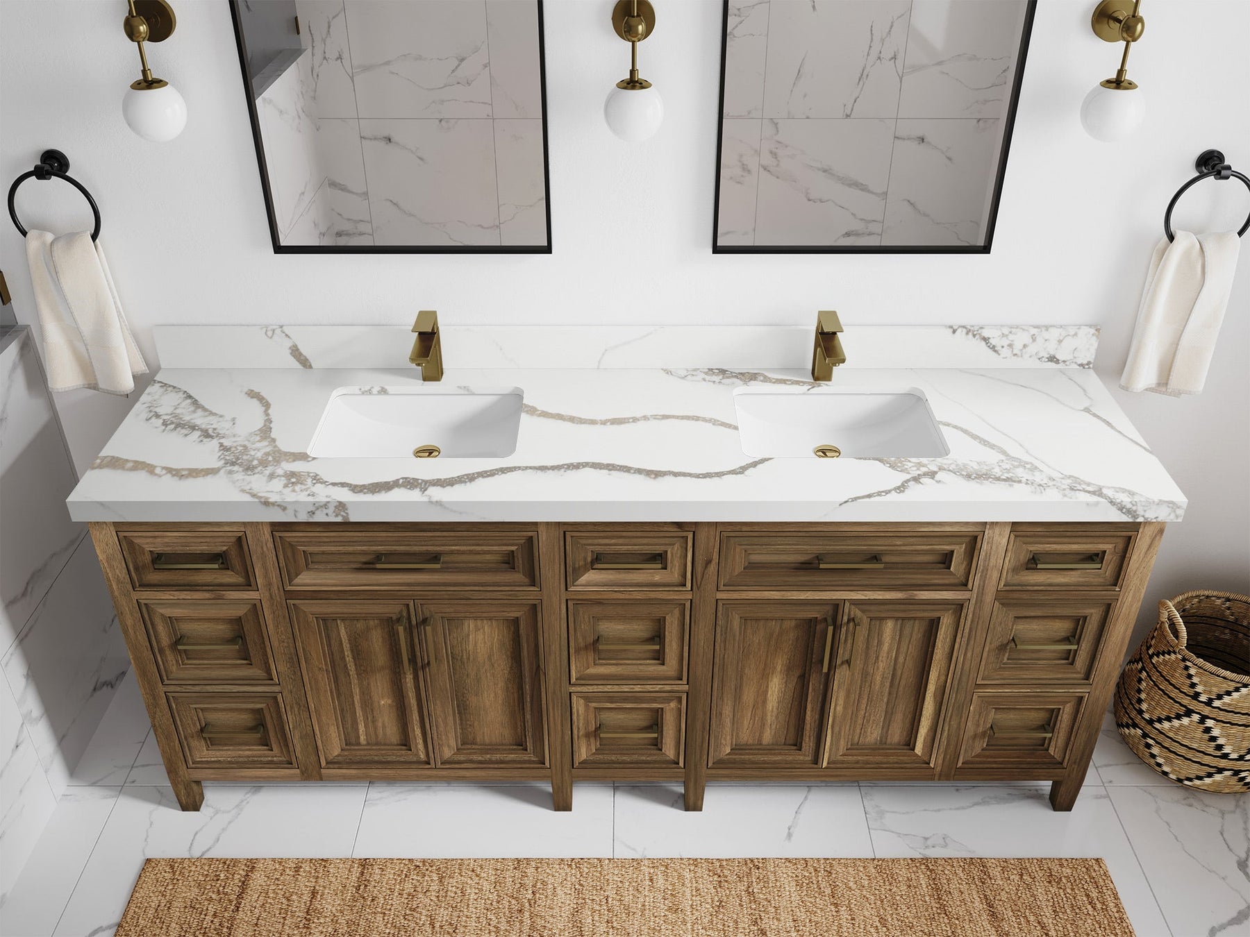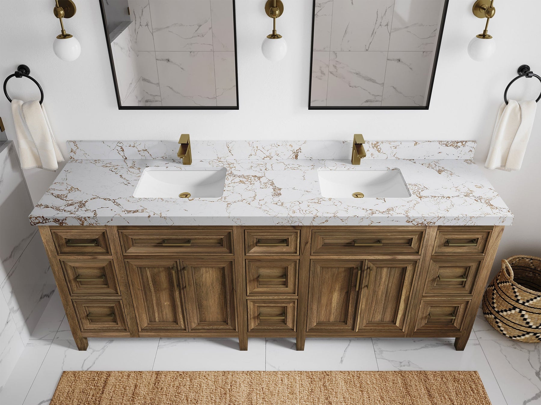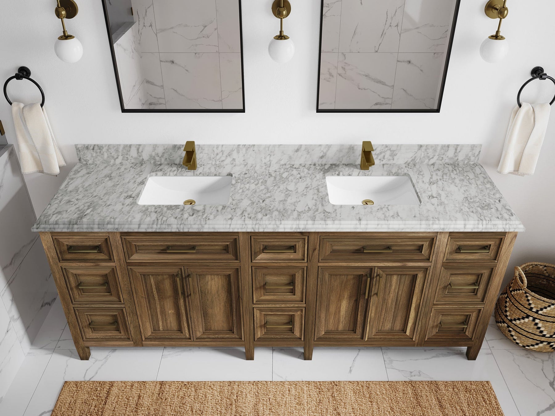 Vanity Countertops options: For Calacatta Laza Quartz, Empira White Quartz, Pure White Quartz we have 2 options Straight-Mitered Edge & Double Cove Edge, For Calacatta Black Quartz, Calacatta Gold Quartz, Calacatta Nuvo Quartz, Carrara Marble, Carrara Quartz, Pearl Light Gray Quartz, Piatra Gray Quartz, Venatino Quartz, and Light Concrete Gray Quartz we only have Straight - Mitered Edge option.