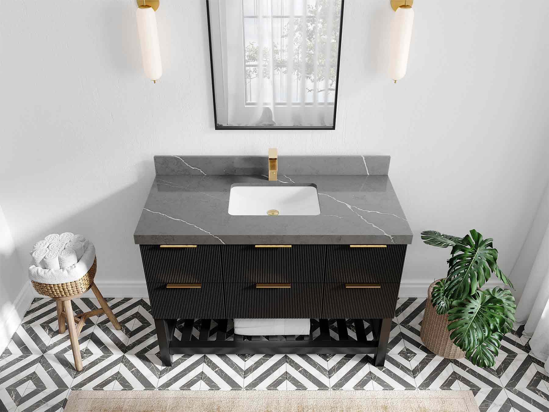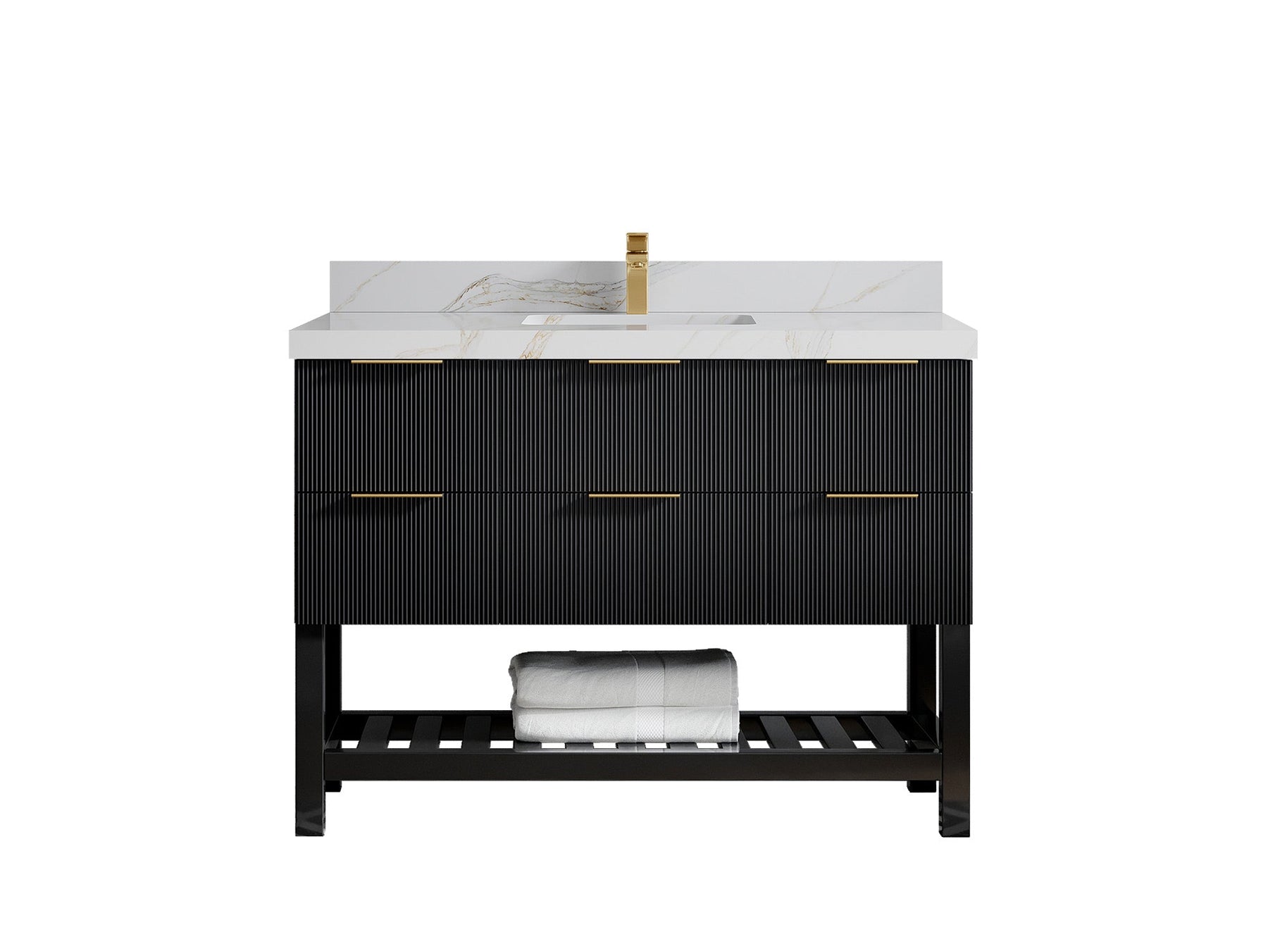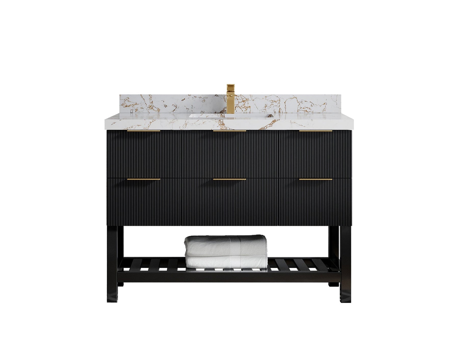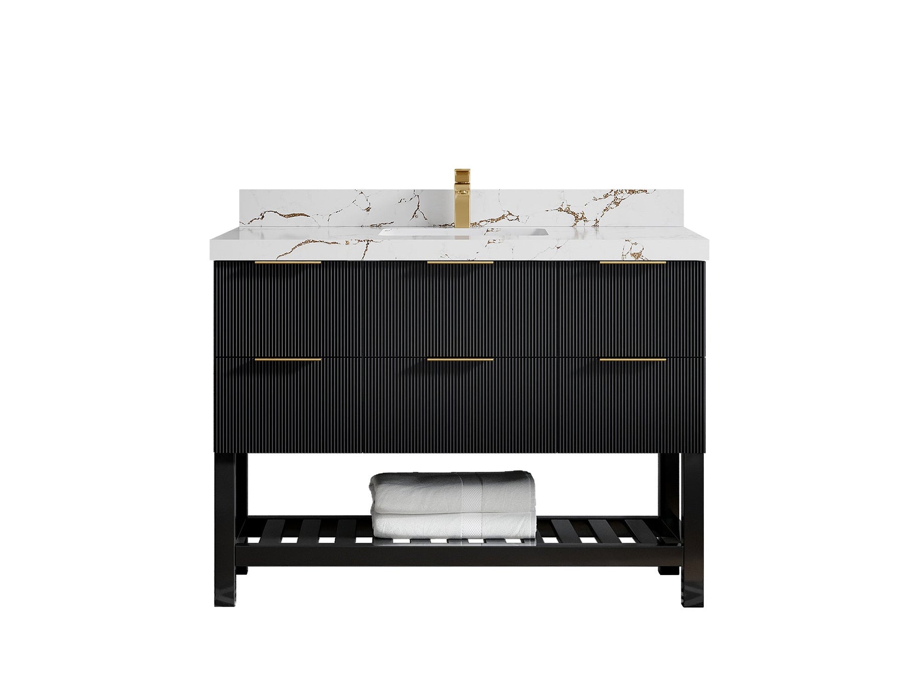 Catalina 48 in W x 22 in D Free Standing Reeded Single Sink Bathroom Vanity | Black