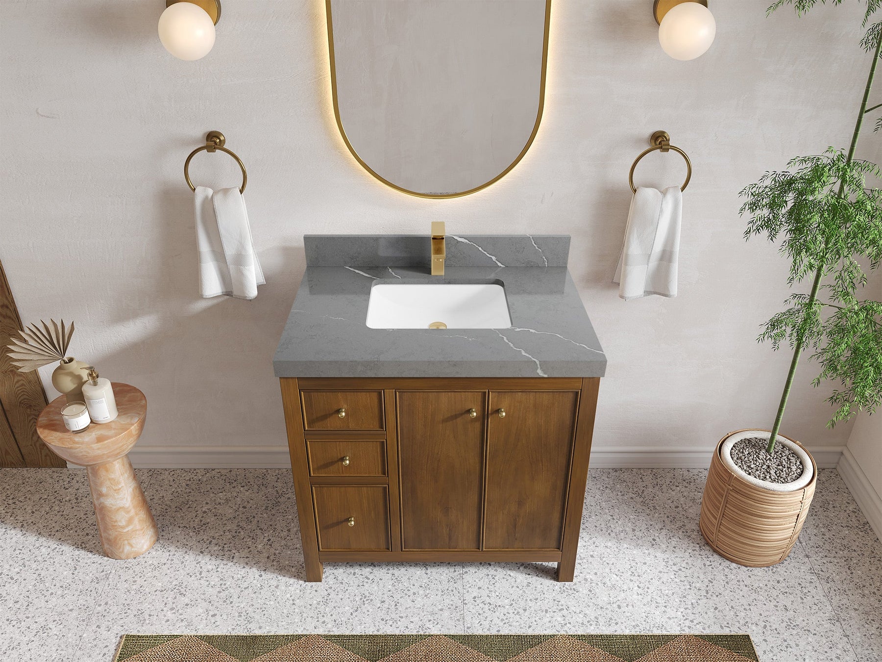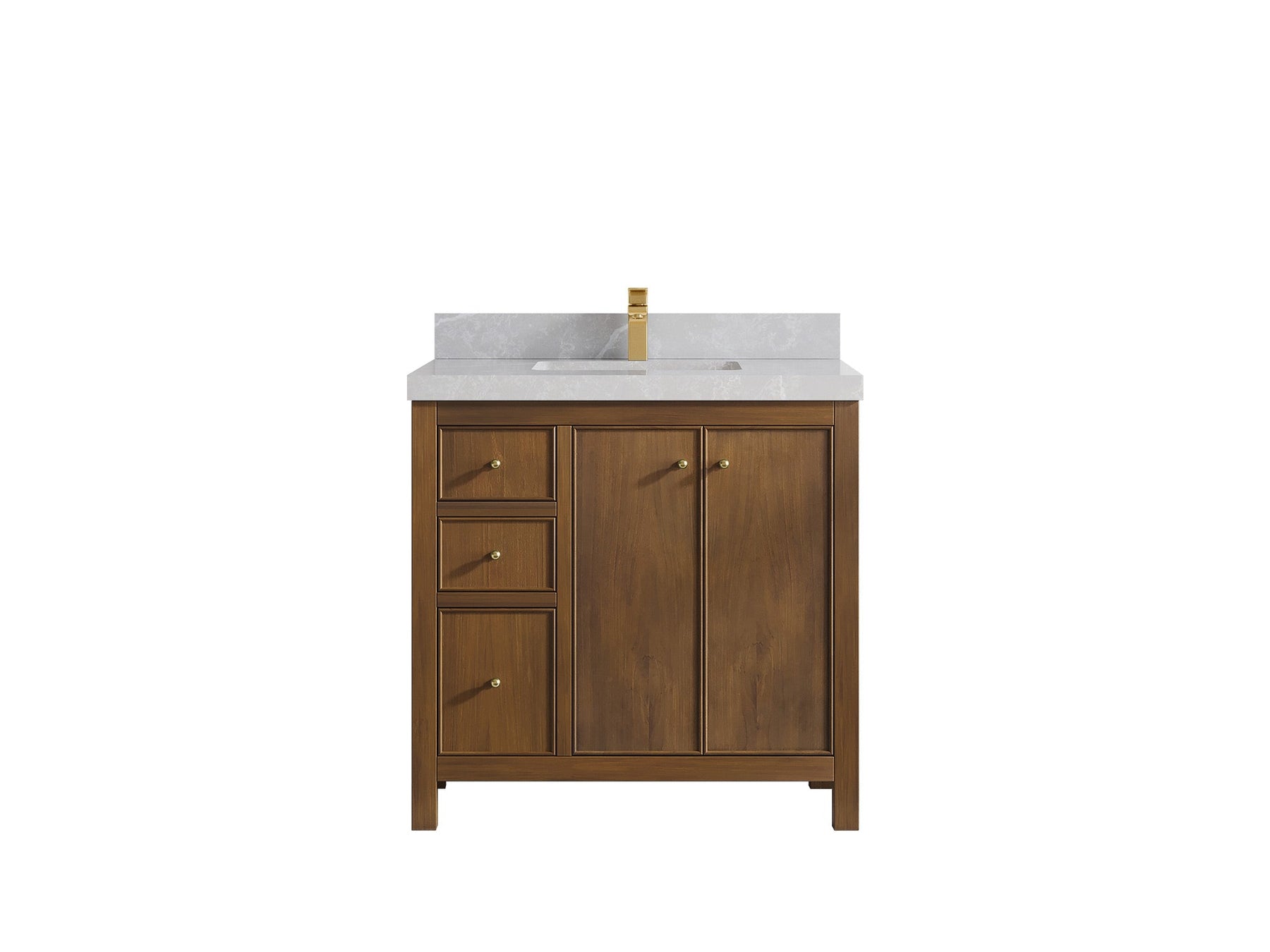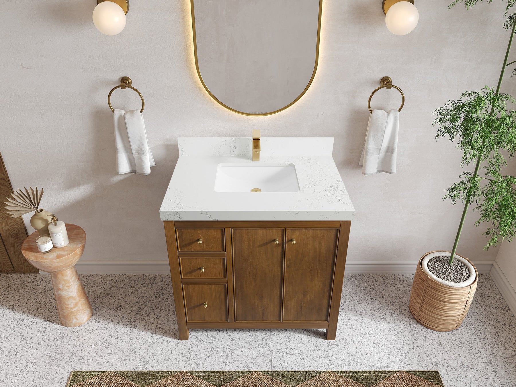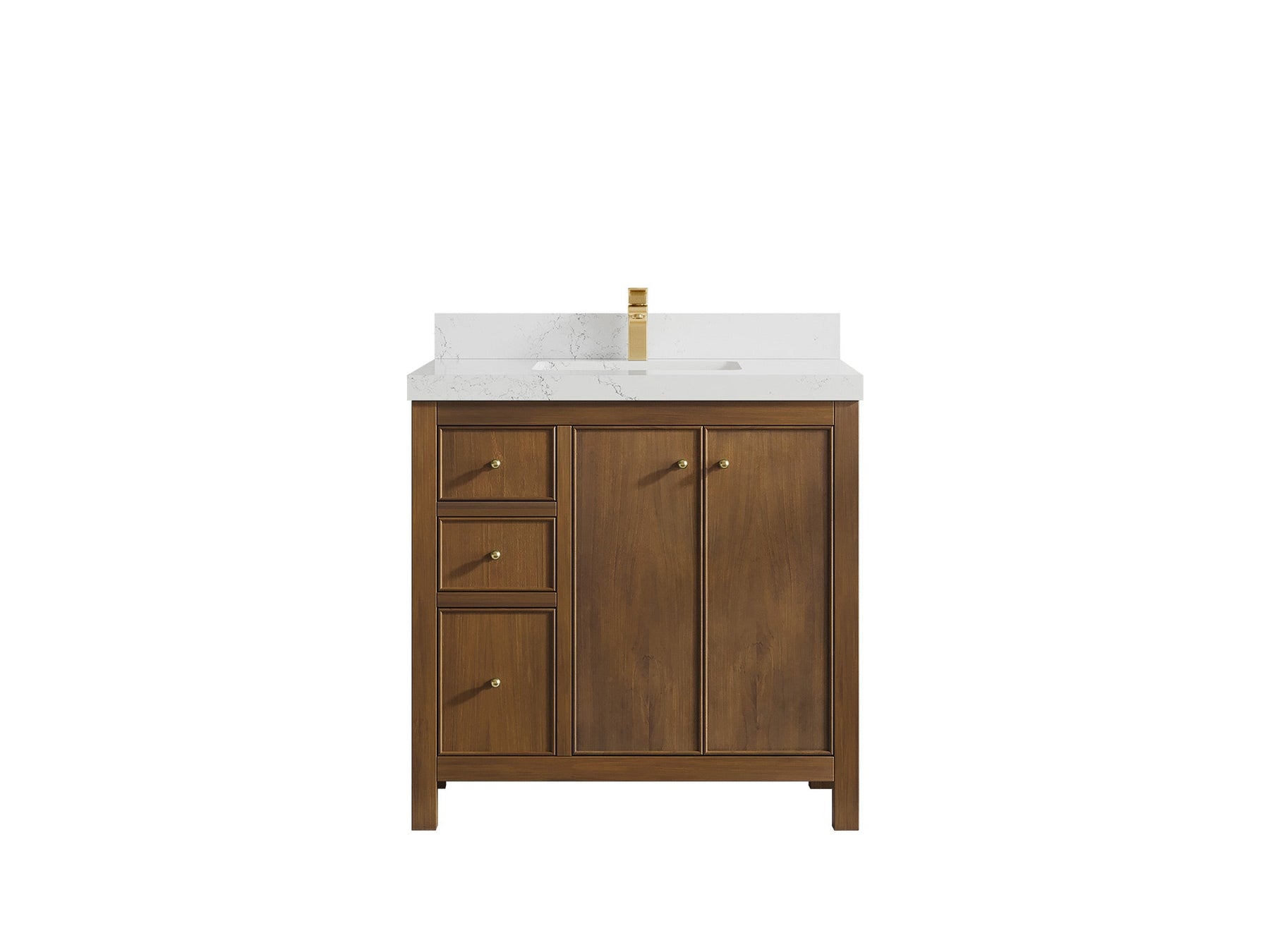 Chicago Teak 36 in. W x 22 in. D Right Offset Sink Bathroom Vanity - Willow Bath and Vanity