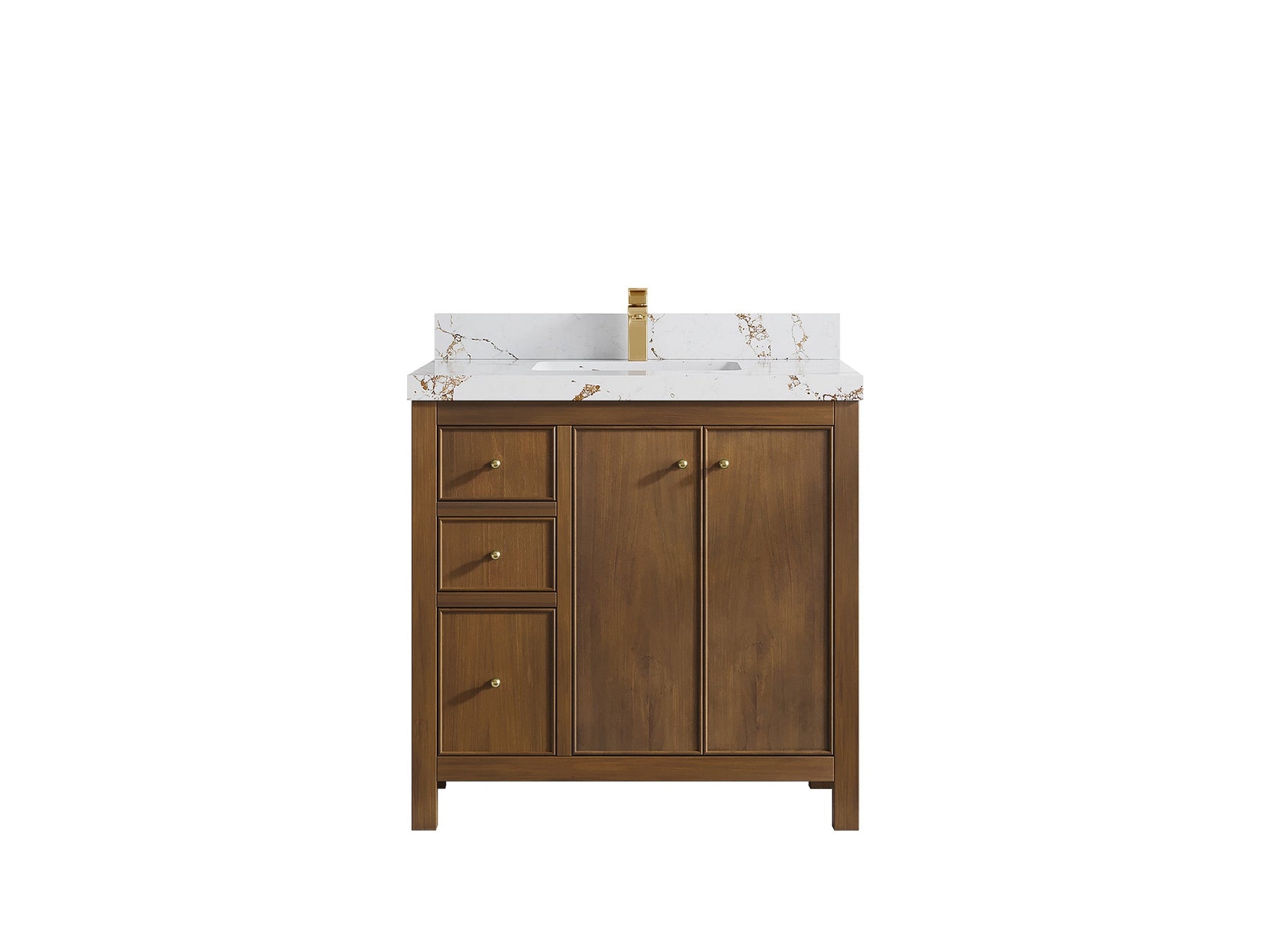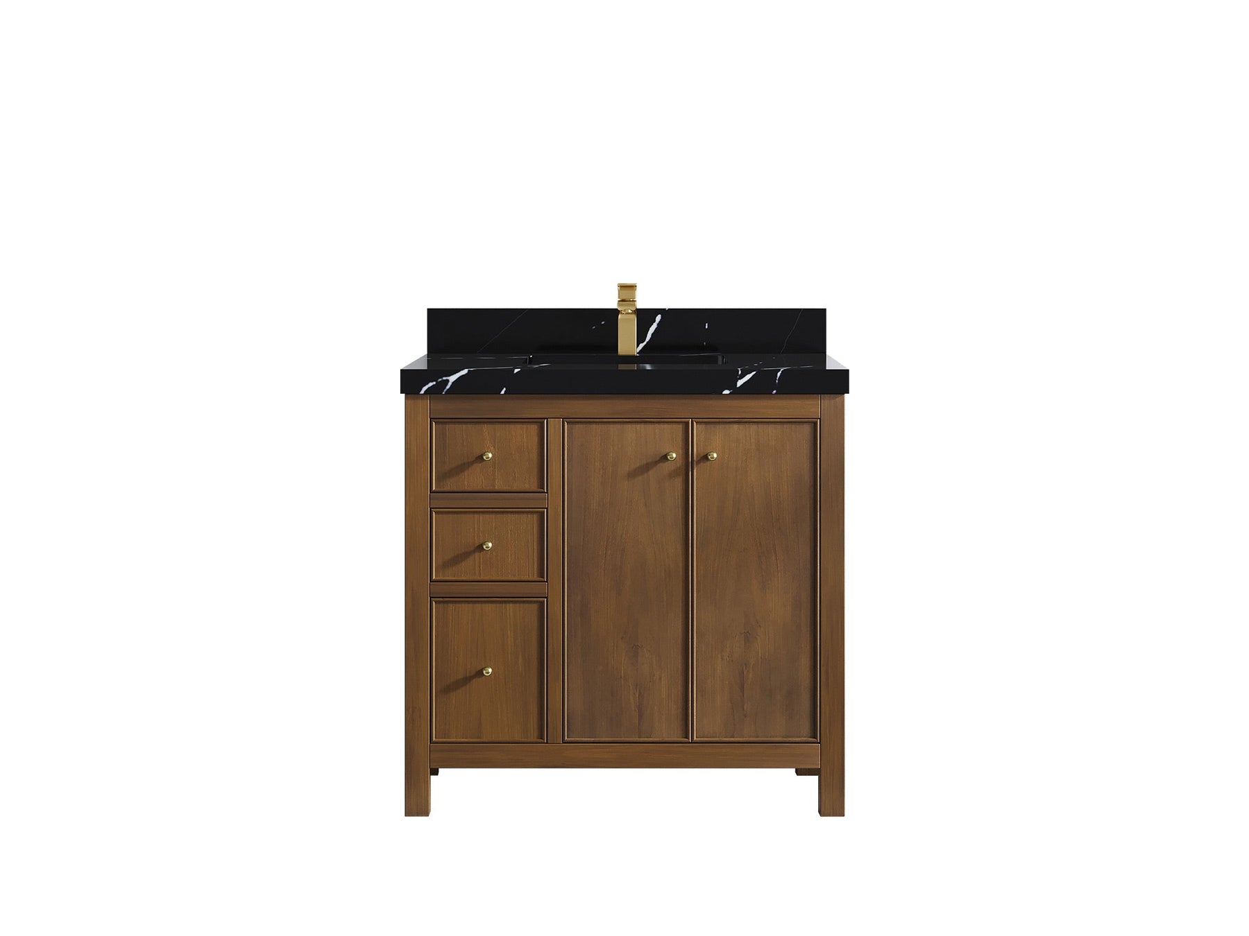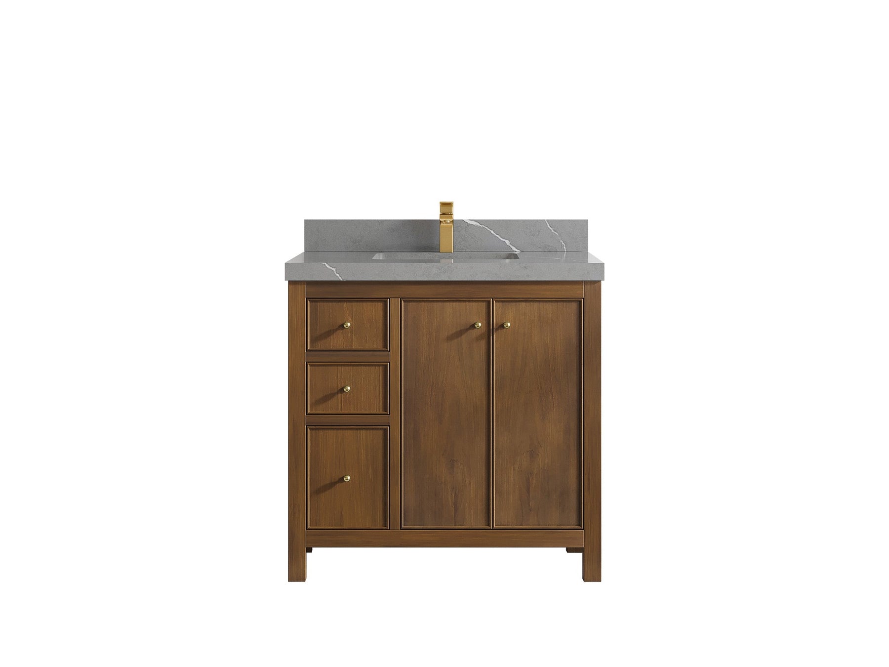 Chicago Teak 36 in. W x 22 in. D Right Offset Sink Bathroom Vanity - Willow Bath and Vanity