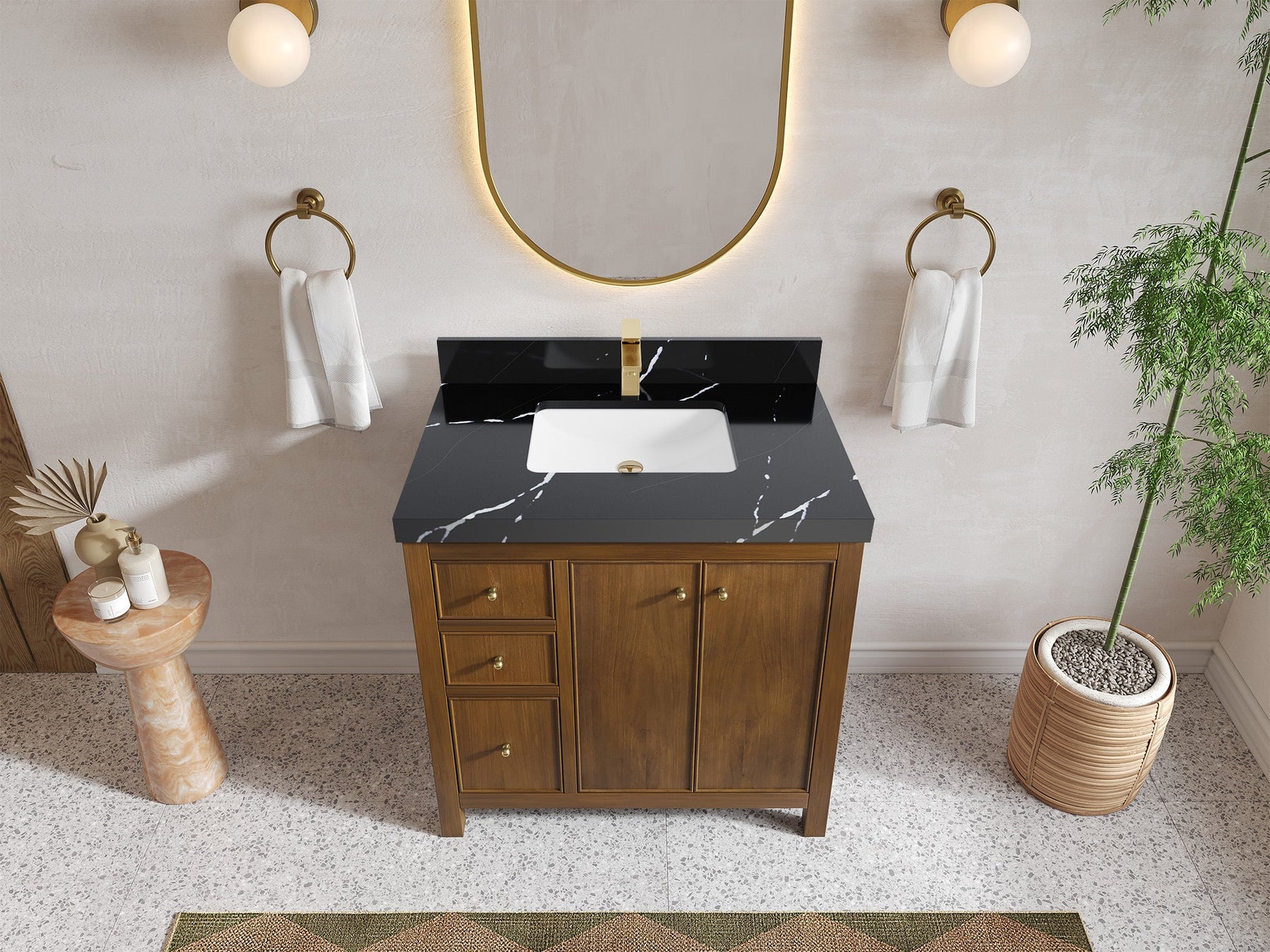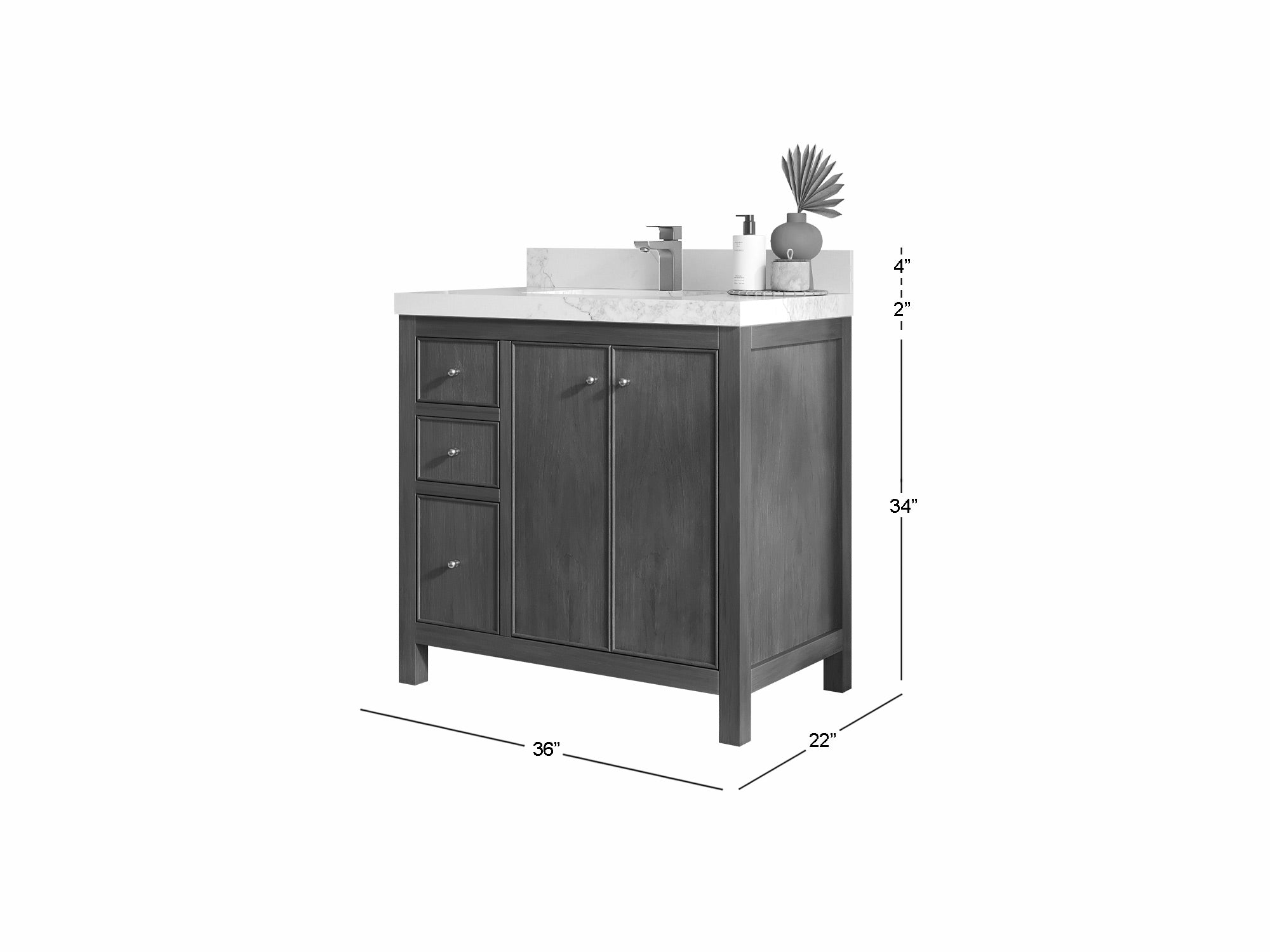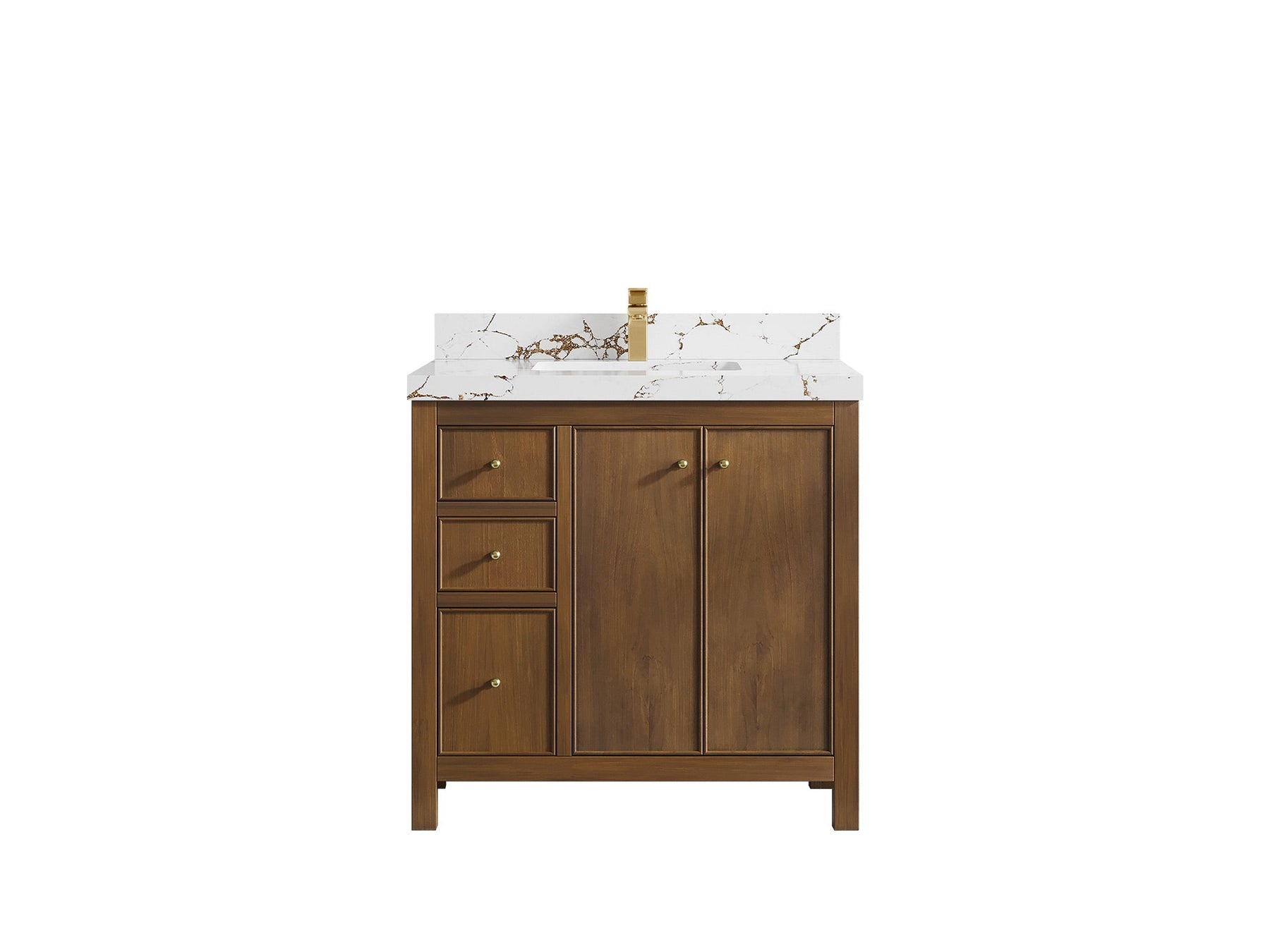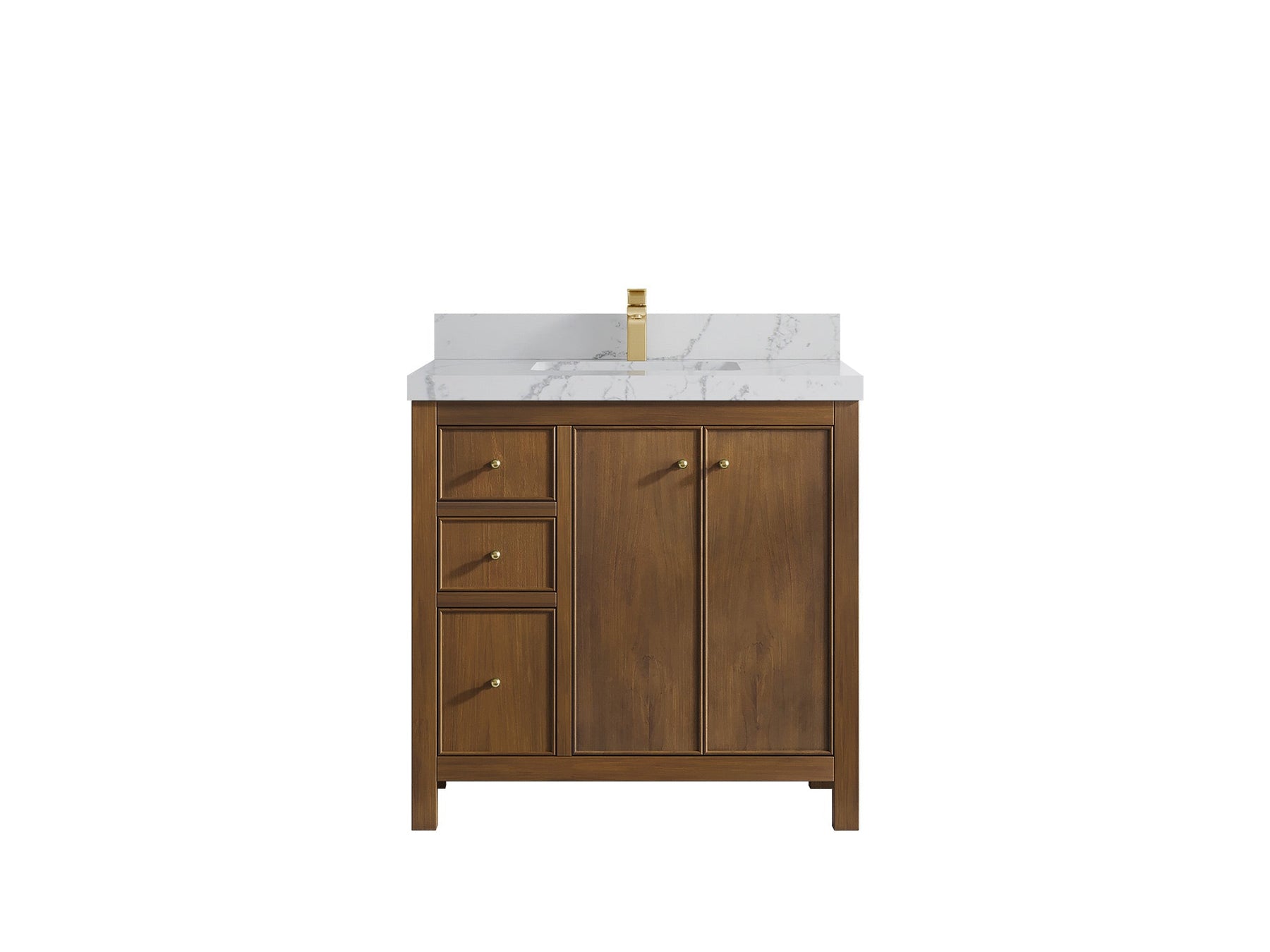 Chicago Teak 36 in. W x 22 in. D Right Offset Sink Bathroom Vanity - Willow Bath and Vanity