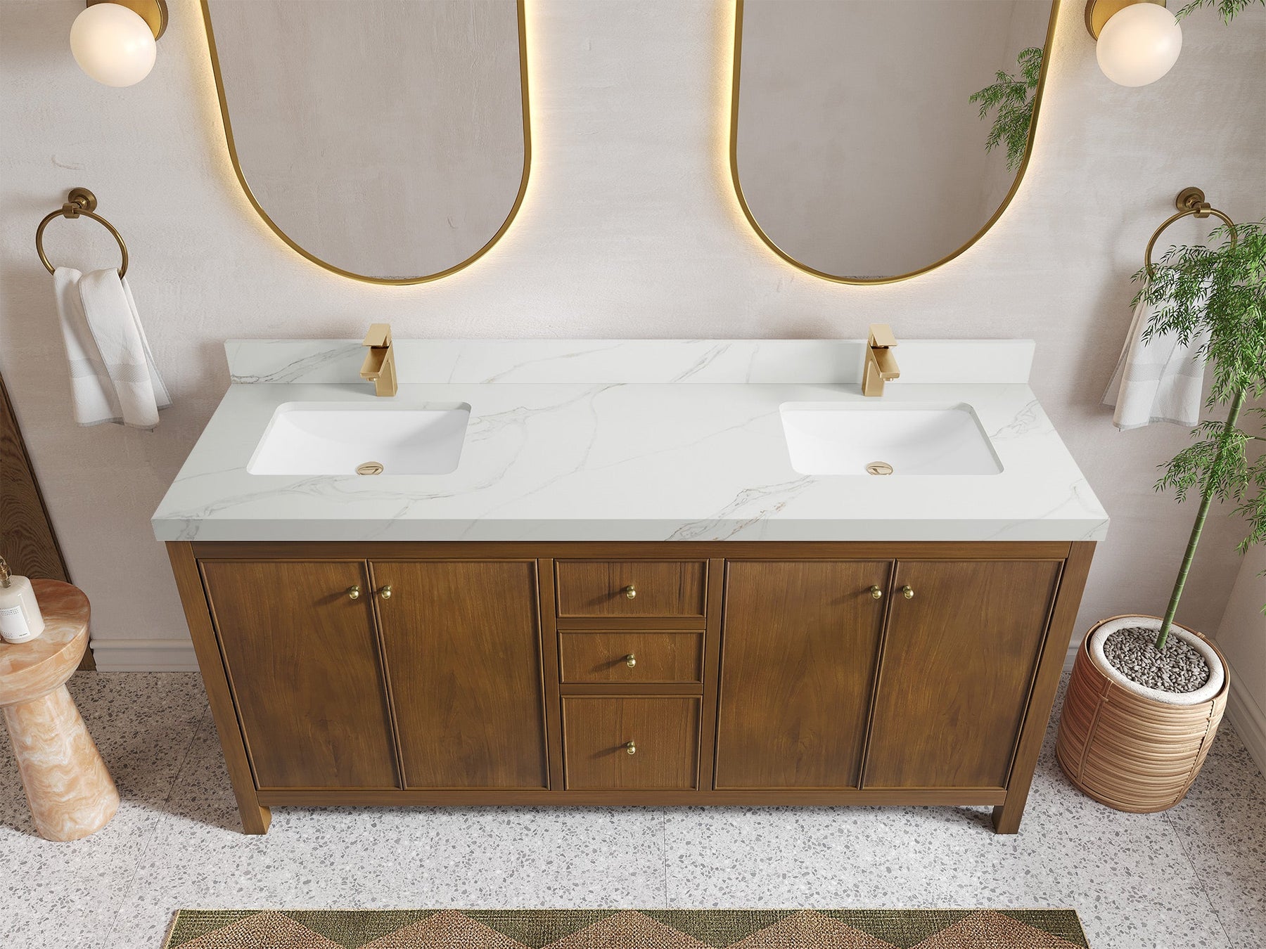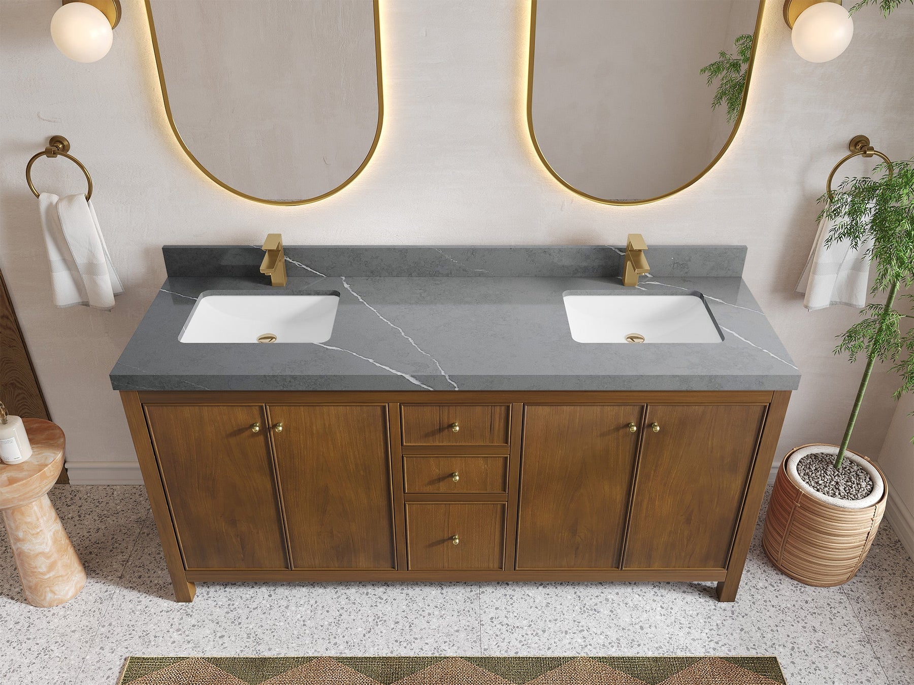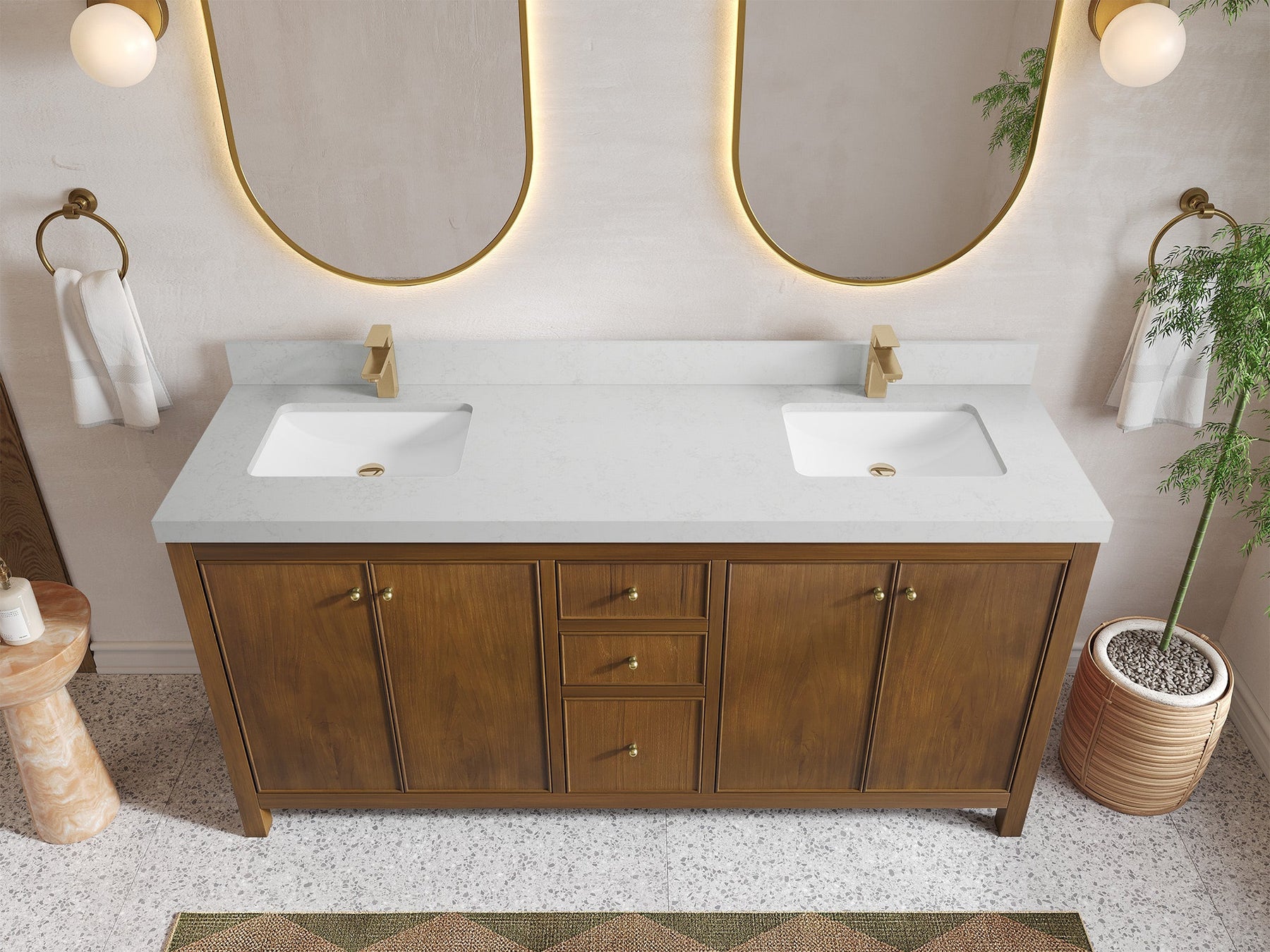 Chicago Teak 72 in. W x 22 in. D Double Sink Bathroom Vanity - Willow Bath and Vanity