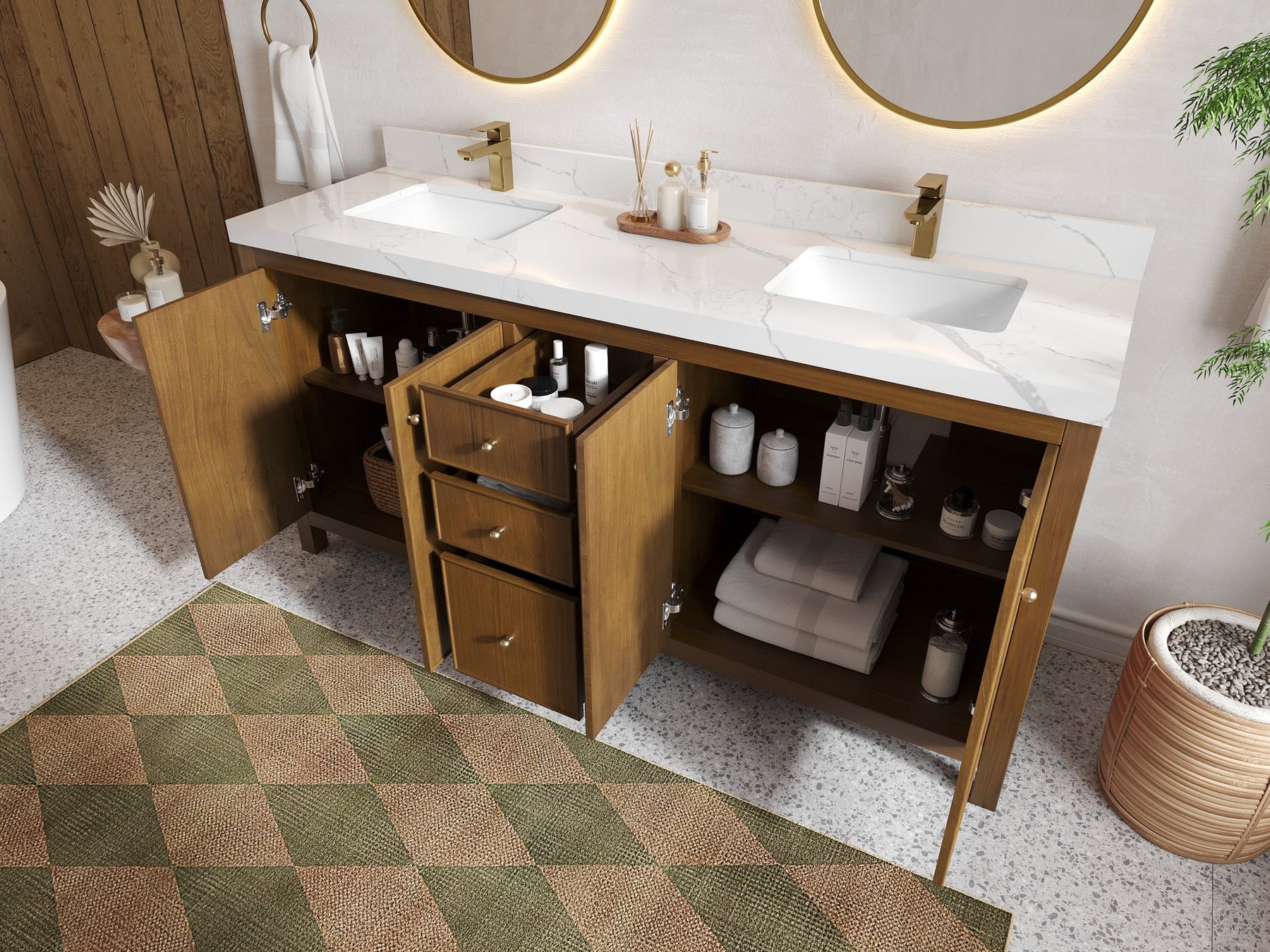 Experience the seamless fusion of timeless elegance and modern convenience with the Chicago Teak Bathroom Vanity. Crafted to endure the test of time, this exquisite piece effortlessly combines the richness of teak wood with cutting-edge features, establishing a bathroom sanctuary like no other. Elevate your bathroom ambiance as the enduring craftsmanship of teak wood meets contemporary functionality, offering a space where luxury and practicality intertwine seamlessly. Chicago Teak transcends mere vanity status; it stands as a symbol of enduring beauty and thoughtful design, transforming your daily routine into a truly luxurious experience and redefining the essence of your bathroom space.
