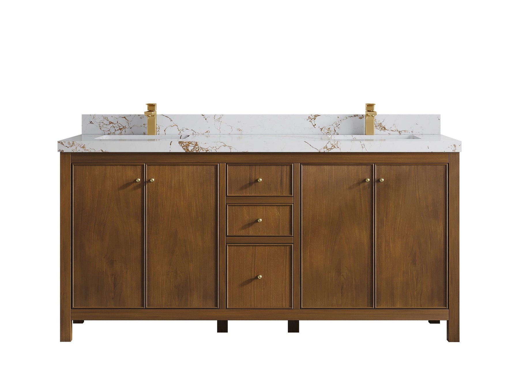 Chicago Teak 72 in. W x 22 in. D Double Sink Bathroom Vanity | Dark Natural Teak