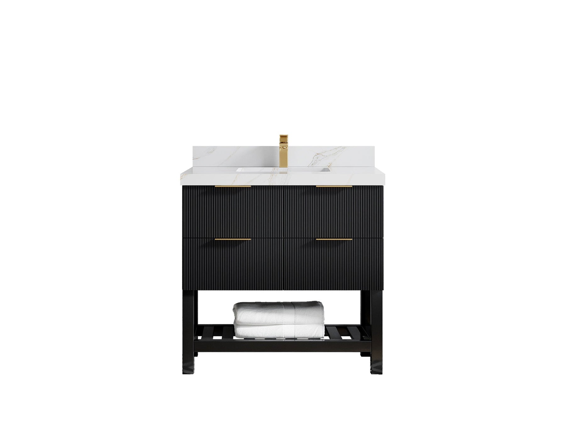 Catalina 36 in. W x 22 in. D Single Sink Bathroom Vanity in Black with 2 in Calacatta Gold Quartz Countertop