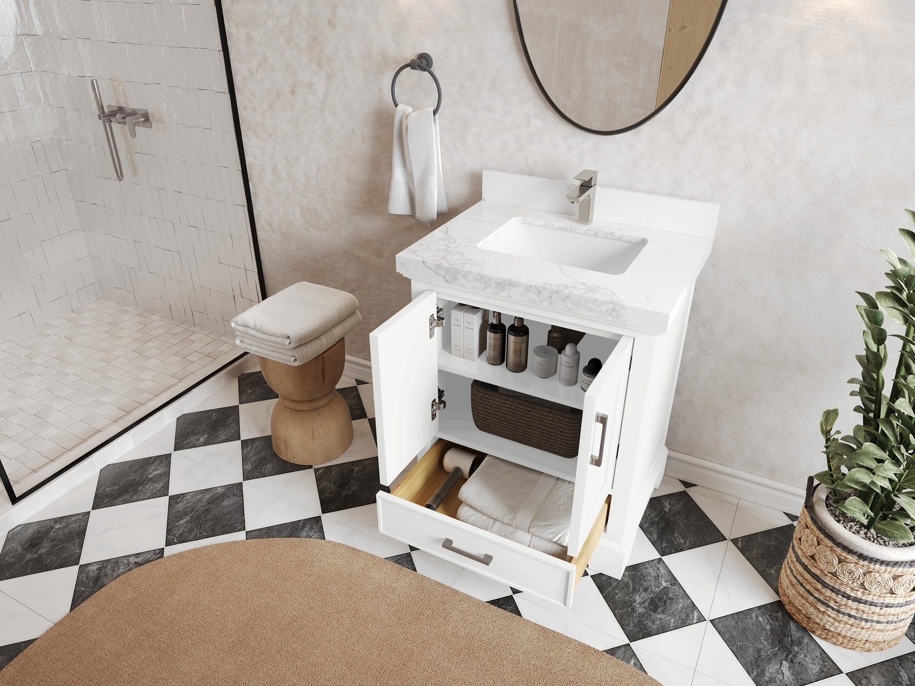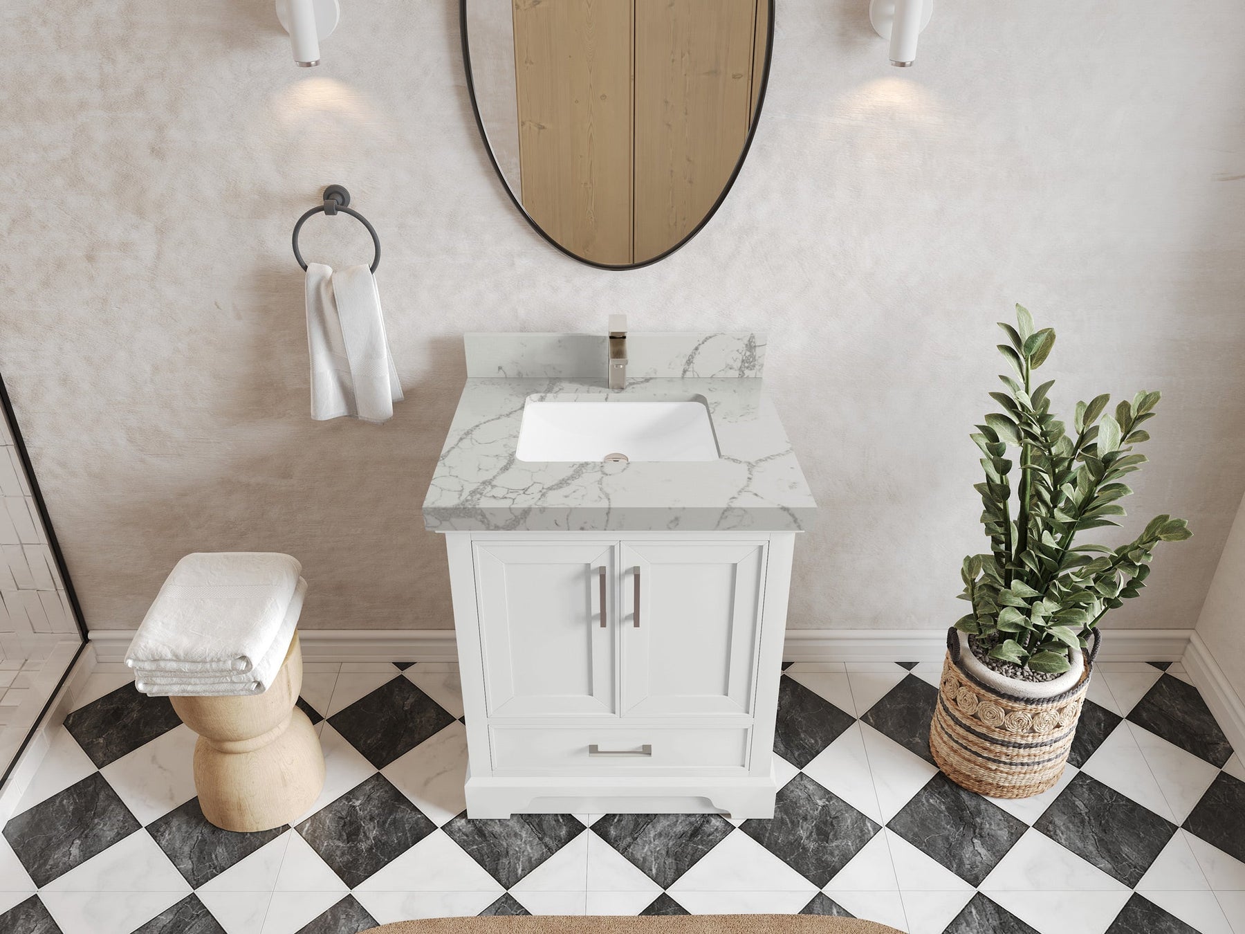 Faucet Hole(S): Comes with Single Faucet, 8 (in.) Widespread Faucet, Wall mount Faucets - Only Available for White Quartz and Carrara Quartz. (PLEASE ADD THIS CONFIGURATION UNDER COUNTERTOPS SECTION )