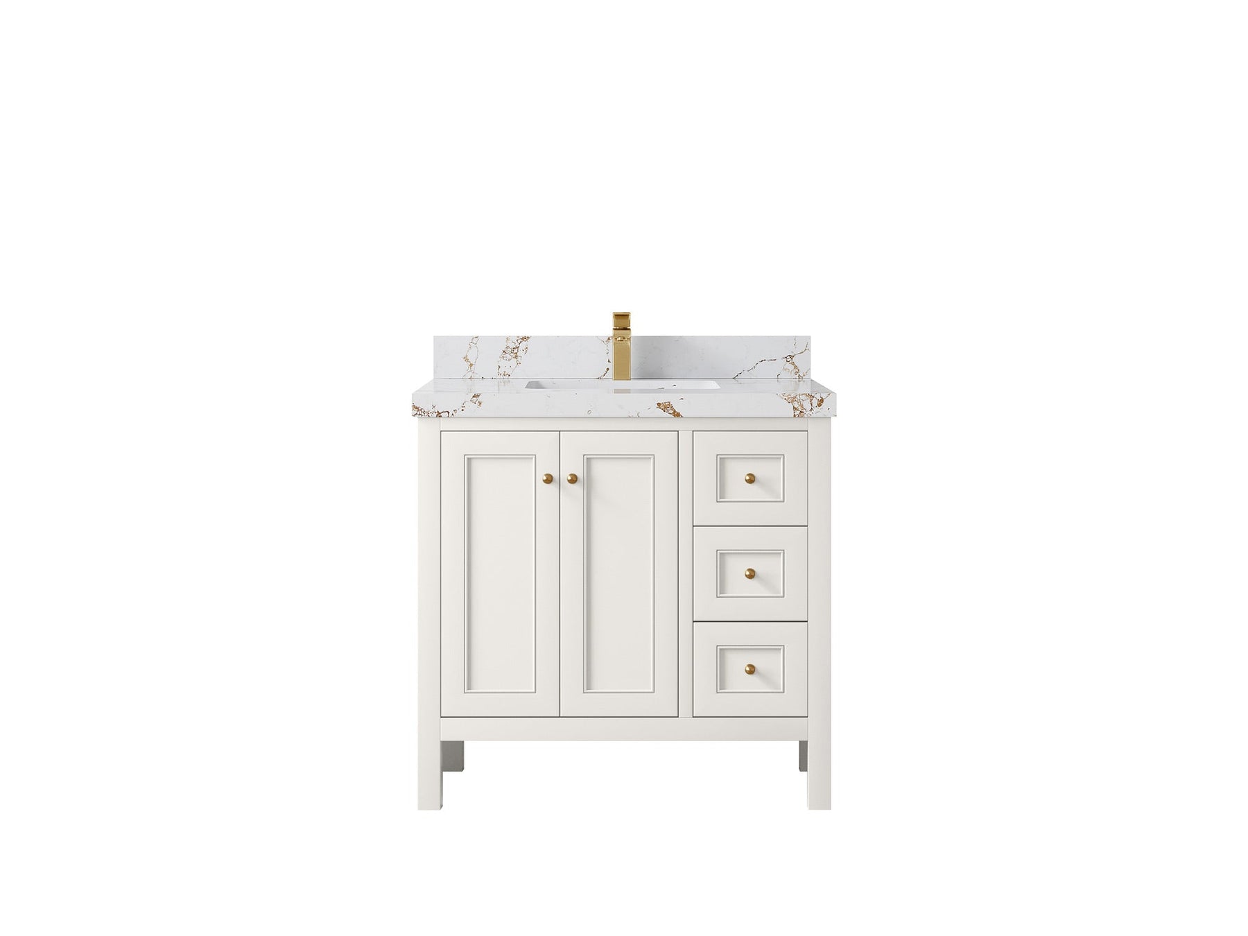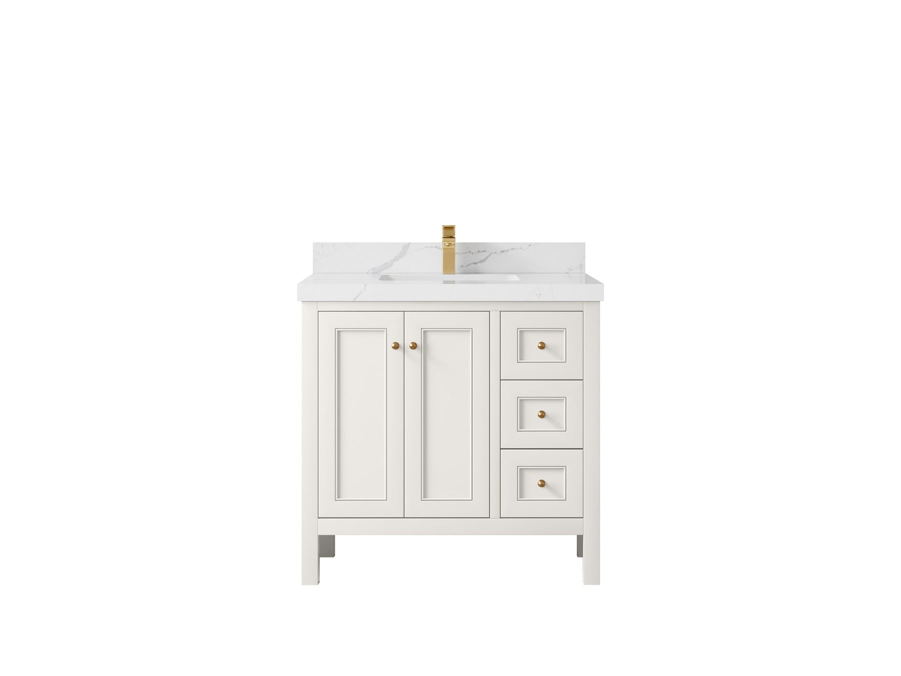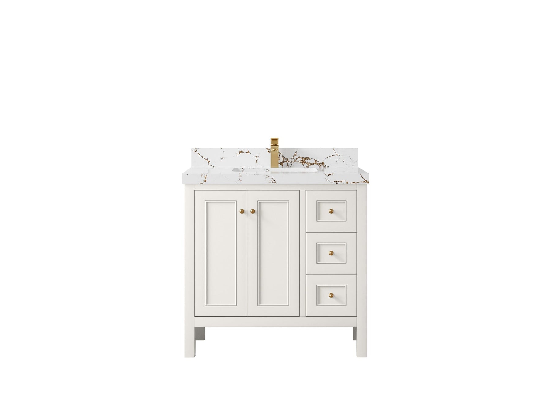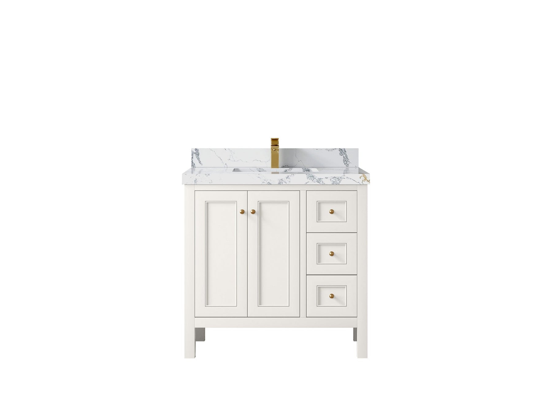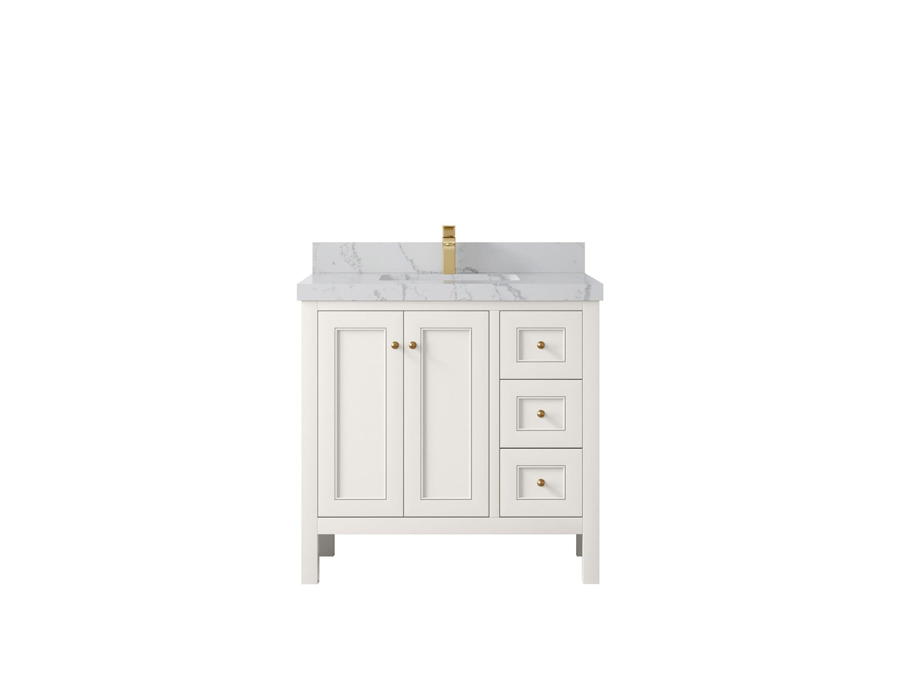 Faucet Hole(S): Comes with Single Faucet, 8 (in.) Widespread Faucet, Wall mount Faucets - Only Available for White Quartz and Carrara Quartz. (PLEASE ADD THIS CONFIGURATION UNDER COUNTERTOPS SECTION )