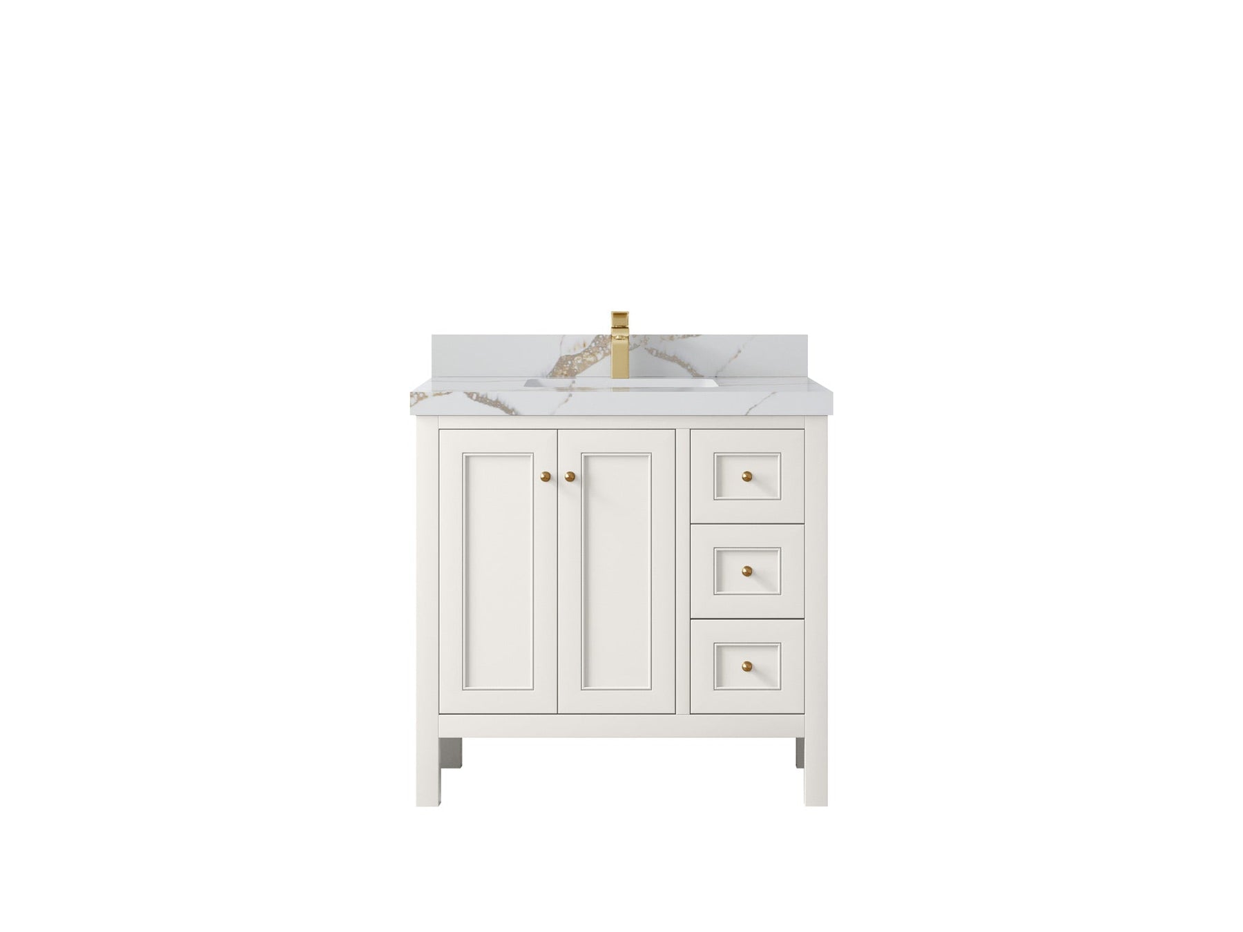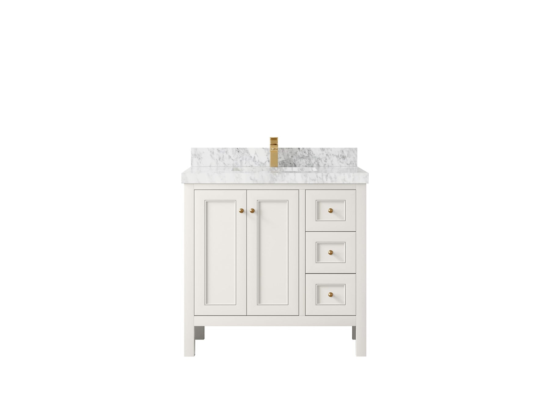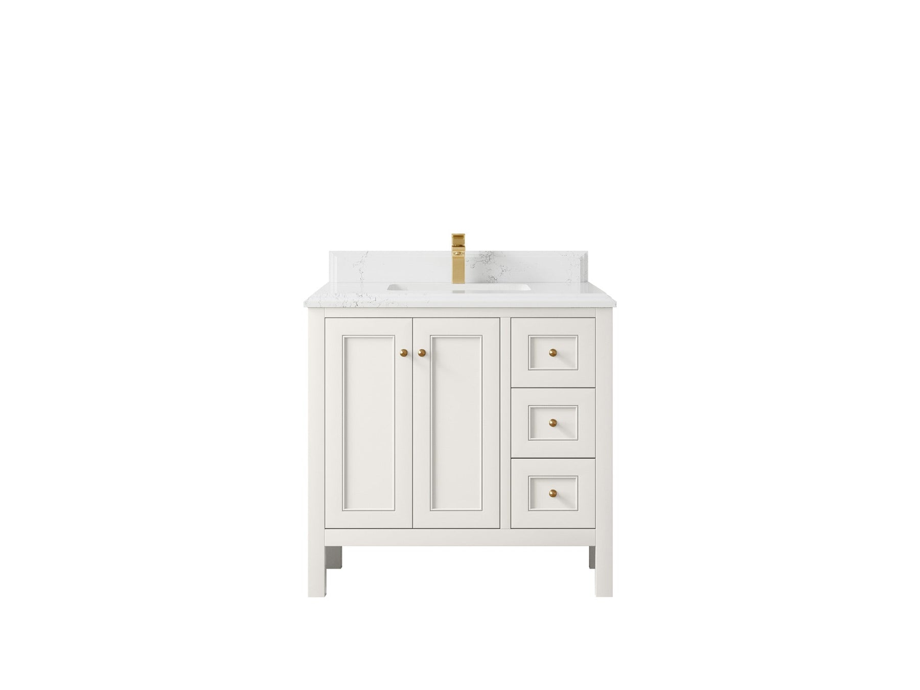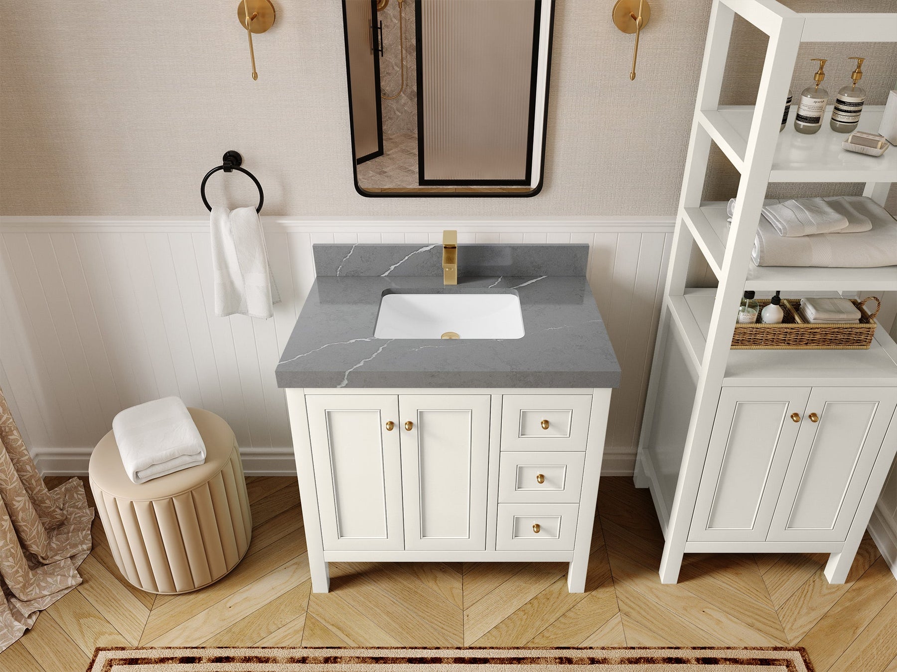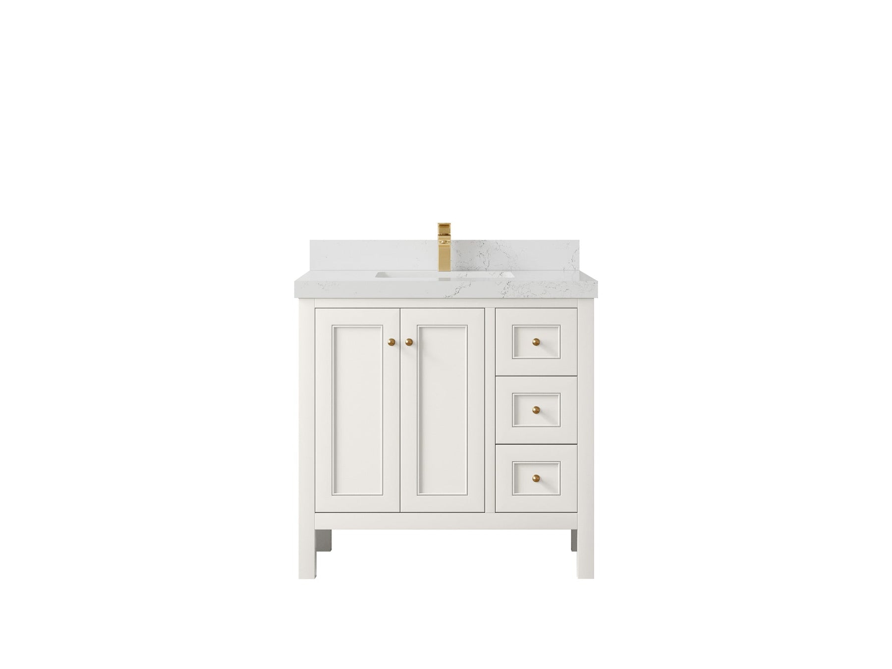 Faucet Hole(S): Comes with Single Faucet, 8 (in.) Widespread Faucet, Wall mount Faucets - Only Available for White Quartz and Carrara Quartz. (PLEASE ADD THIS CONFIGURATION UNDER COUNTERTOPS SECTION )