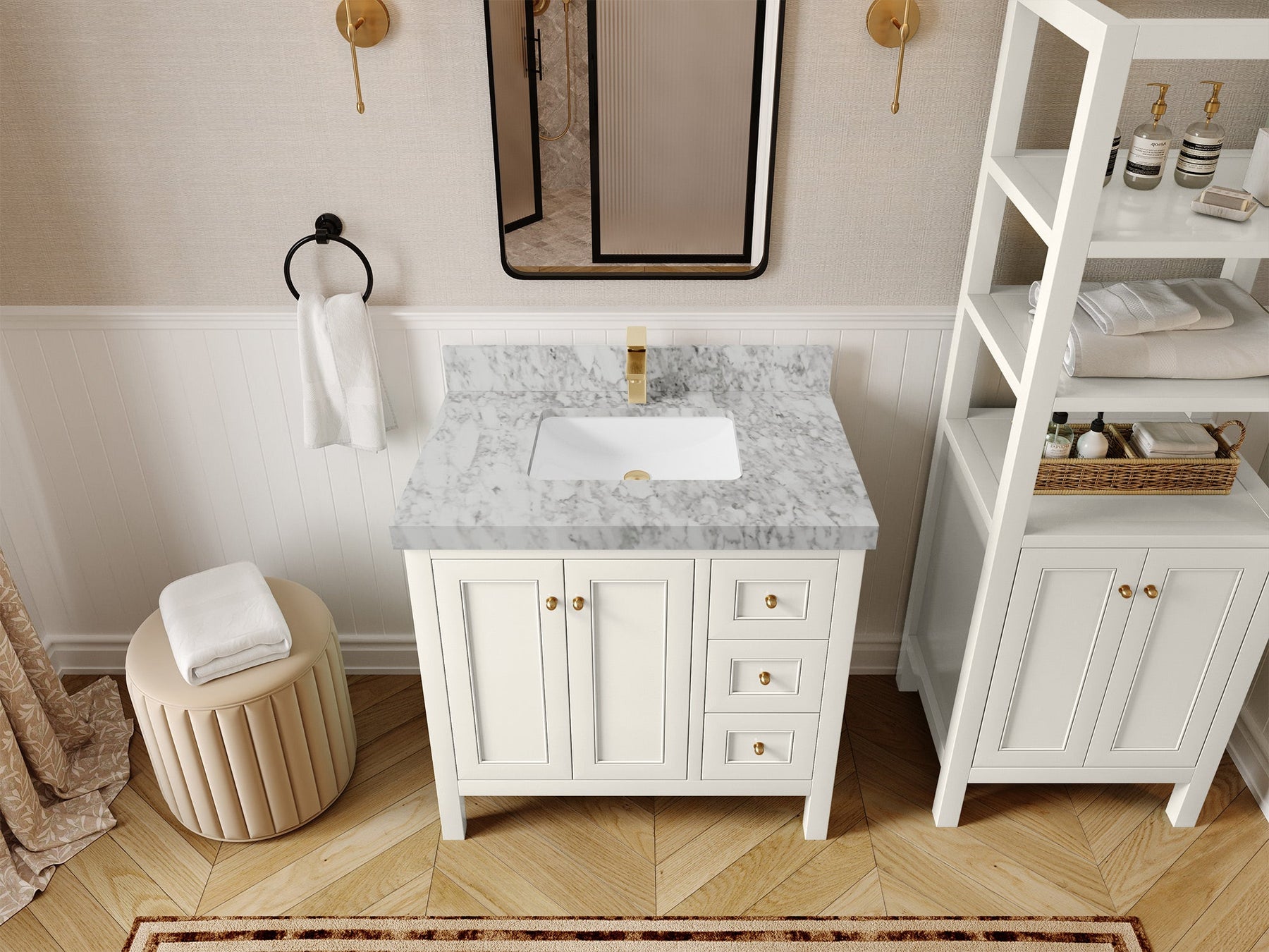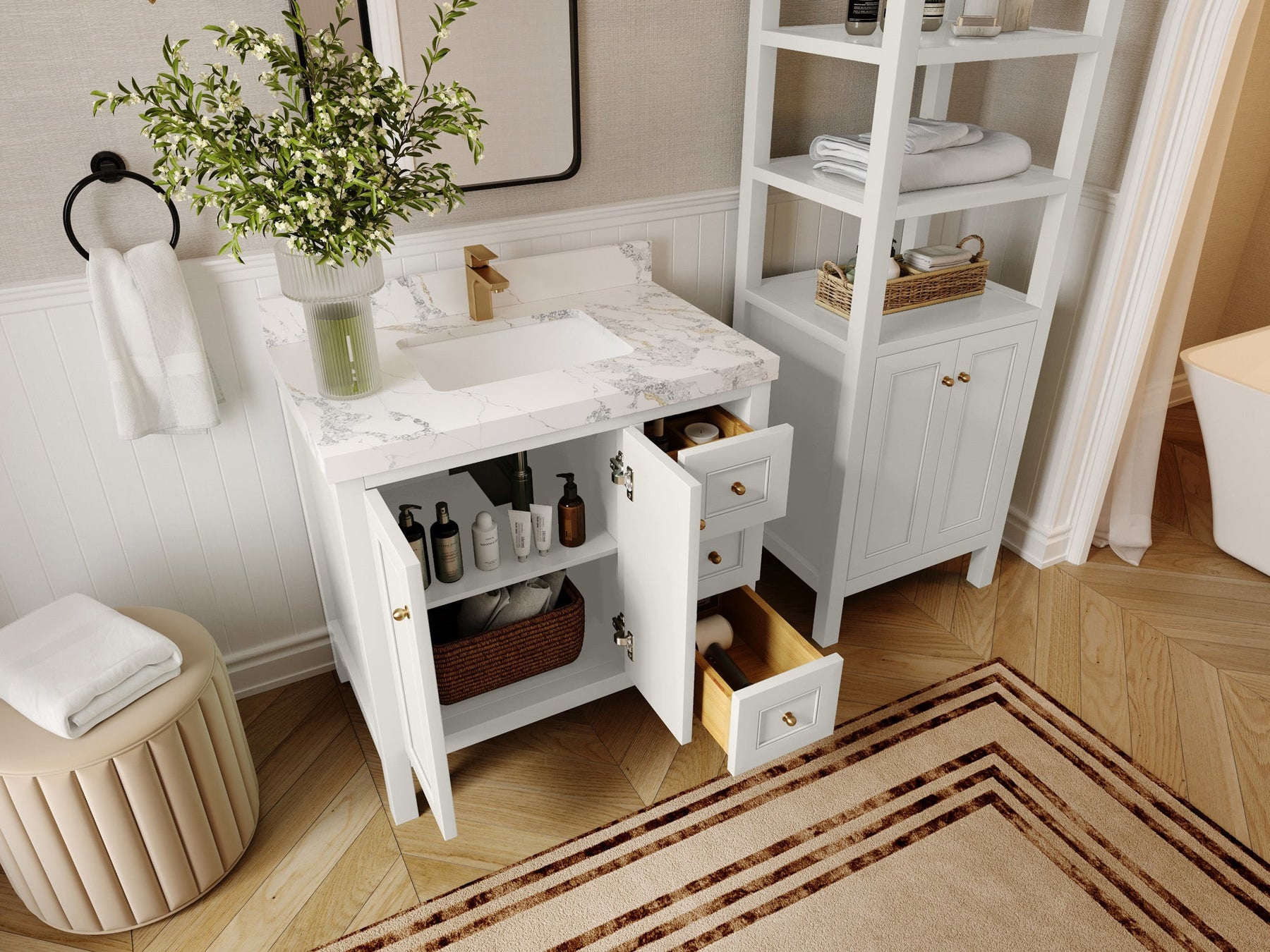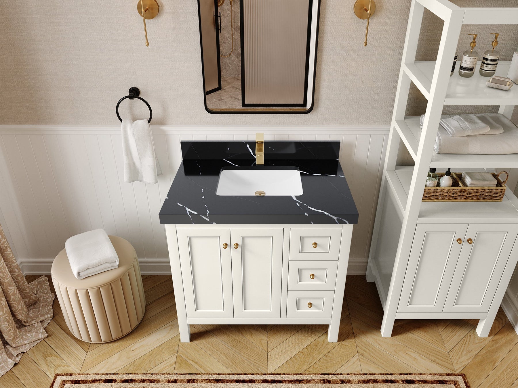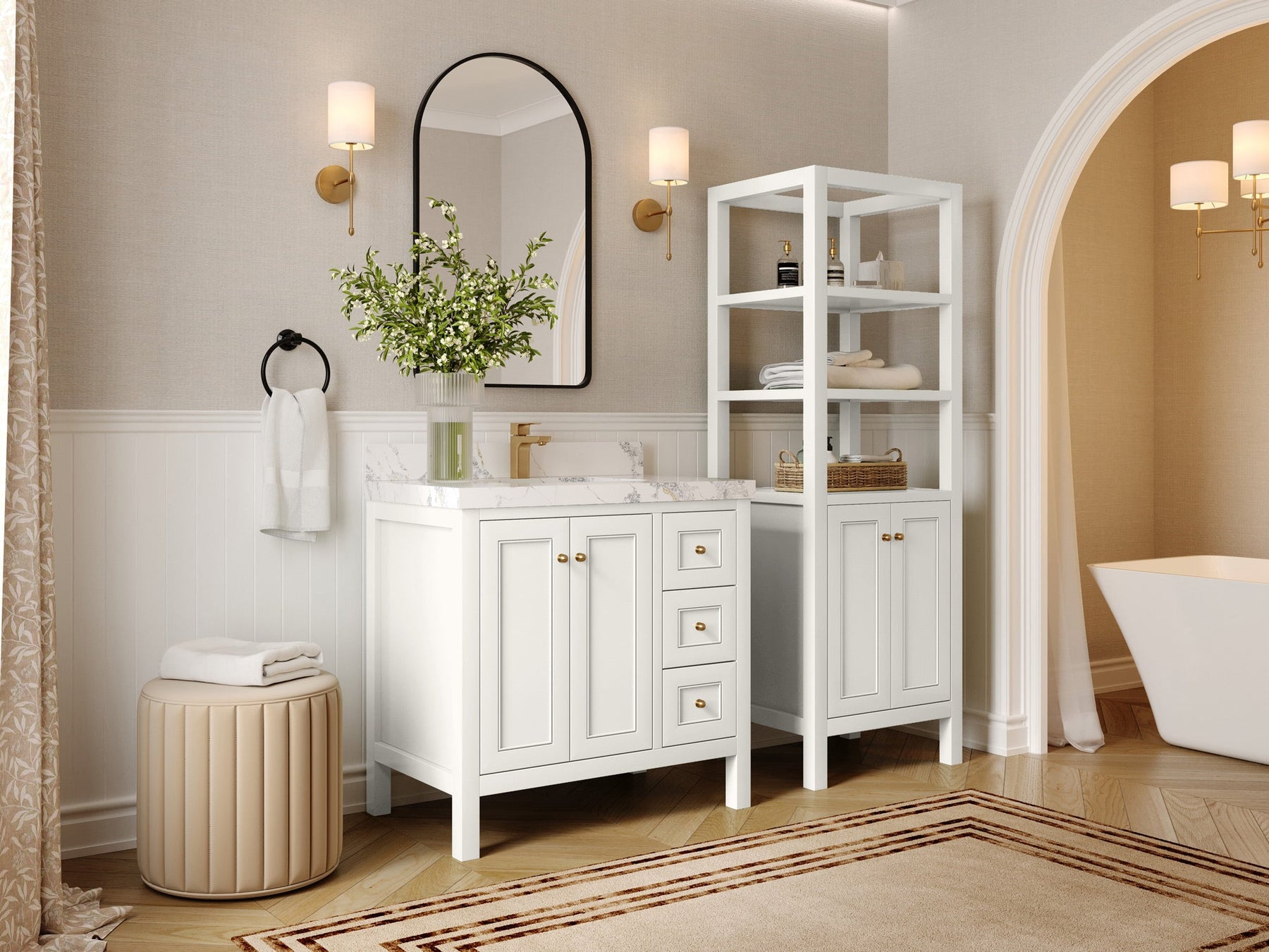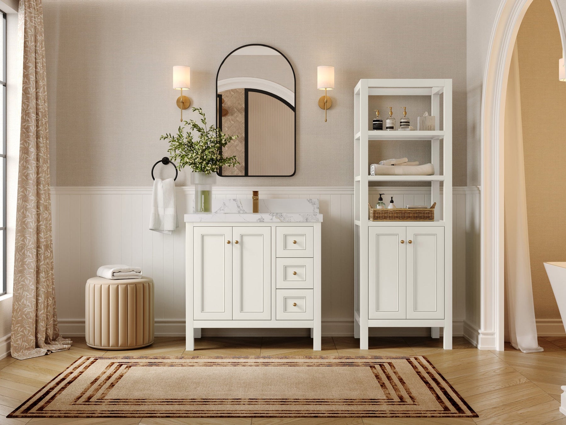 Hardware Finish: Fine Grain, White comes with Brushed Nickel Finish; Alabaster, Black, Evergreen comes with Brushed Gold Finish