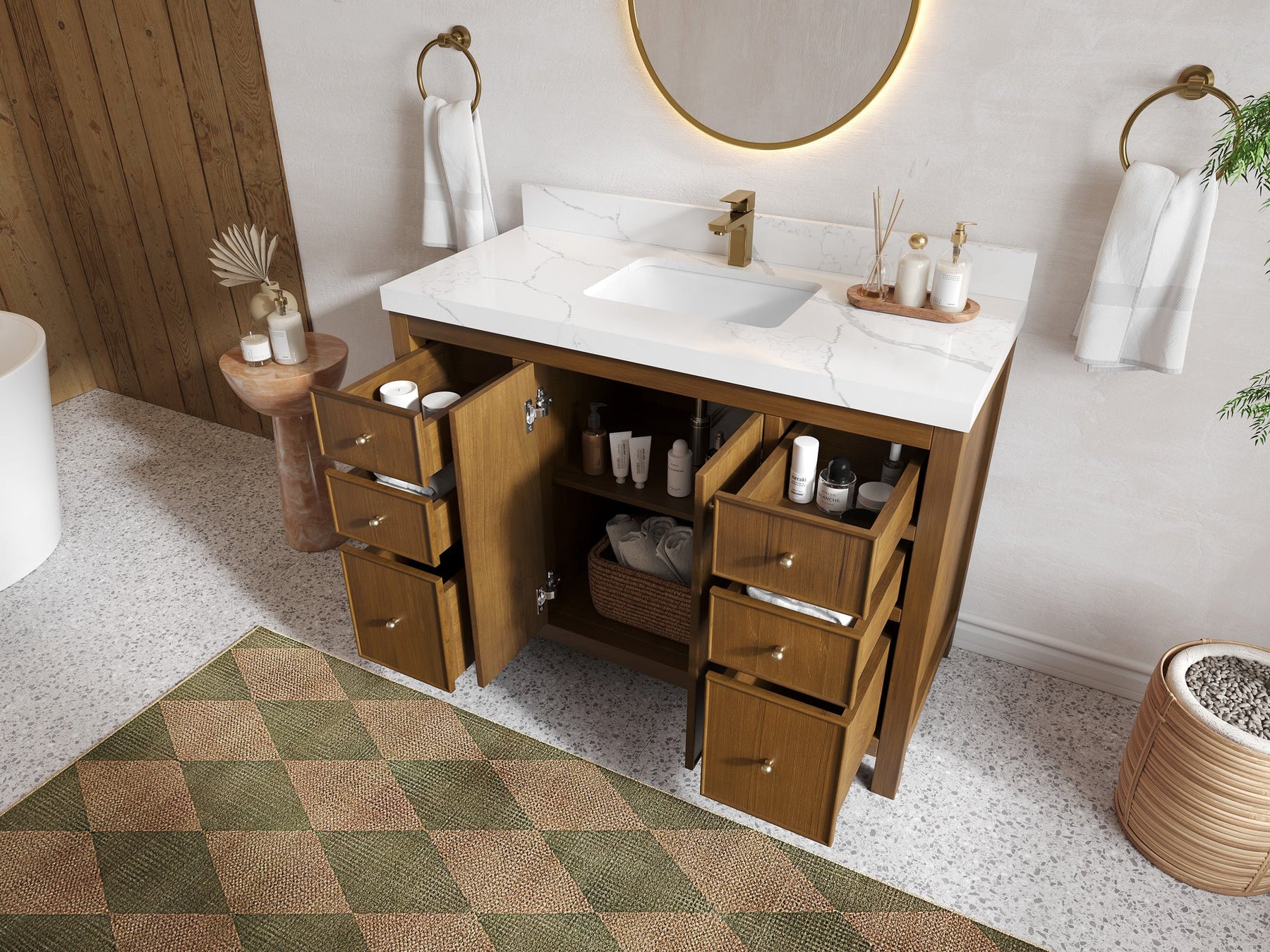 4. Plenty of storage space - this vanity comes with plenty of cabinet space to store all your bathroom essentials.