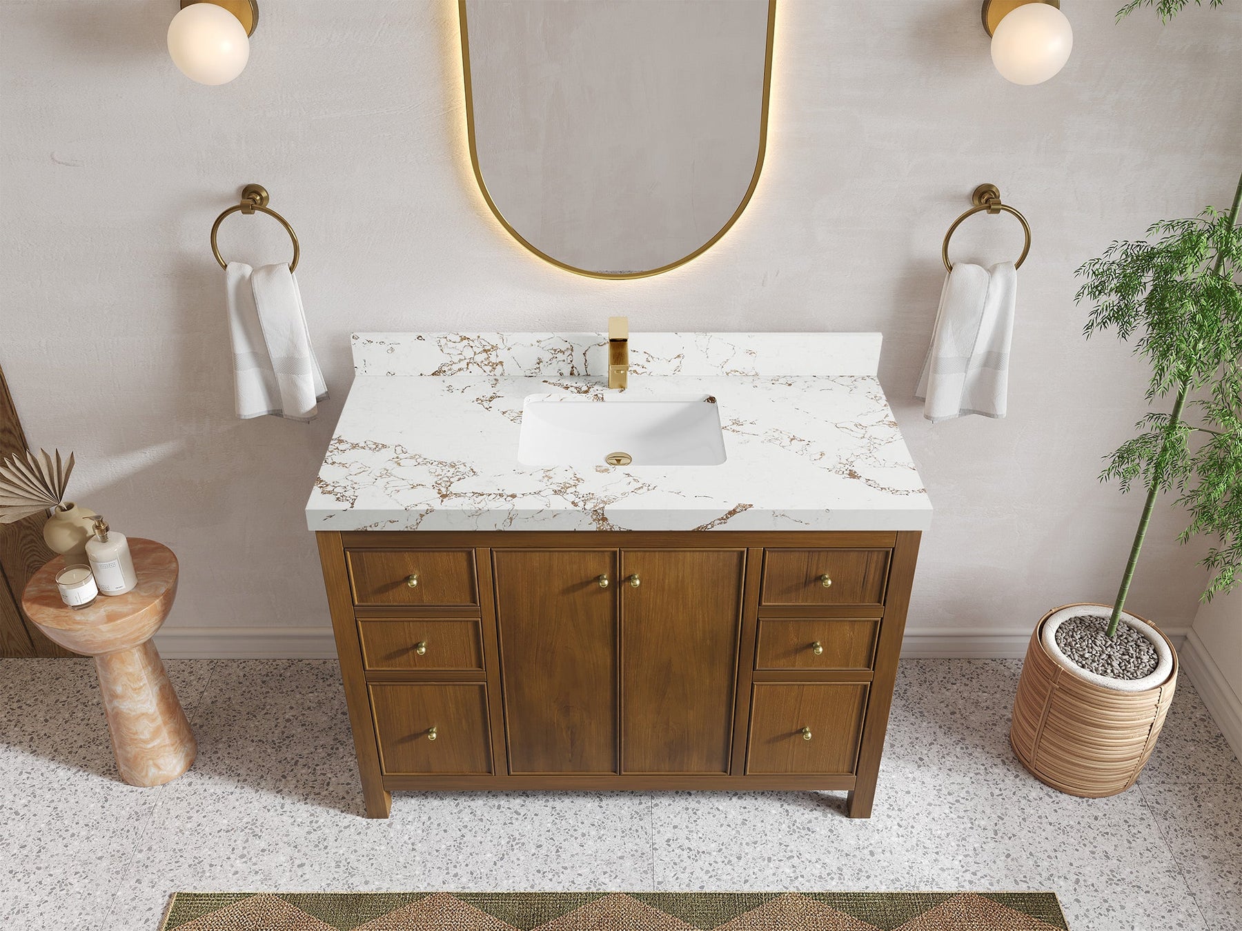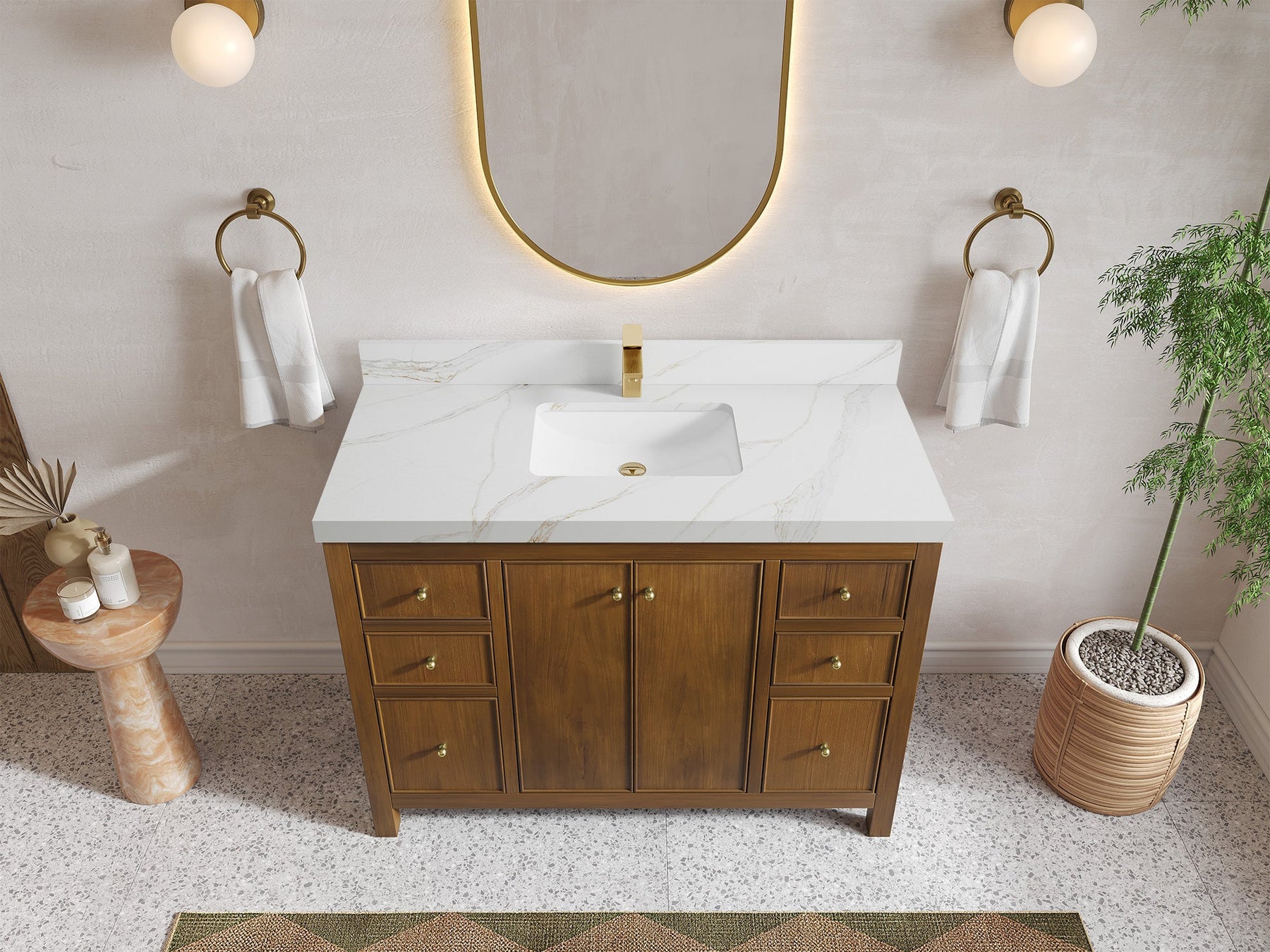 Chicago Teak 48 in. W x 22 in. D Single Sink Bathroom Vanity | Dark Natural Teak