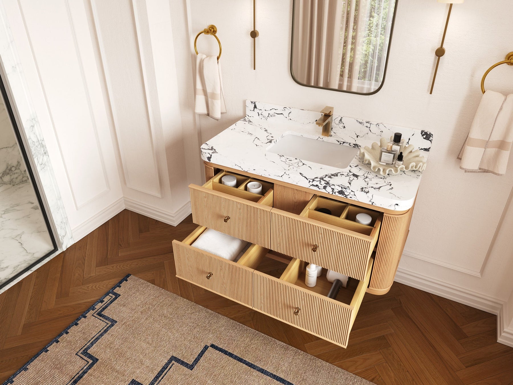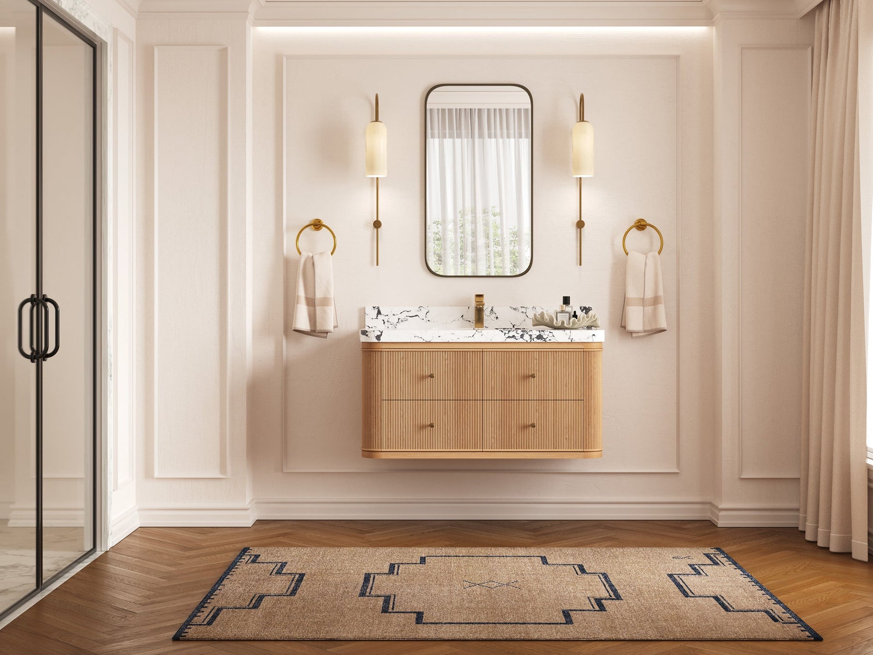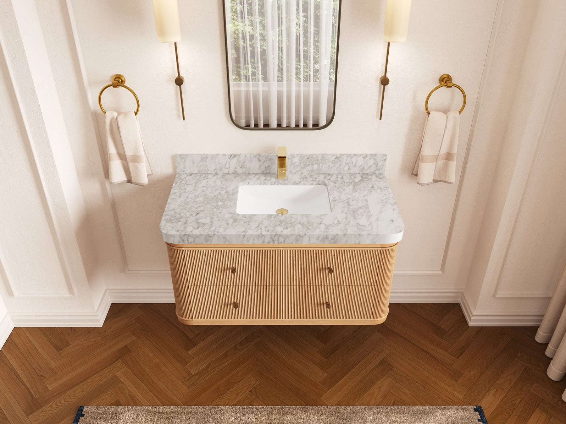 Vanity Countertops options: For Calacatta Laza Quartz, Empira White Quartz, Pure White Quartz, Palissandro Quartz, Calacatta Nuvo Quartz, Carrara Quartz, Calacatta Gold Quartz, Calacatta Sienna Quartz we have Straight - Mitered Edge option.