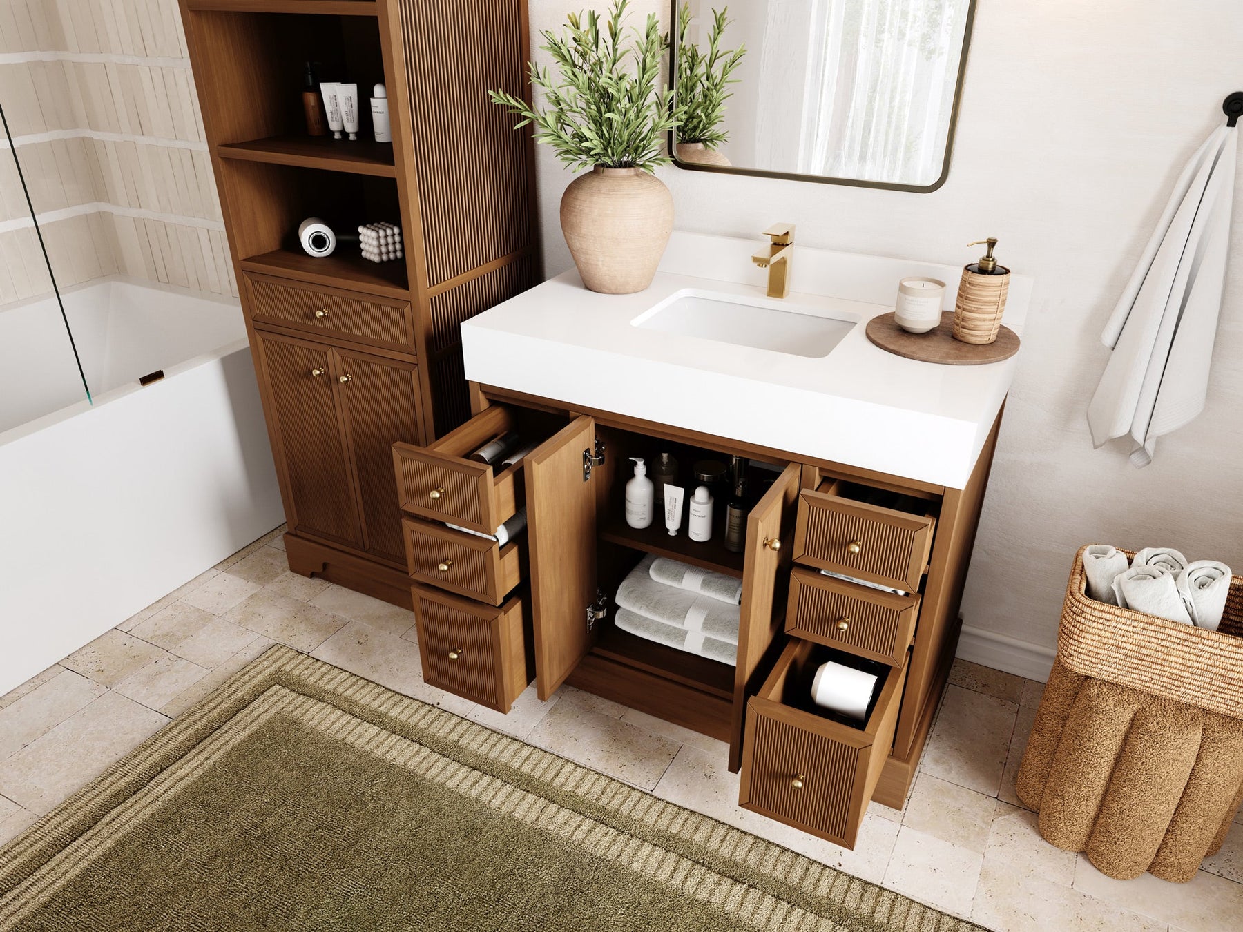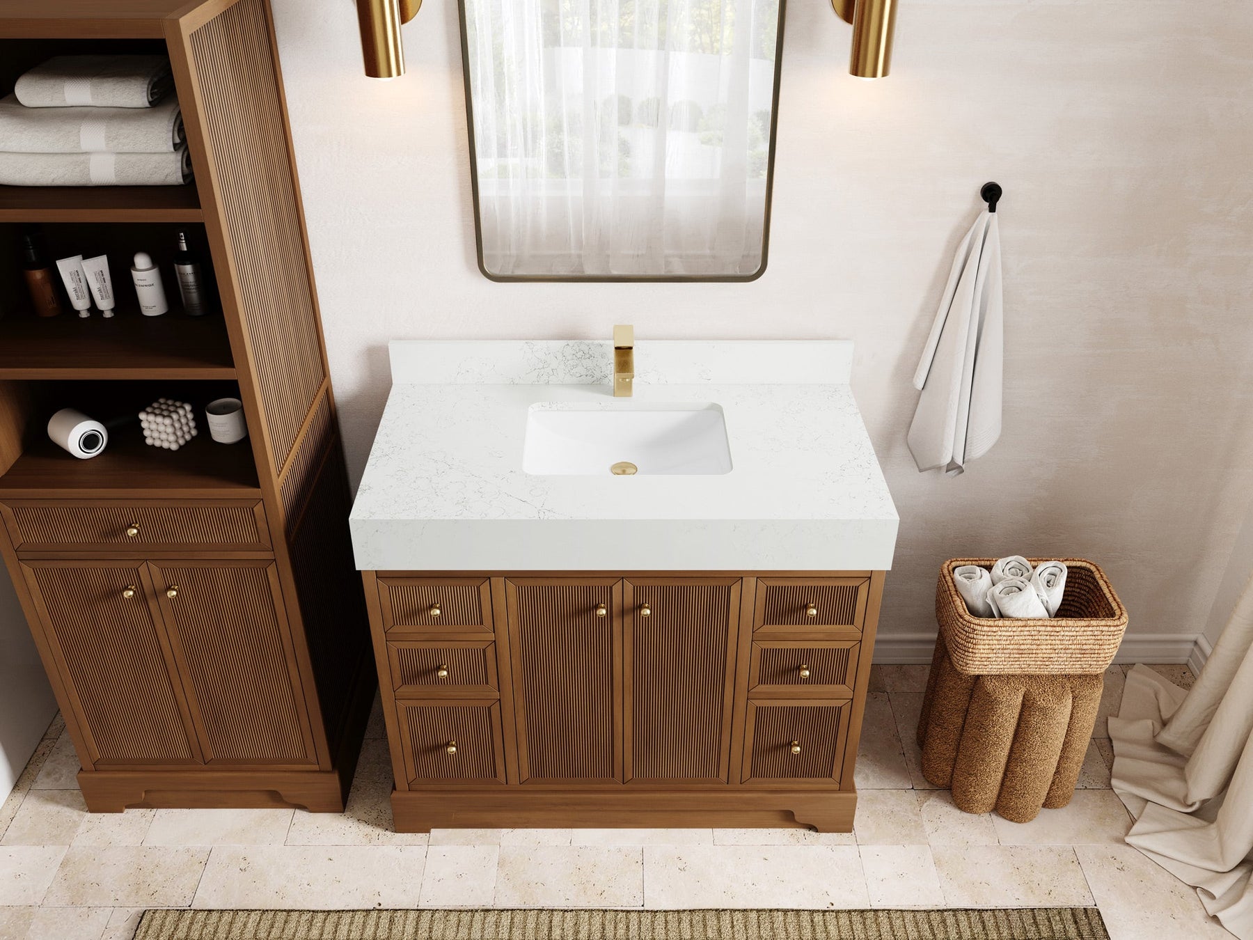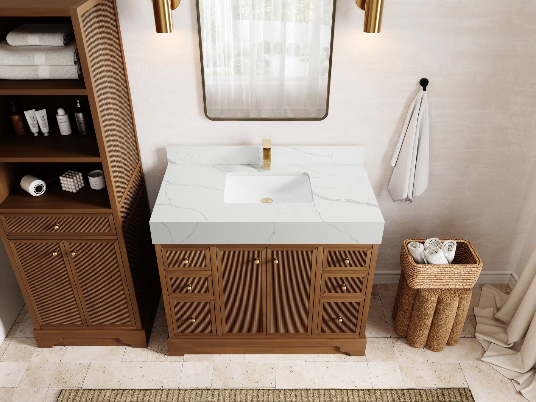Vanity Countertops options: Calacatta Laza Quartz, Calacatta Nuvo Quartz, Carrara Quartz, Palissandro Quartz, Empira White Quartz, Pure White Quartz - Straight / Mitered Edge option.