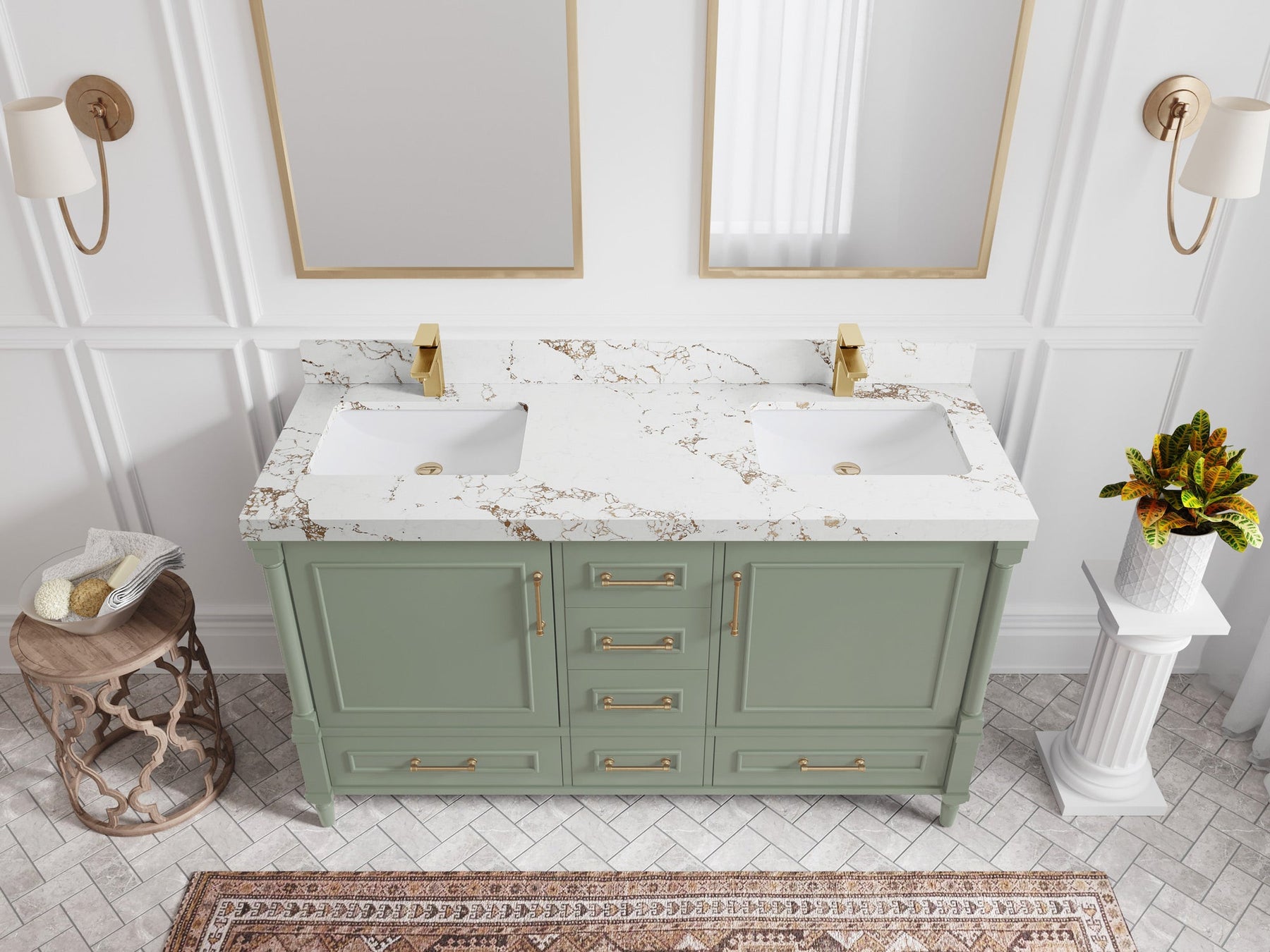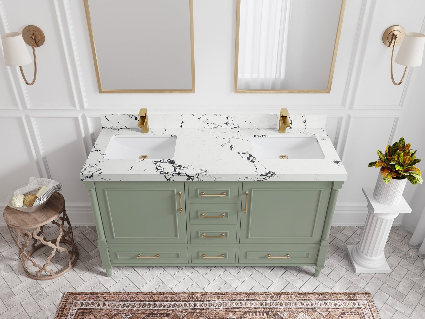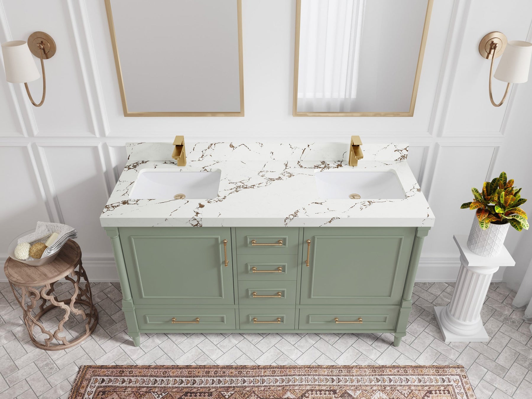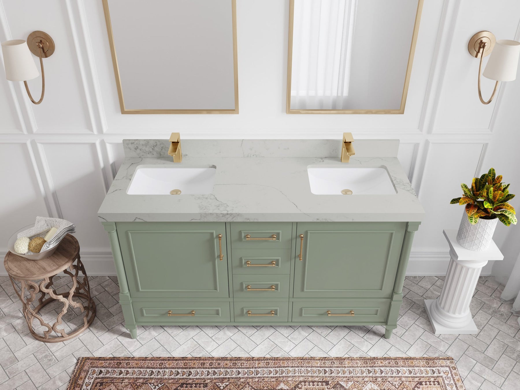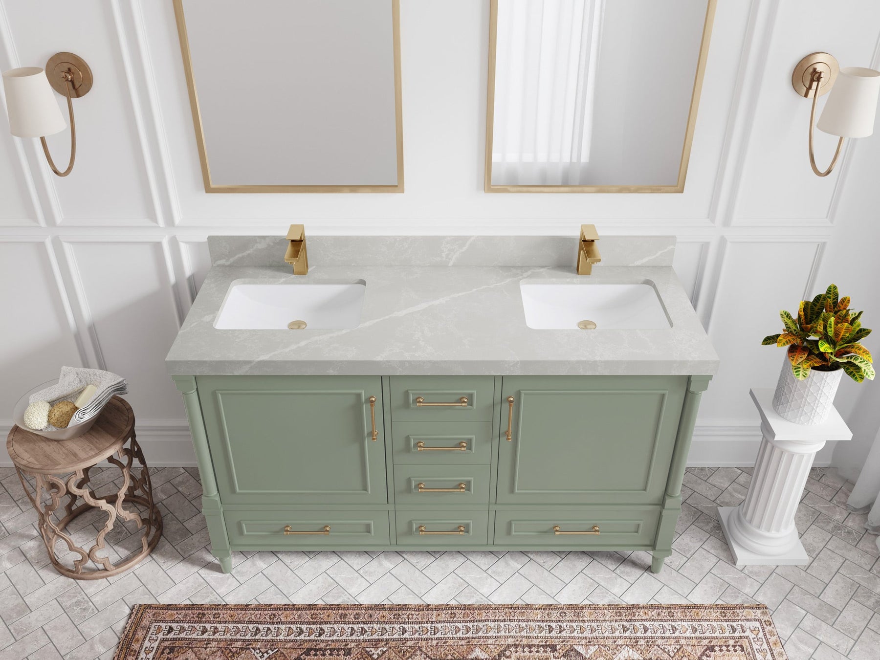 Aberdeen 60 in. W x 22 in. D Double Sink Bathroom Vanity | Evergreen