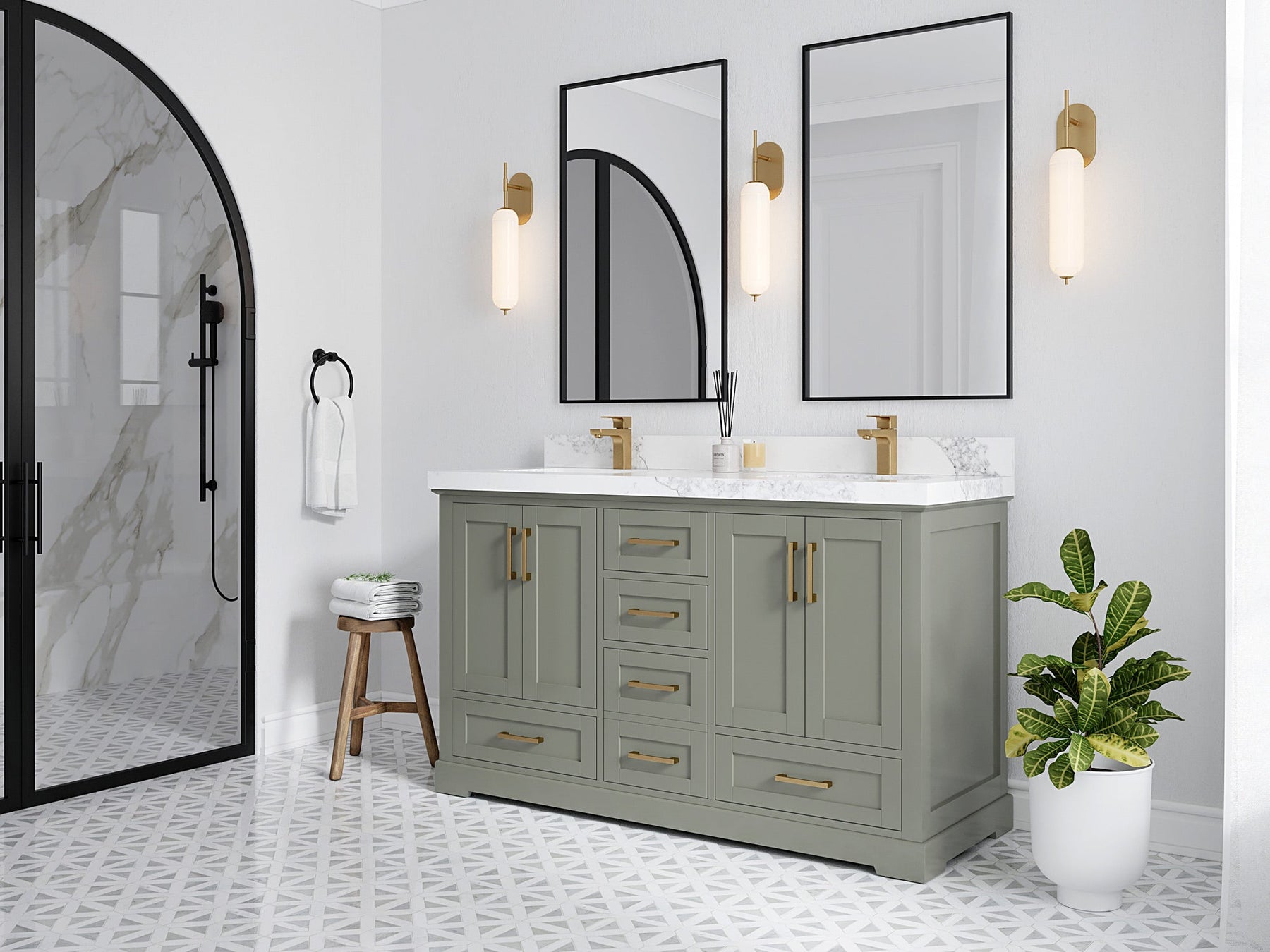 Vanity Countertops options: For Calacatta Laza Quartz, Empira White Quartz, Pure White Quartz, Palissandro Quartz we have 2 options Straight-Mitered Edge and Double Cove Edge; For Calacatta Nuvo Quartz, Carrara Marble, Carrara Quartz, Piatra Gray Quartz, Pearl Light Gray Quartz, Calacatta Black Quartz, Calacatta Gold Quartz, Calacatta Sienna Quartz, Calacatta Poanazzo Quartz, Venatino Quartz, Viola Brown Quartz, Viola Gold Quartz, Viola Night Quartz, Viola Biagio Quartz, Berkshire Brass Quartz, Frosty Carrara Quartz, Onyx Quartz we have Straight - Mitered Edge option.
