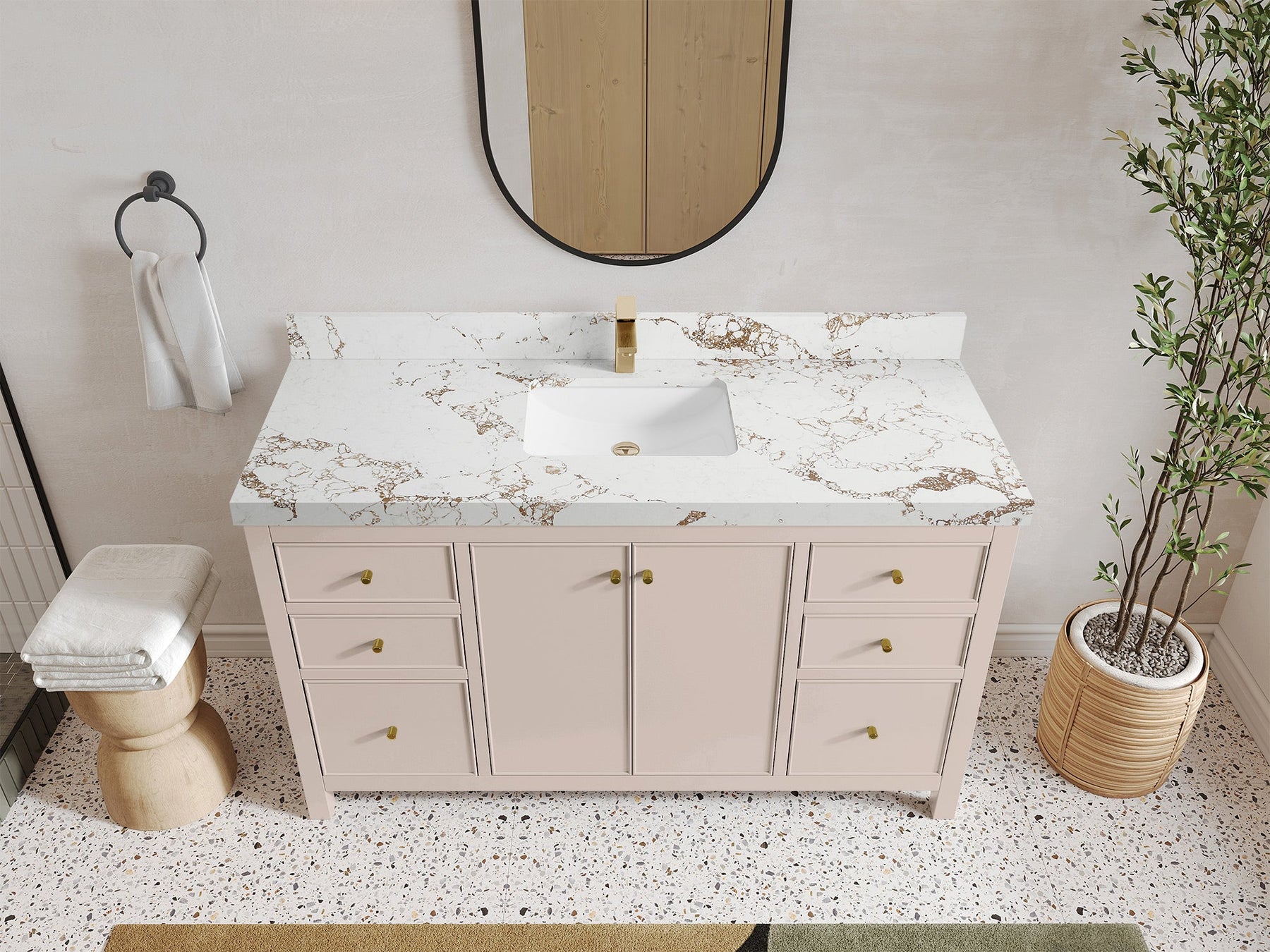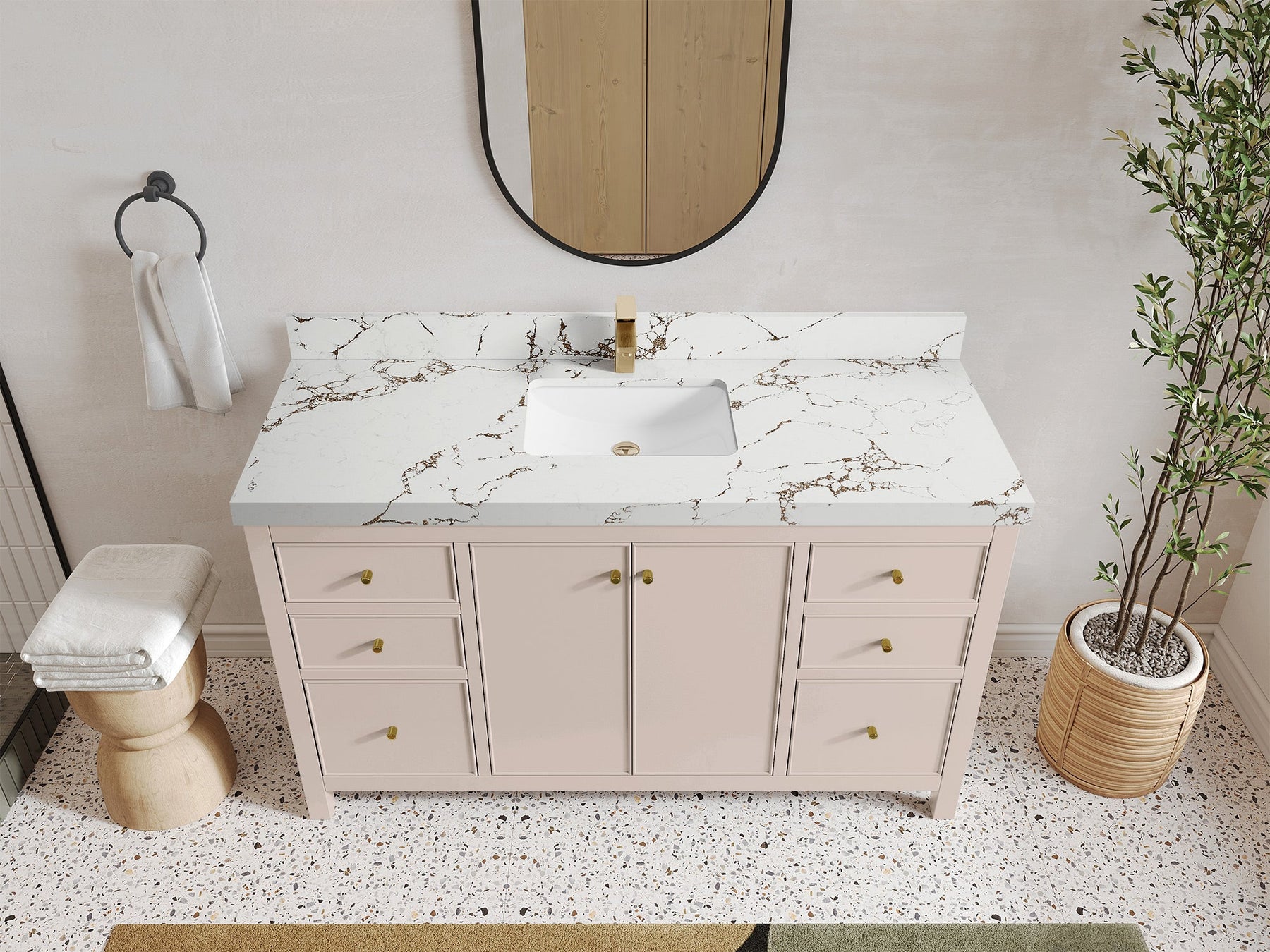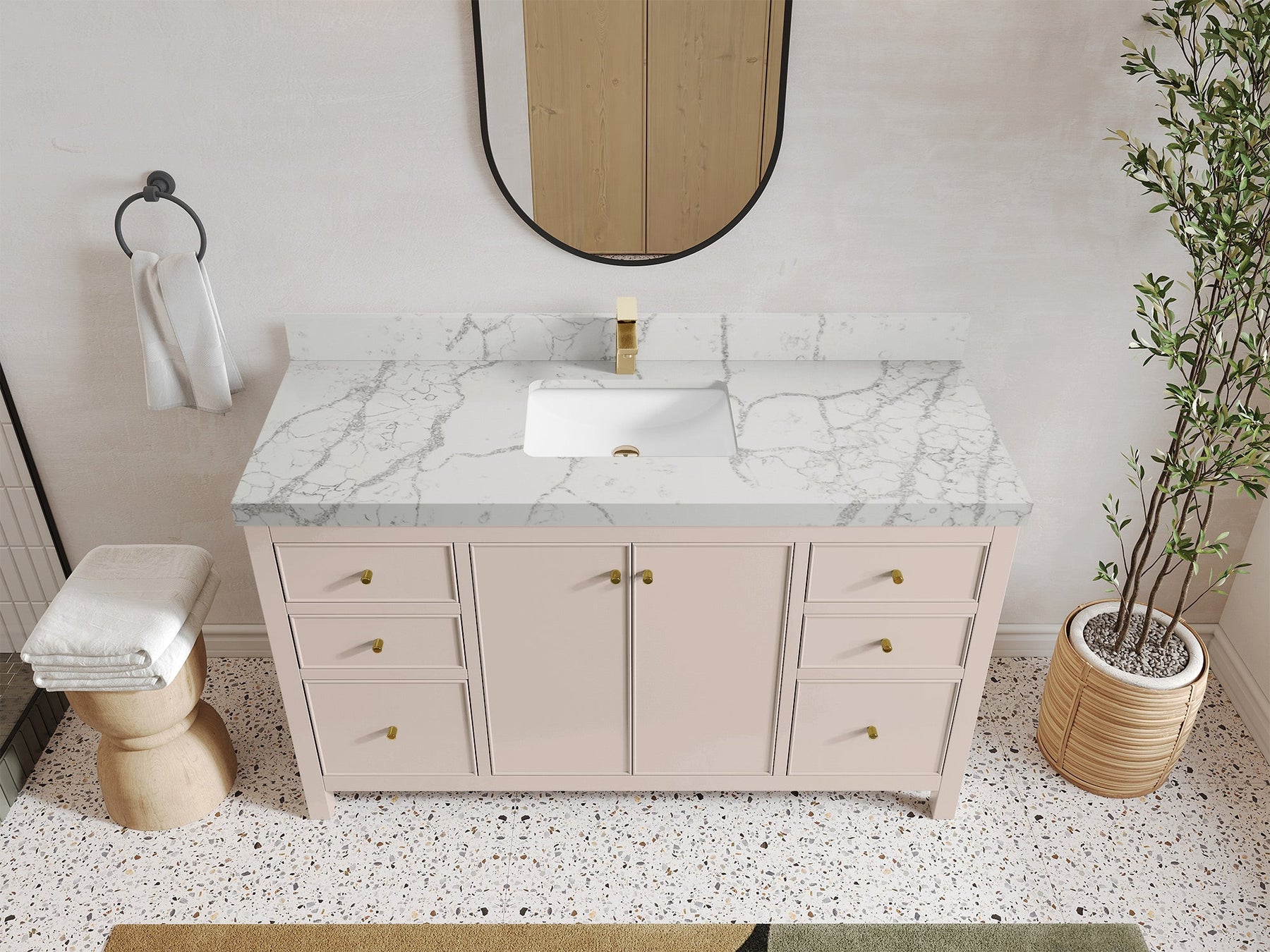 Vanity Countertops options: For Calacatta Laza Quartz, Empira White Quartz, Pure White Quartz we have 2 options Straight-Mitered Edge & Double Cove Edge, For Calacatta Black Quartz, Calacatta Gold Quartz, Calacatta Nuvo Quartz, Carrara Marble, Carrara Quartz, Pearl Light Gray Quartz, Piatra Gray Quartz, Venatino Quartz, and Light Concrete Gray Quartz we only have Straight - Mitered Edge option.