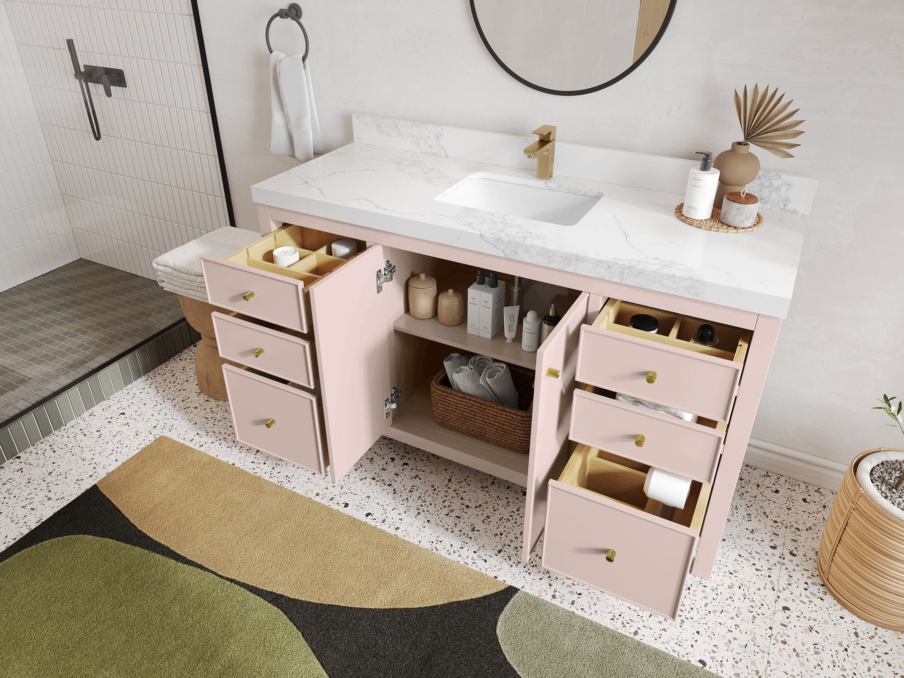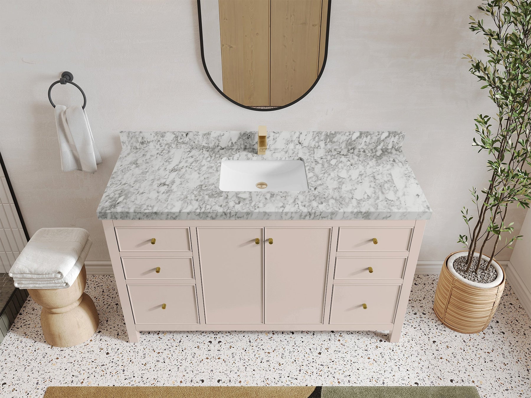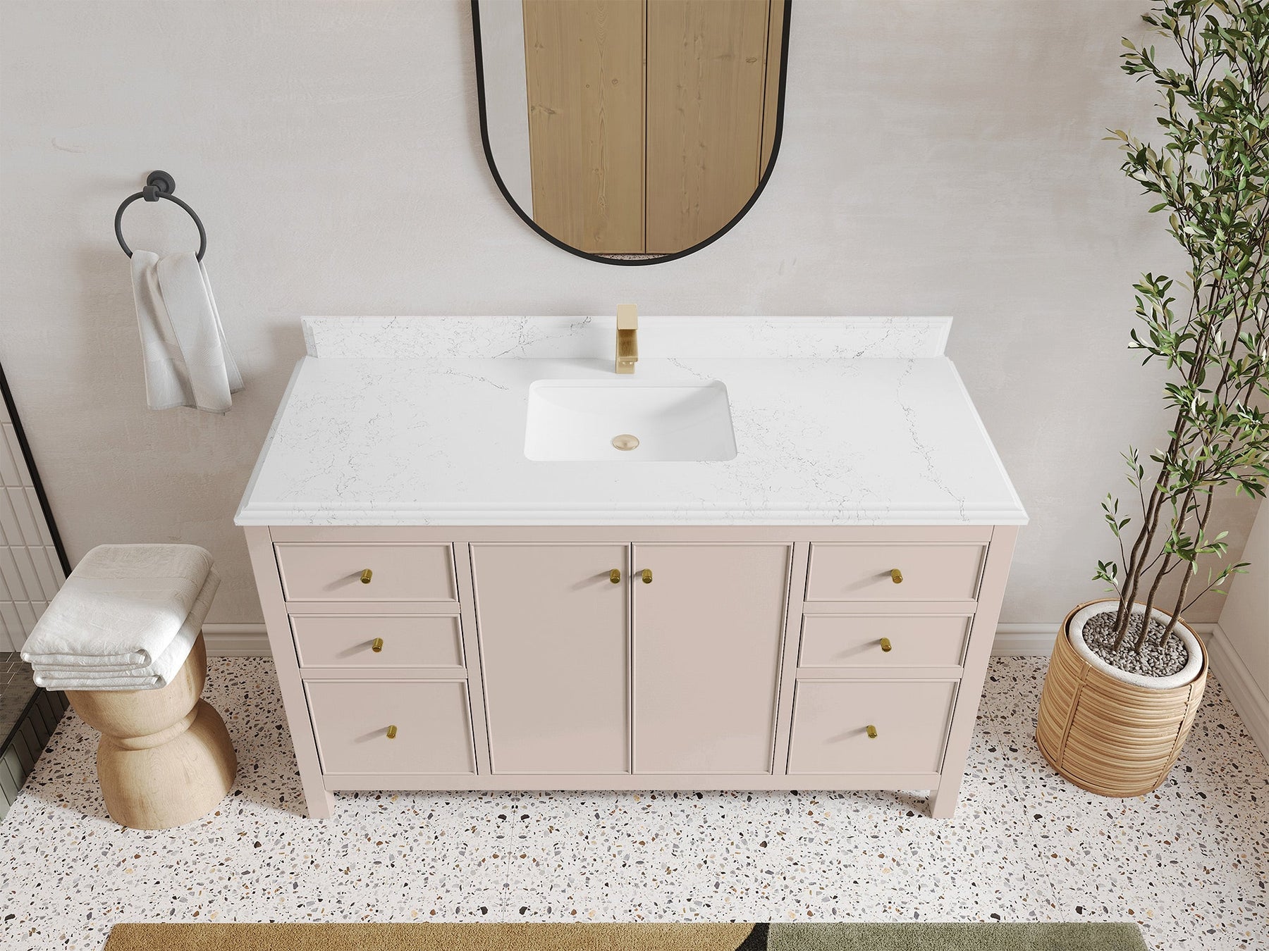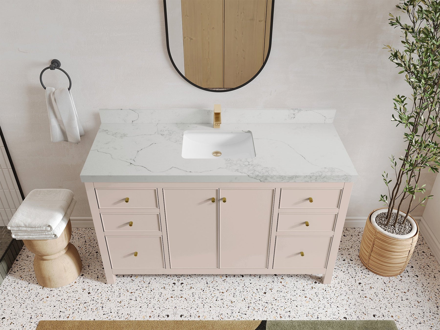 Vanity Countertops options: For Calacatta Laza Quartz, Empira White Quartz, Pure White Quartz we have 2 options Straight-Mitered Edge & Double Cove Edge, For Calacatta Black Quartz, Calacatta Gold Quartz, Calacatta Nuvo Quartz, Carrara Marble, Carrara Quartz, Pearl Light Gray Quartz, Piatra Gray Quartz, Venatino Quartz, and Light Concrete Gray Quartz we only have Straight - Mitered Edge option.