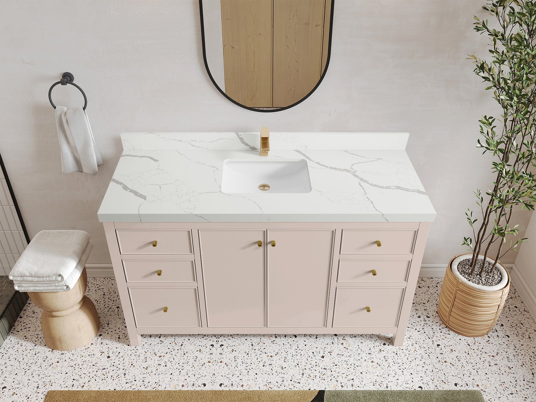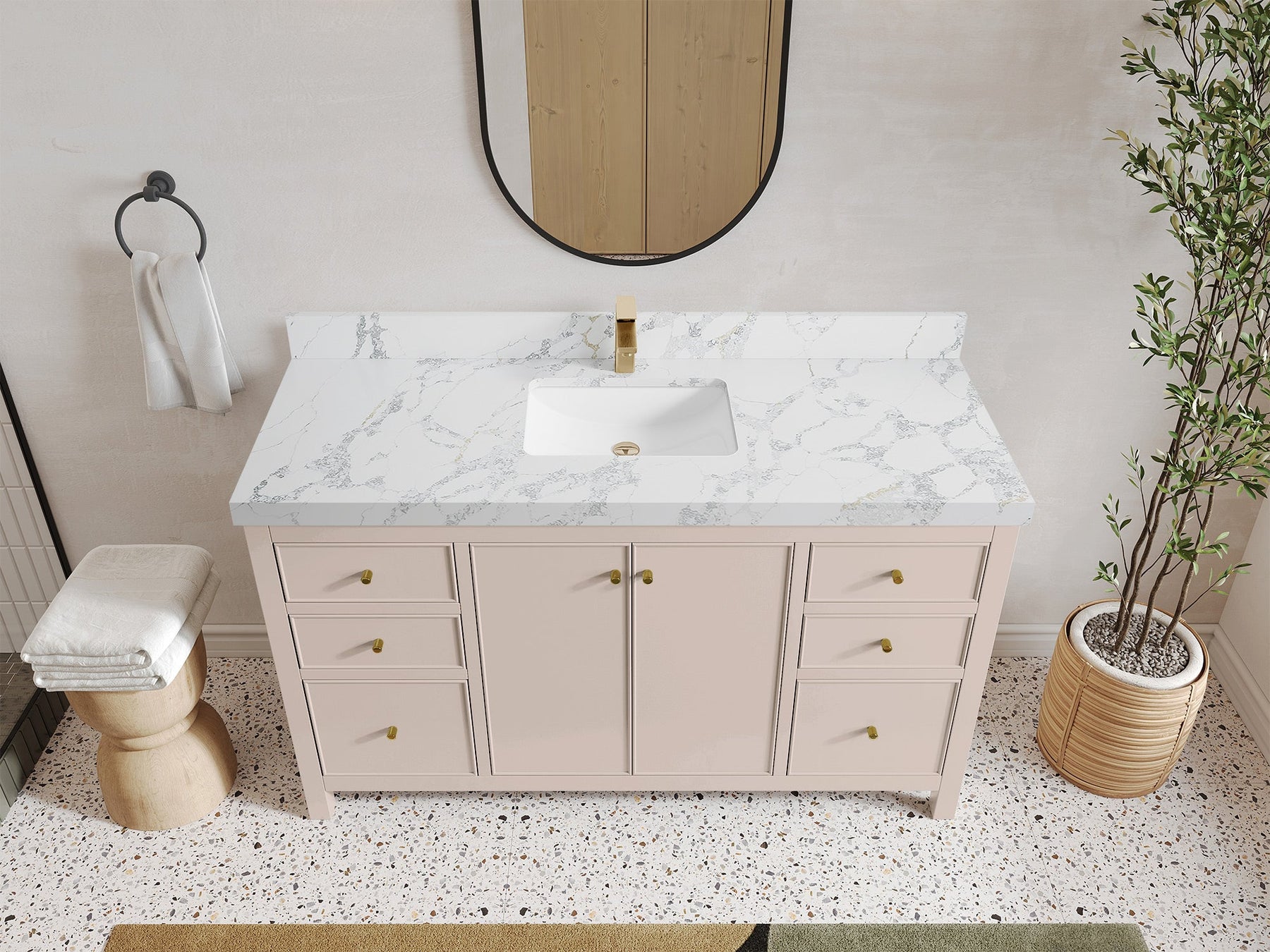 Faucet Hole(S): Comes with Single Faucet, 8 (in.) Widespread Faucet, Wall mount Faucets - Only Available for White Quartz and Carrara Quartz. (PLEASE ADD THIS CONFIGURATION UNDER COUNTERTOPS SECTION )
