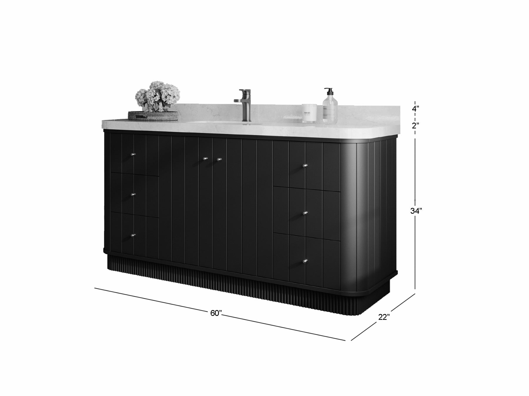 Vanity Countertops options: For Calacatta Laza Quartz, Calacatta Gold Quartz, Empira White Quartz, Pure White Quartz, Palissandro Quartz, Calacatta Nuvo Quartz, Carrara Marble, Carrara Quartz, Calacatta Sienna Quartz, Terrazzo Arctic Breeze, Terrazzo Golden Dusk we have Rounded - Edge option.