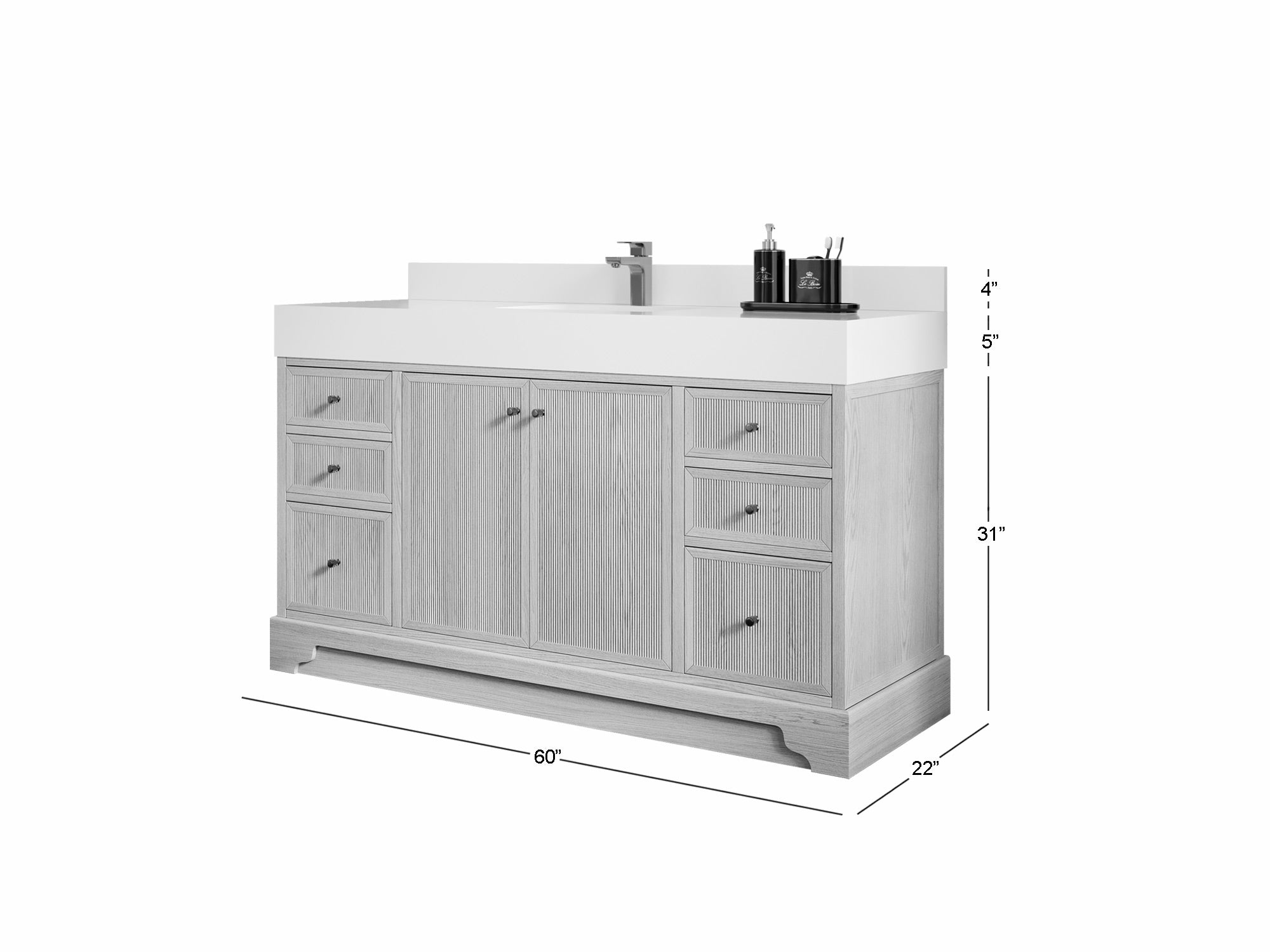 Manhattan White Oak 60 in. W x 22 in. D Single Sink Bathroom Vanity |