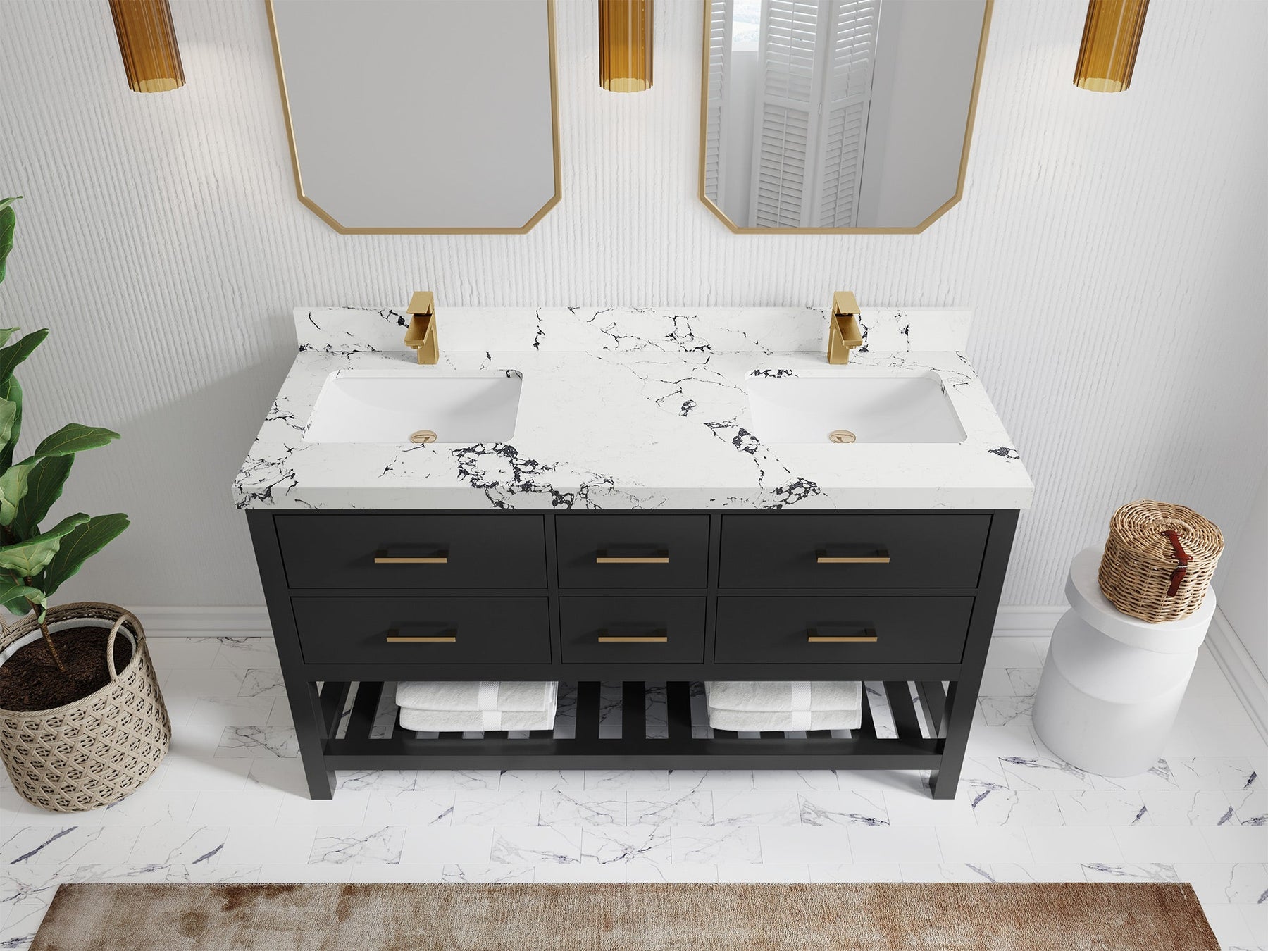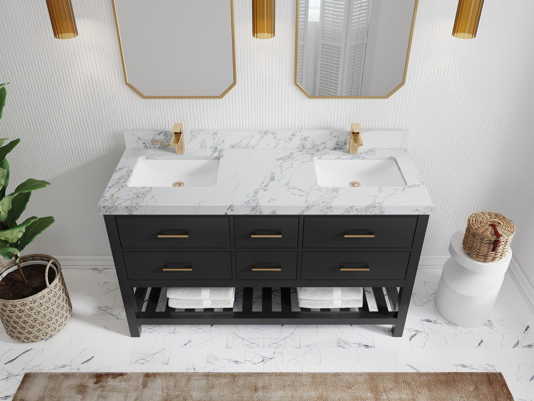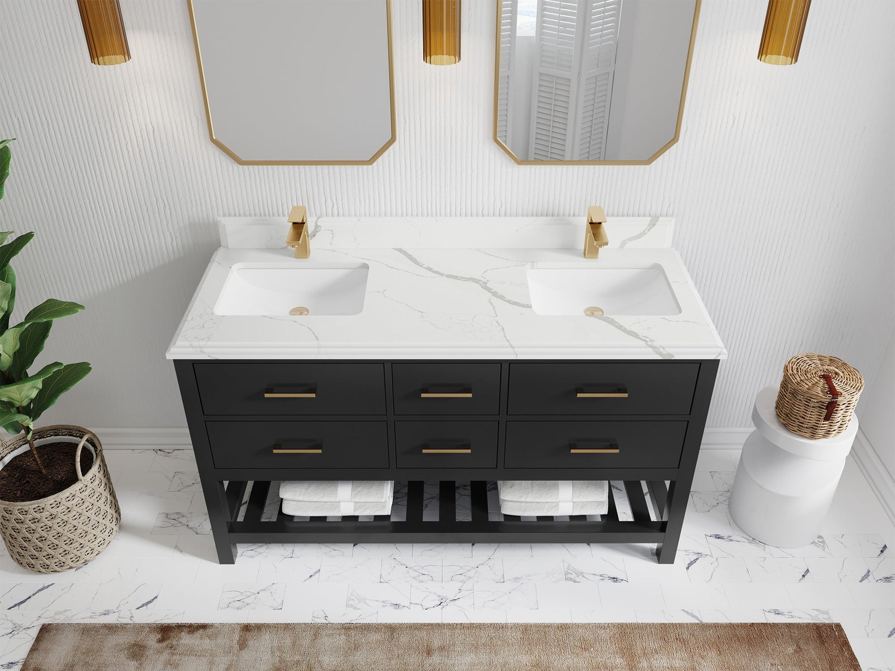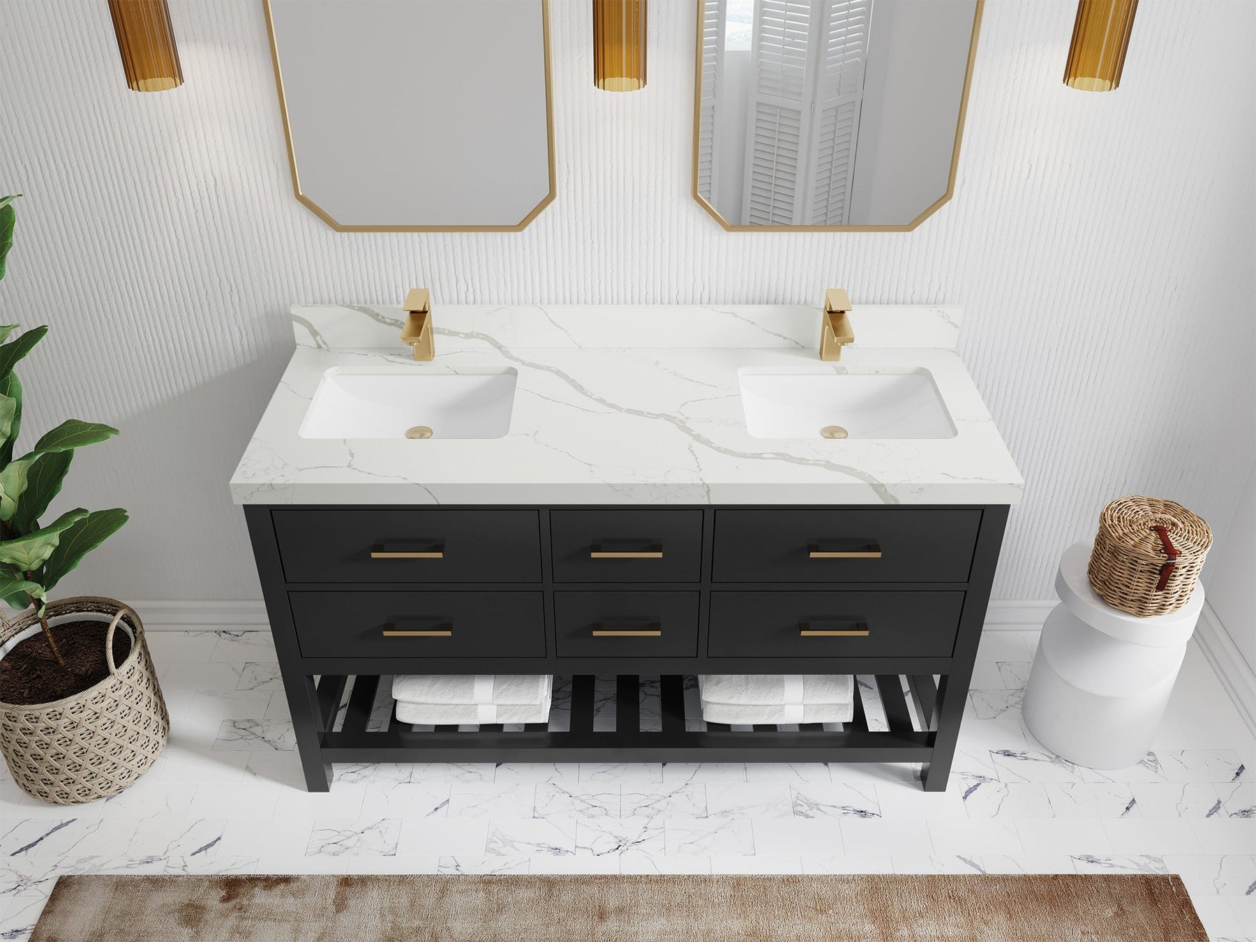 Vanity Countertops options: For Calacatta Laza Quartz, Empira White Quartz, Pure White Quartz, Palissandro Quartz we have 2 options Straight-Mitered Edge and Double Cove Edge; For Calacatta Nuvo Quartz, Carrara Marble, Carrara Quartz, Piatra Gray Quartz, Pearl Light Gray Quartz, Calacatta Black Quartz, Calacatta Gold Quartz, Calacatta Sienna Quartz, Calacatta Poanazzo Quartz, Venatino Quartz, Viola Brown Quartz, Viola Gold Quartz, Viola Night Quartz, Viola Biagio Quartz, Berkshire Brass Quartz, Frosty Carrara Quartz, Onyx Quartz we have Straight - Mitered Edge option.