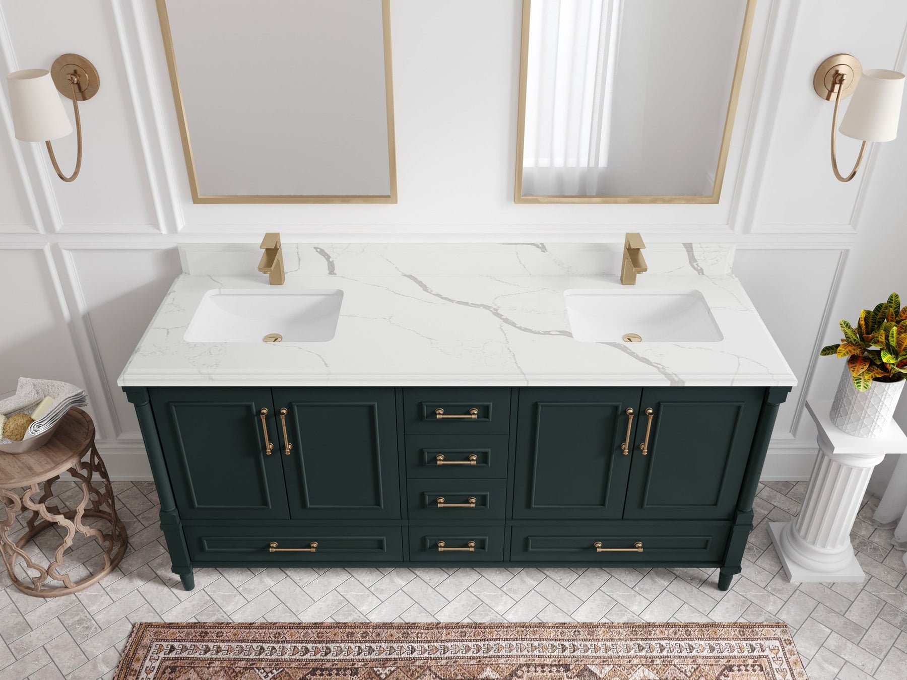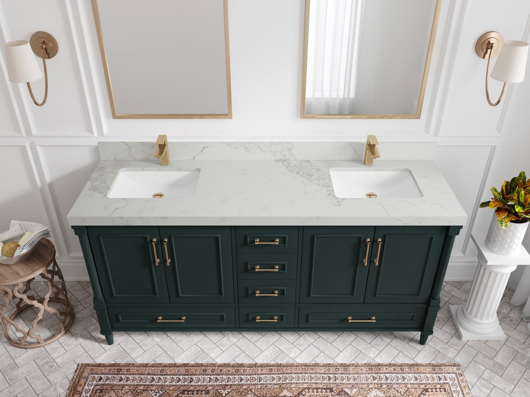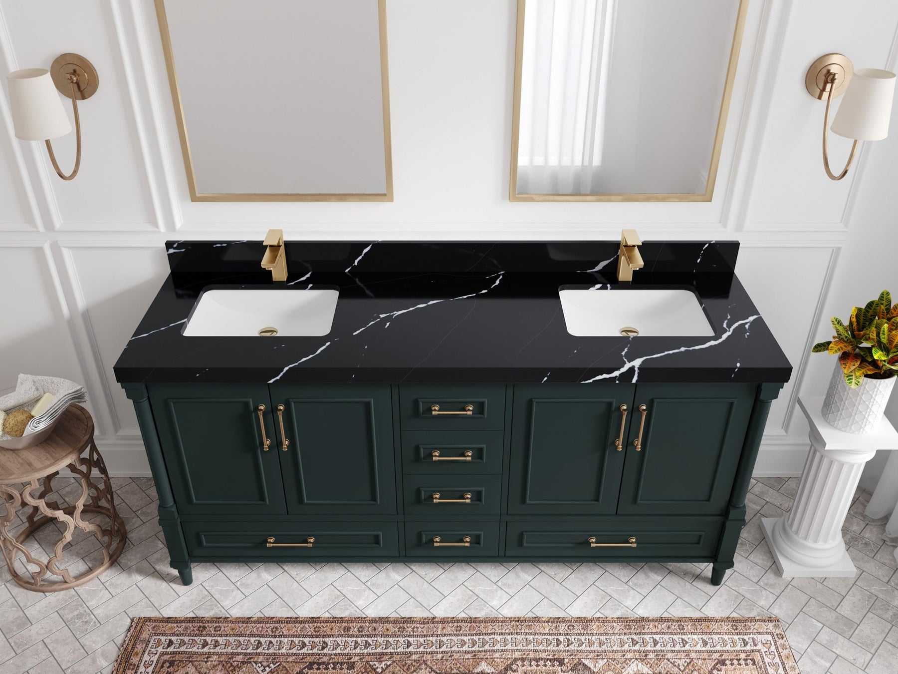 Aberdeen 72 in. W x 22 in. D Double Sink Bathroom Vanity | Dark Forest Green