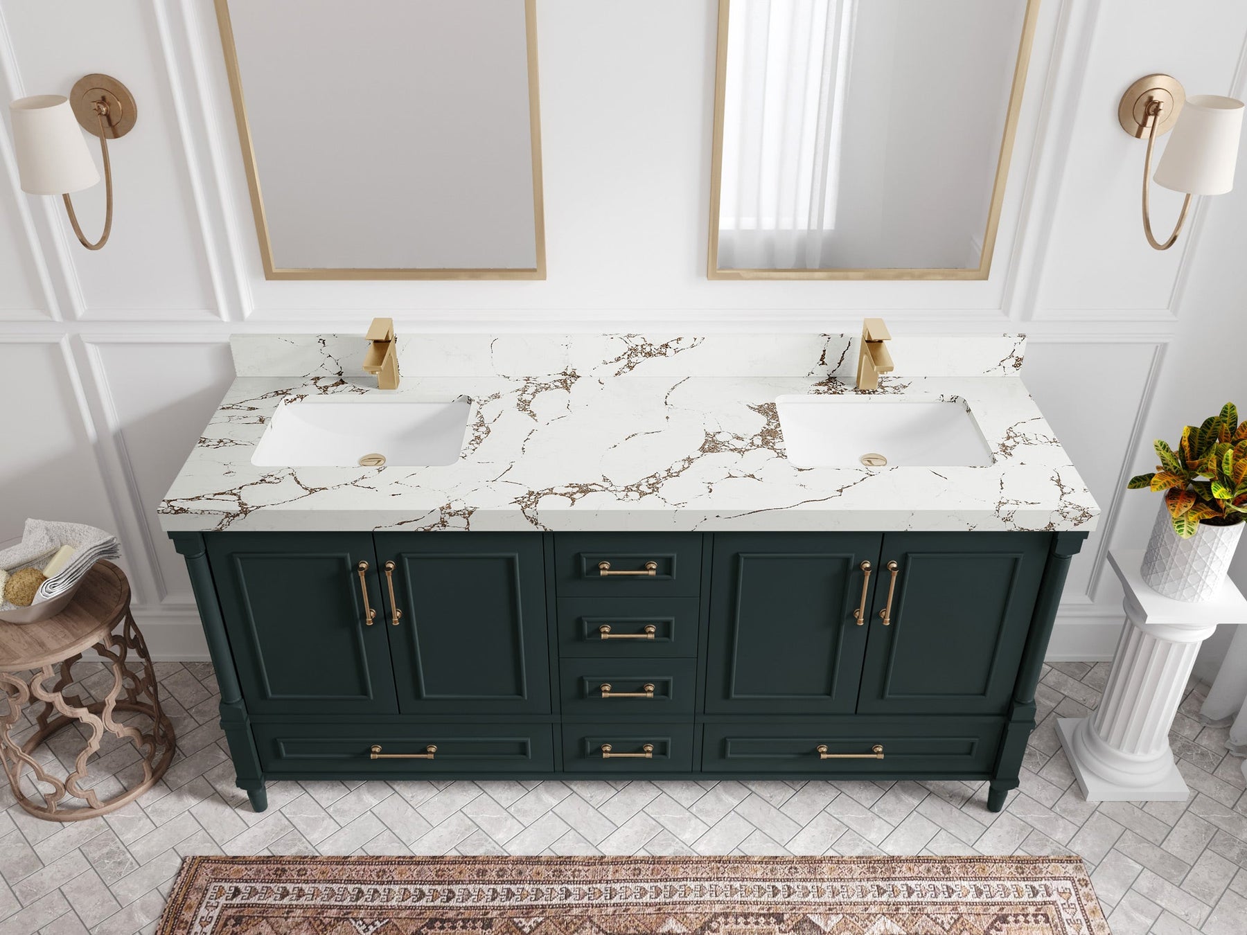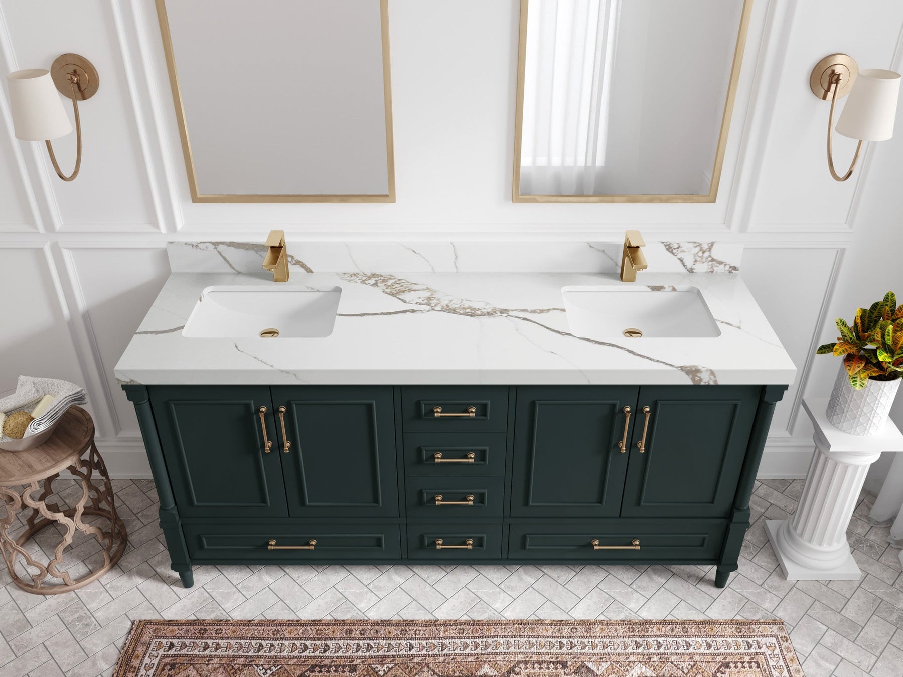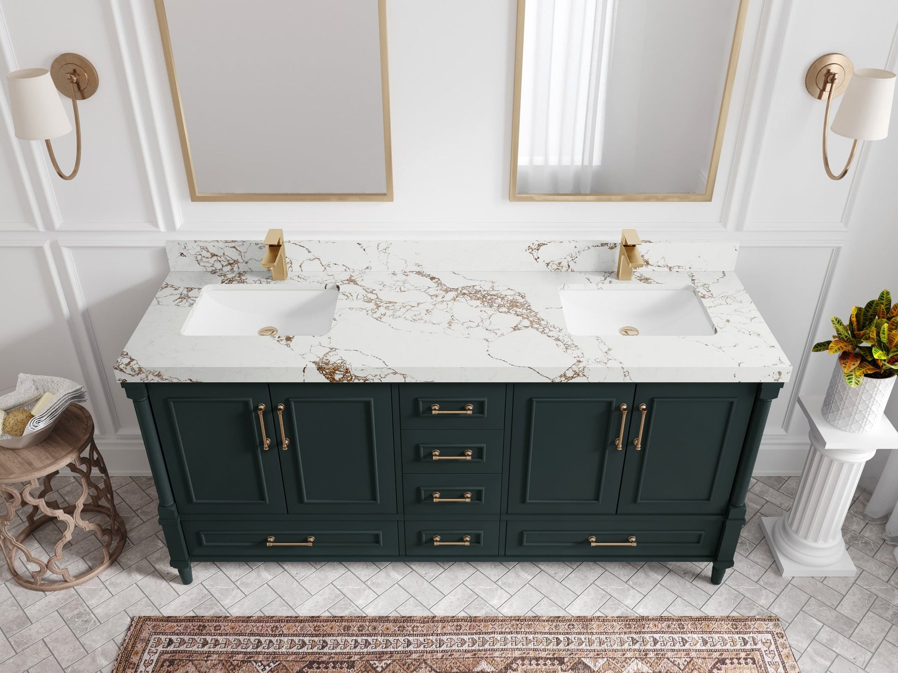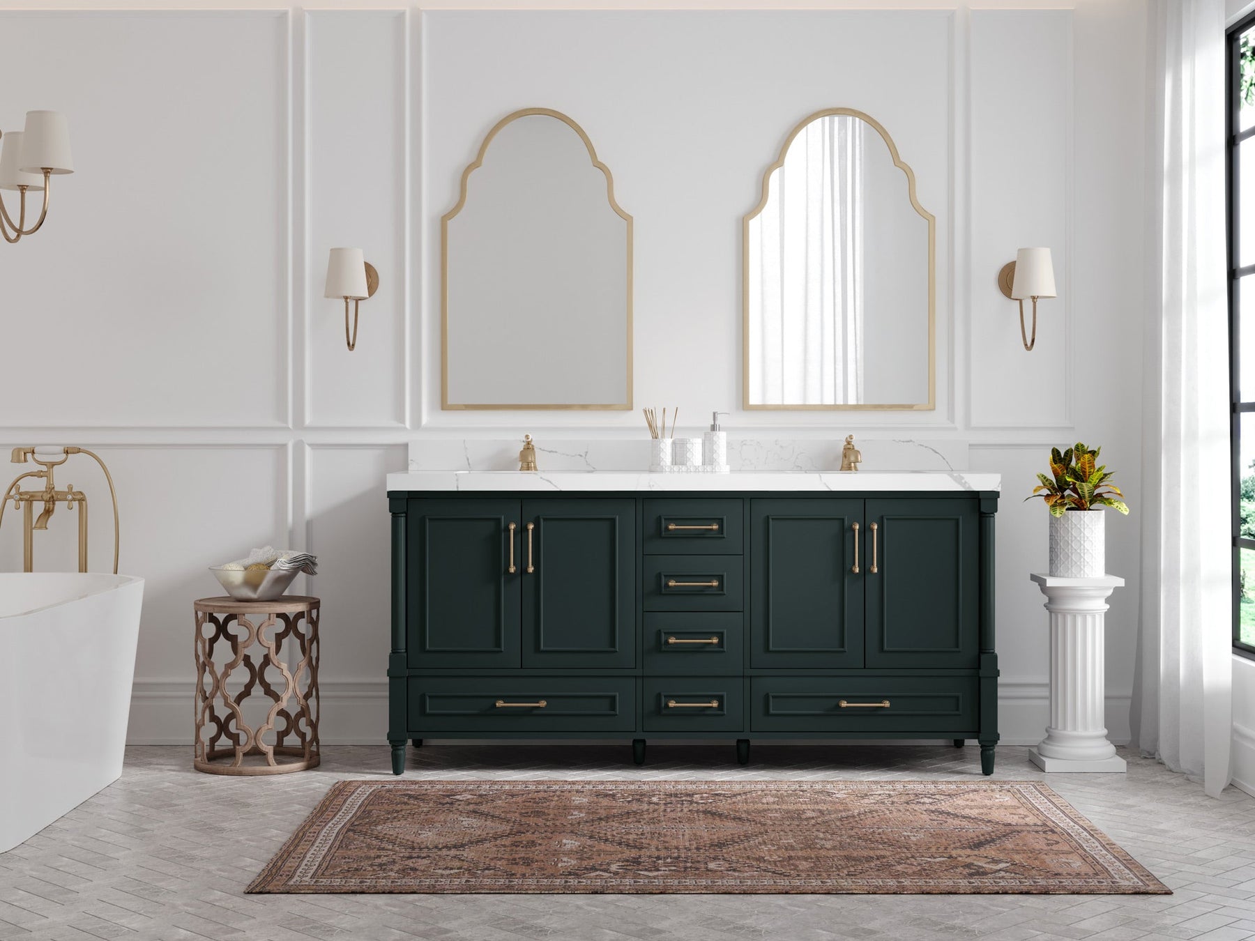 Aberdeen 72 in. W x 22 in. D Double Sink Bathroom Vanity | Dark Forest Green