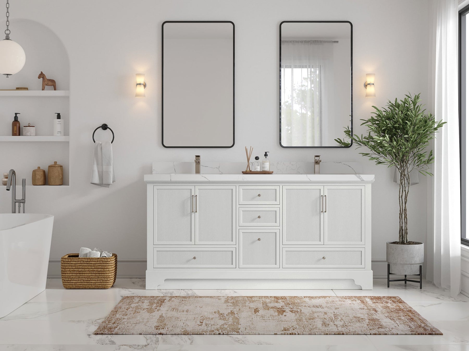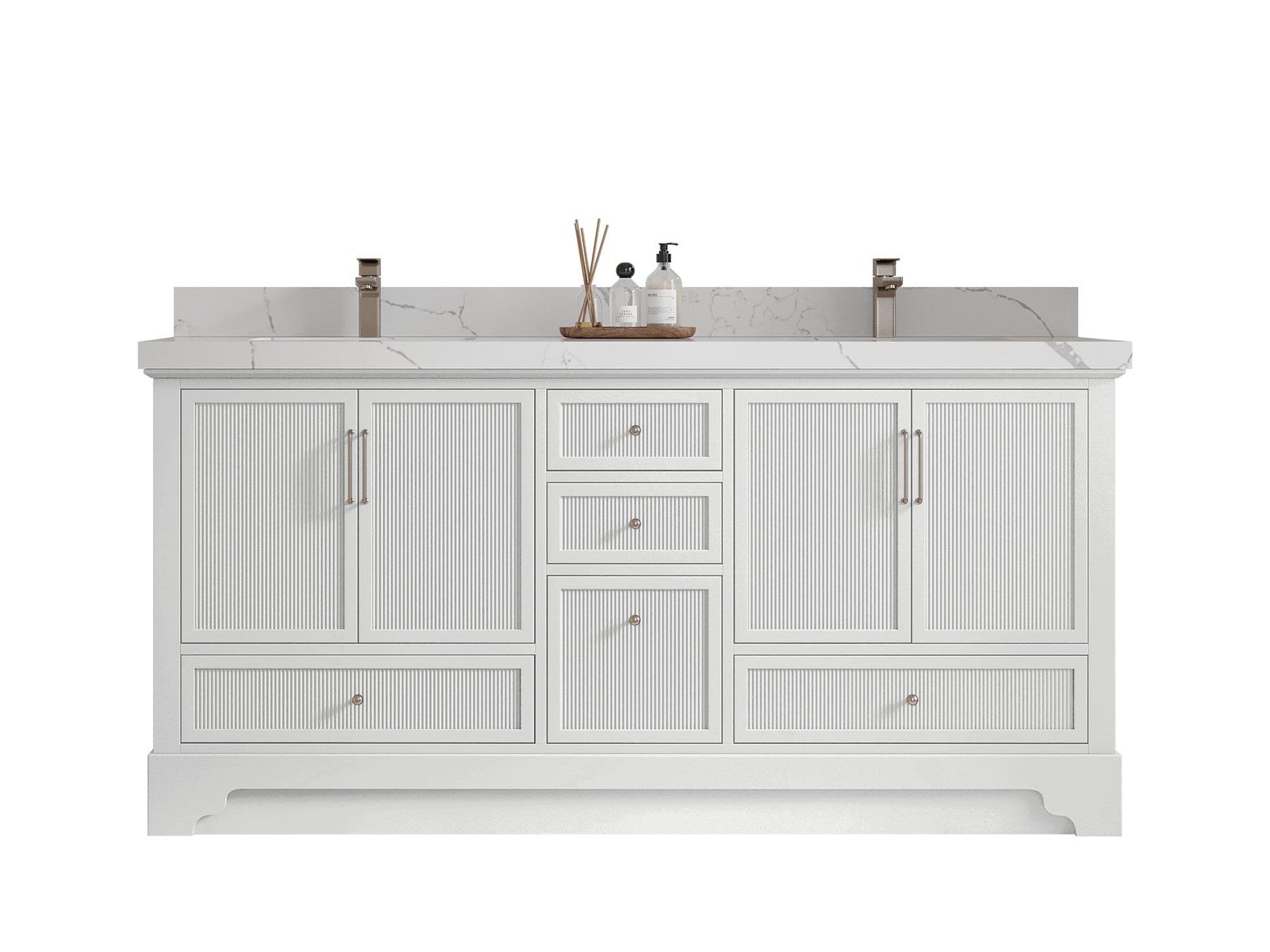 Faucet Hole(S): Comes with Single Faucet, 8 (in.) Widespread Faucet, Wall mount Faucets - Only Available for White Quartz and Carrara Quartz. (PLEASE ADD THIS CONFIGURATION UNDER COUNTERTOPS SECTION )