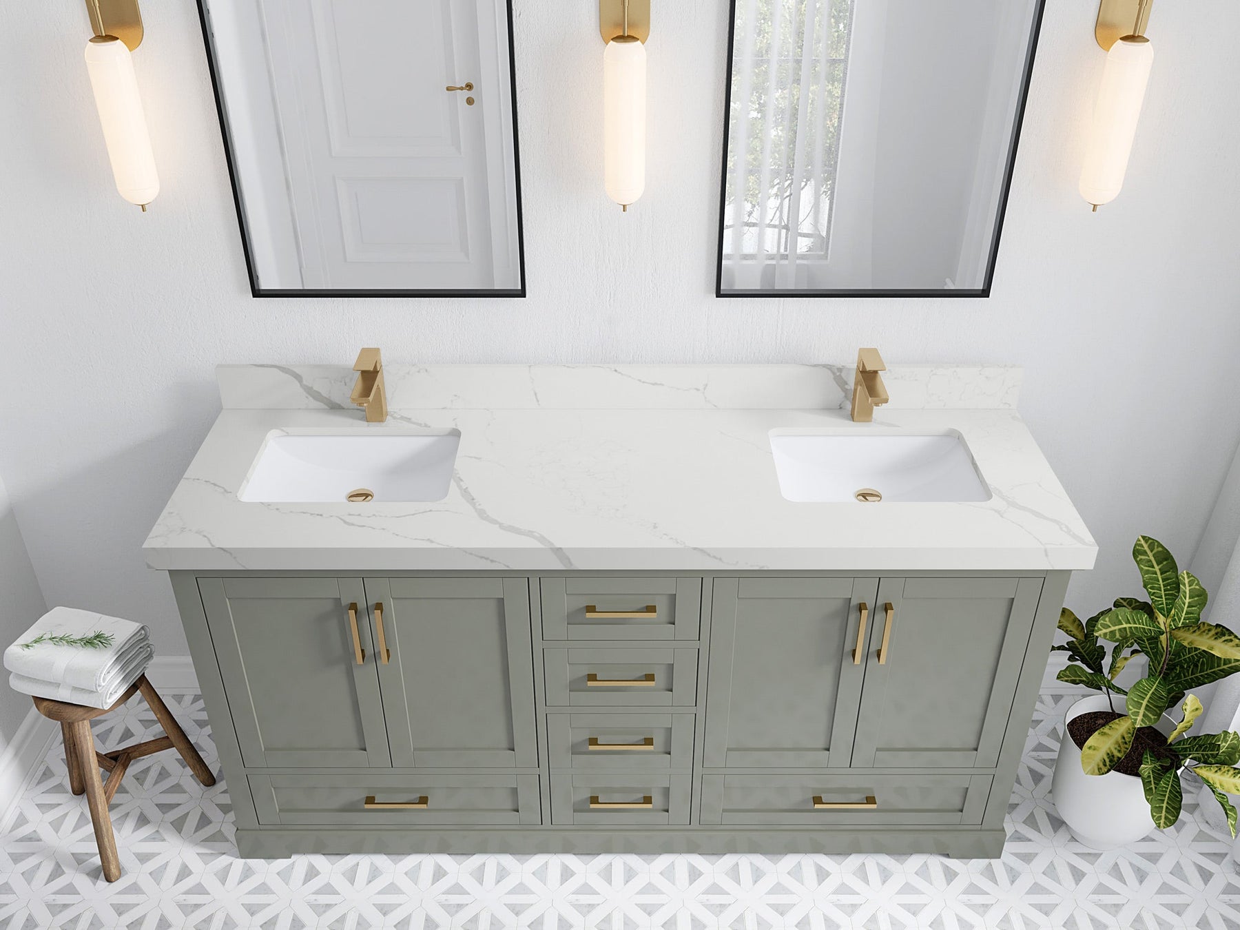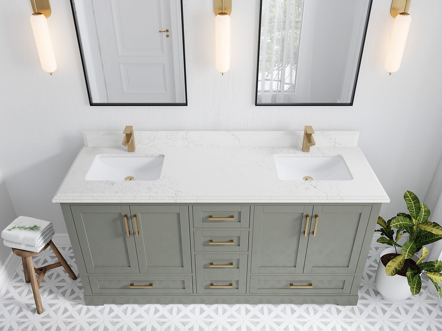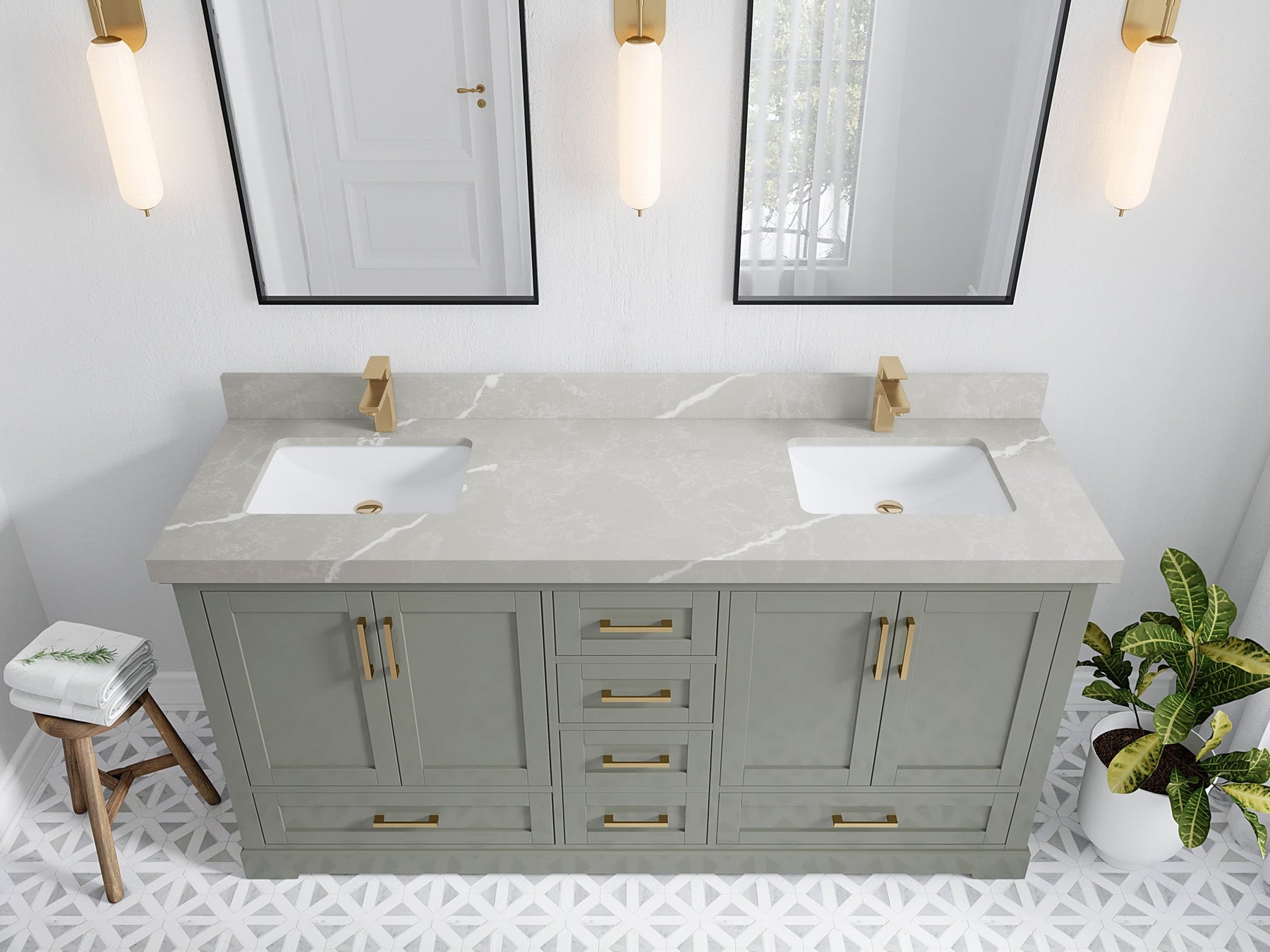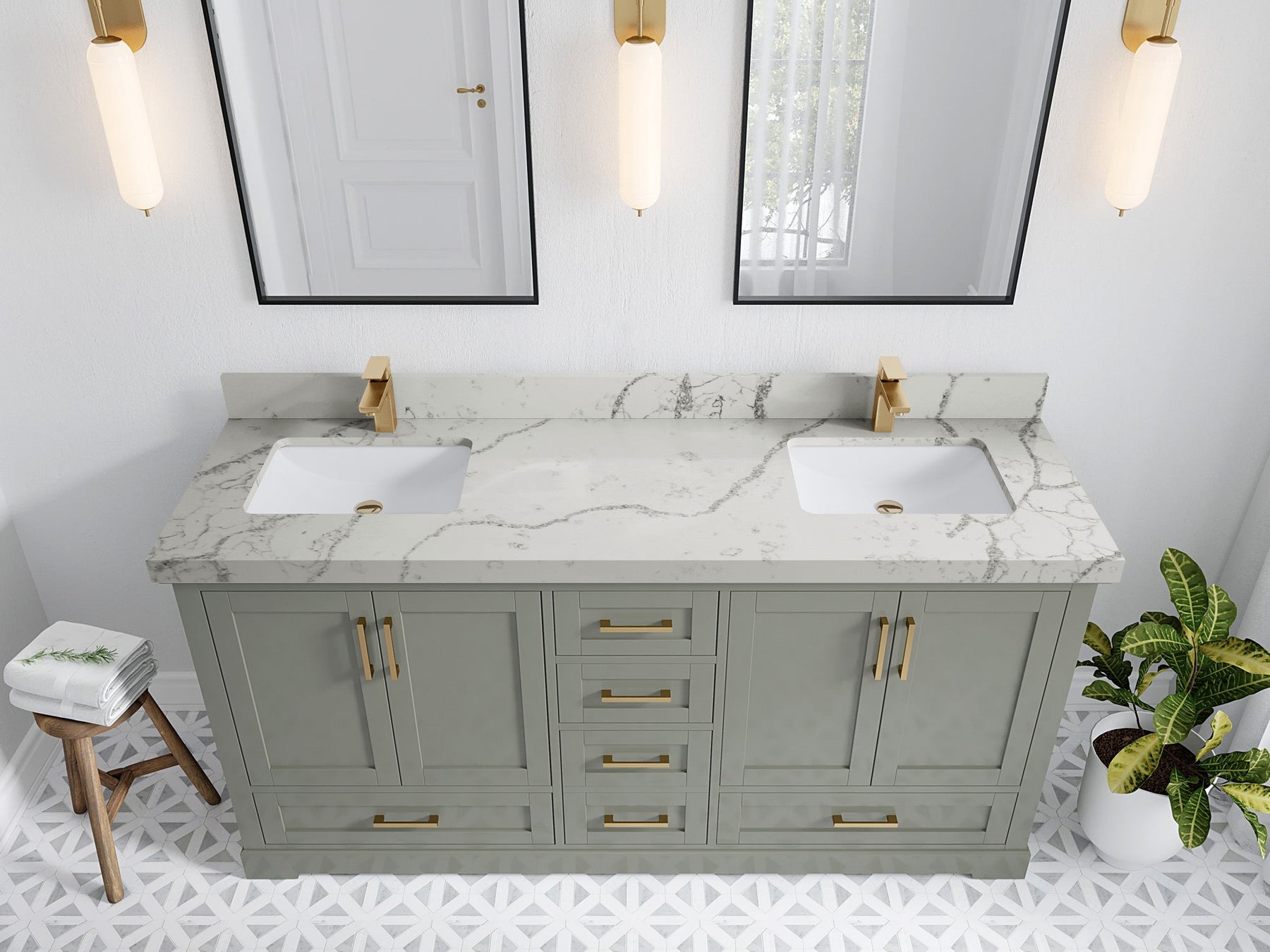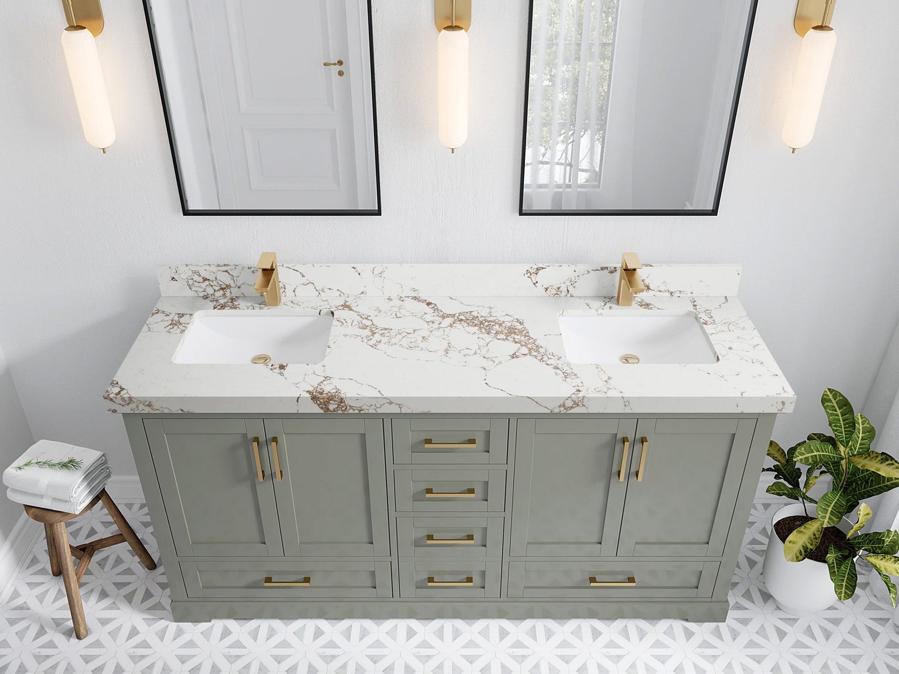 Faucet Hole(S): Comes with Single Faucet, 8 (in.) Widespread Faucet, Wall mount Faucets - Only Available for White Quartz and Carrara Quartz. (PLEASE ADD THIS CONFIGURATION UNDER COUNTERTOPS SECTION )