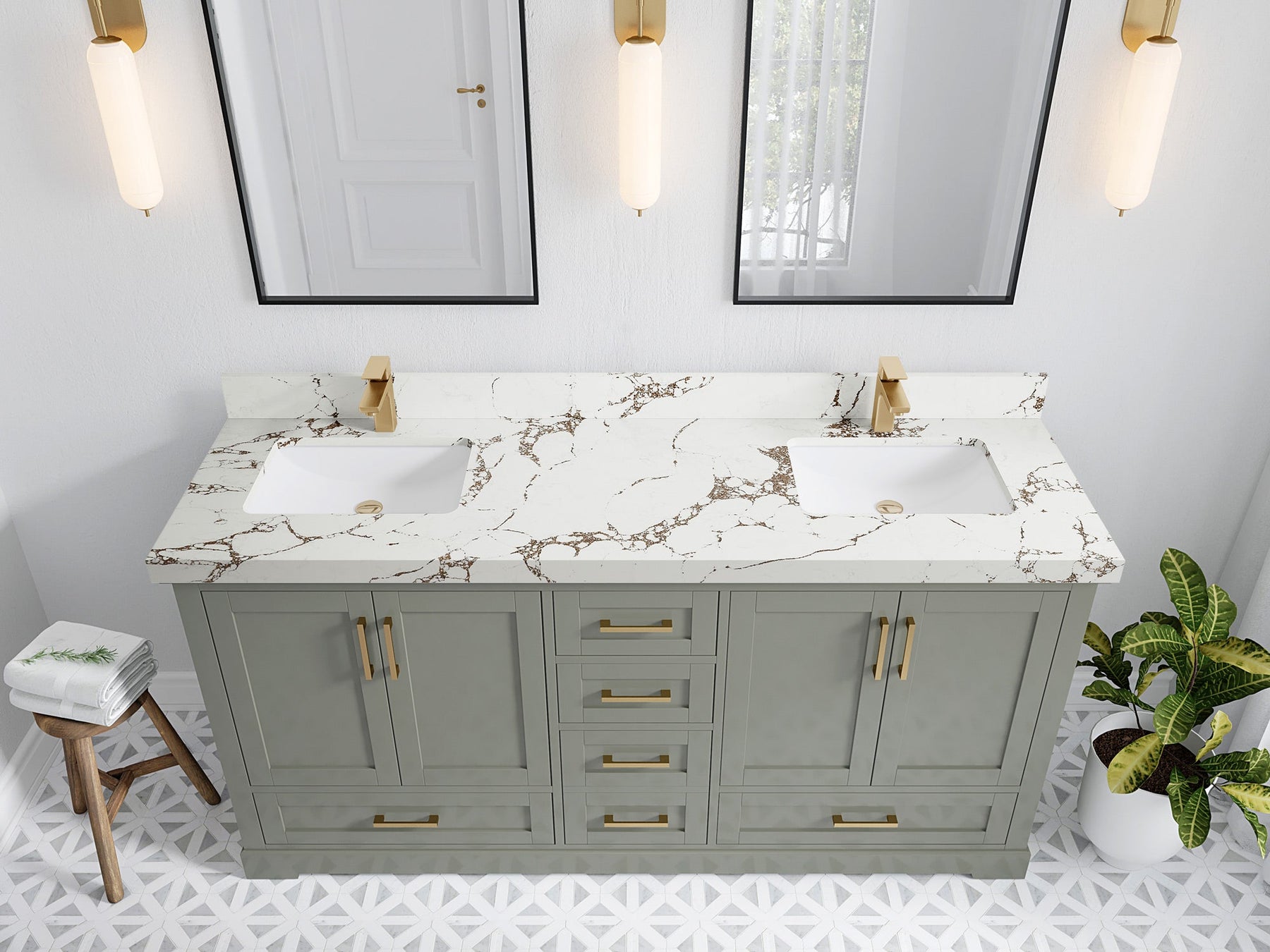 Vanity Countertops options: For Calacatta Laza Quartz, Empira White Quartz, Pure White Quartz, Palissandro Quartz we have 2 options Straight-Mitered Edge and Double Cove Edge; For Calacatta Nuvo Quartz, Carrara Marble, Carrara Quartz, Piatra Gray Quartz, Pearl Light Gray Quartz, Calacatta Black Quartz, Calacatta Gold Quartz, Calacatta Sienna Quartz, Calacatta Poanazzo Quartz, Venatino Quartz, Viola Brown Quartz, Viola Gold Quartz, Viola Night Quartz, Viola Biagio Quartz, Berkshire Brass Quartz, Frosty Carrara Quartz, Onyx Quartz we have Straight - Mitered Edge option.