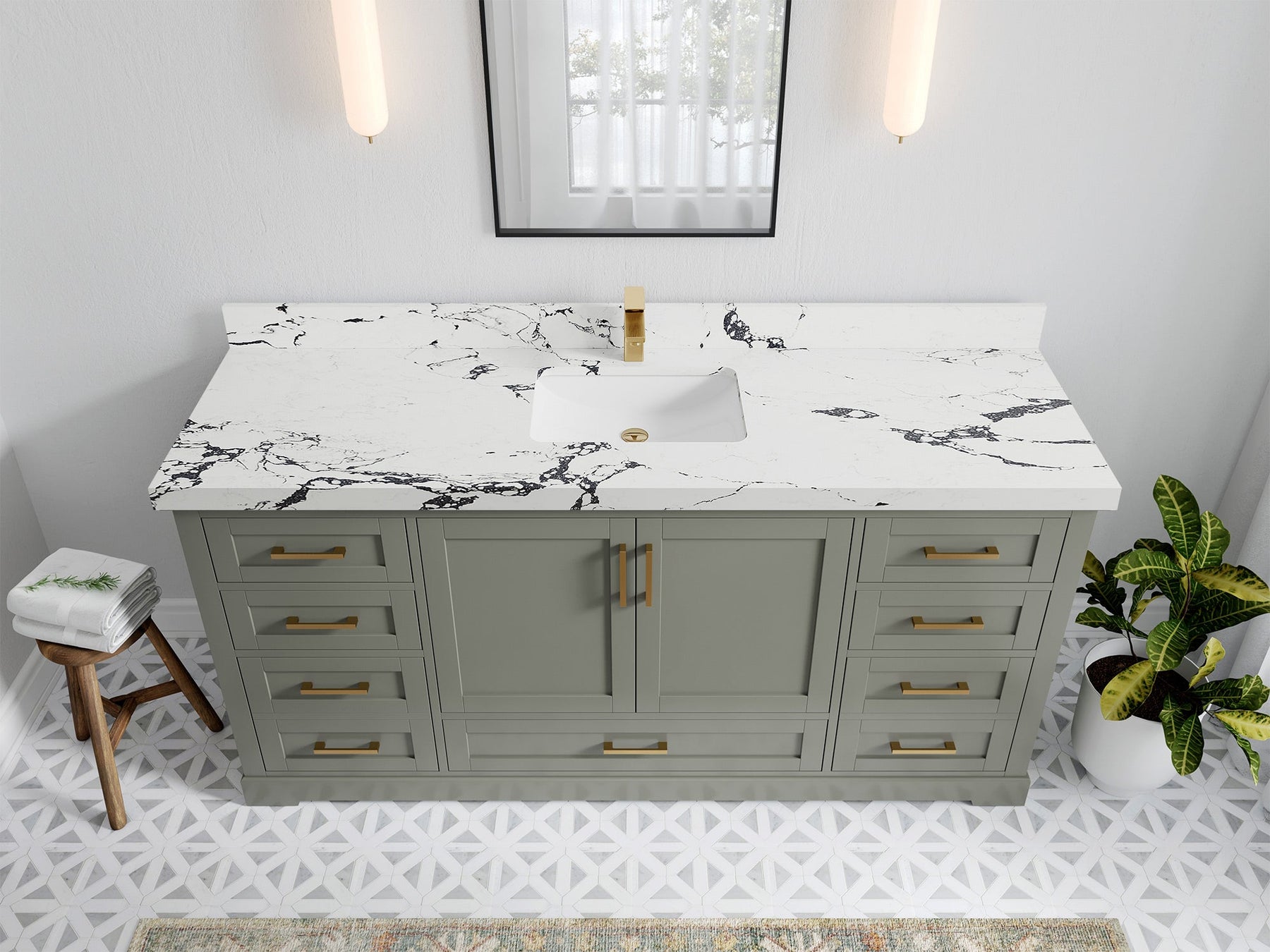 Faucet Hole(S): Comes with Single Faucet, 8 (in.) Widespread Faucet, Wall mount Faucets - Only Available for White Quartz and Carrara Quartz. (PLEASE ADD THIS CONFIGURATION UNDER COUNTERTOPS SECTION )