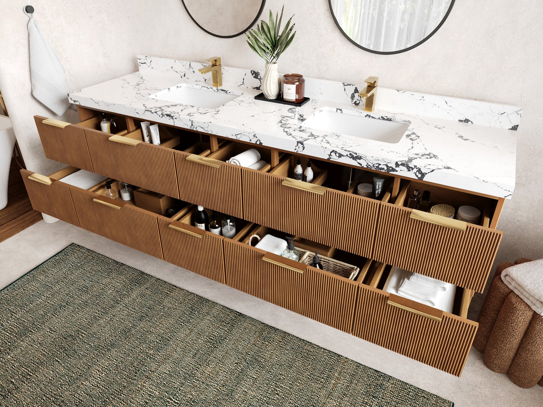 Vanity Countertops options: For Calacatta Laza Quartz, Empira White Quartz, Pure White Quartz, Palissandro Quartz, Calacatta Nuvo Quartz, Carrara Marble, Carrara Quartz, Piatra Gray Quartz, Pearl Light Gray Quartz, Calacatta Black Quartz, Calacatta Gold Quartz, Calacatta Sienna Quartz, Calacatta Poanazzo Quartz, Venatino Quartz, Viola Brown Quartz, Viola Gold Quartz, Viola Night Quartz, Viola Biagio Quartz, Berkshire Brass Quartz, Frosty Carrara Quartz, Onyx Quartz we have Straight - Mitered Edge option.