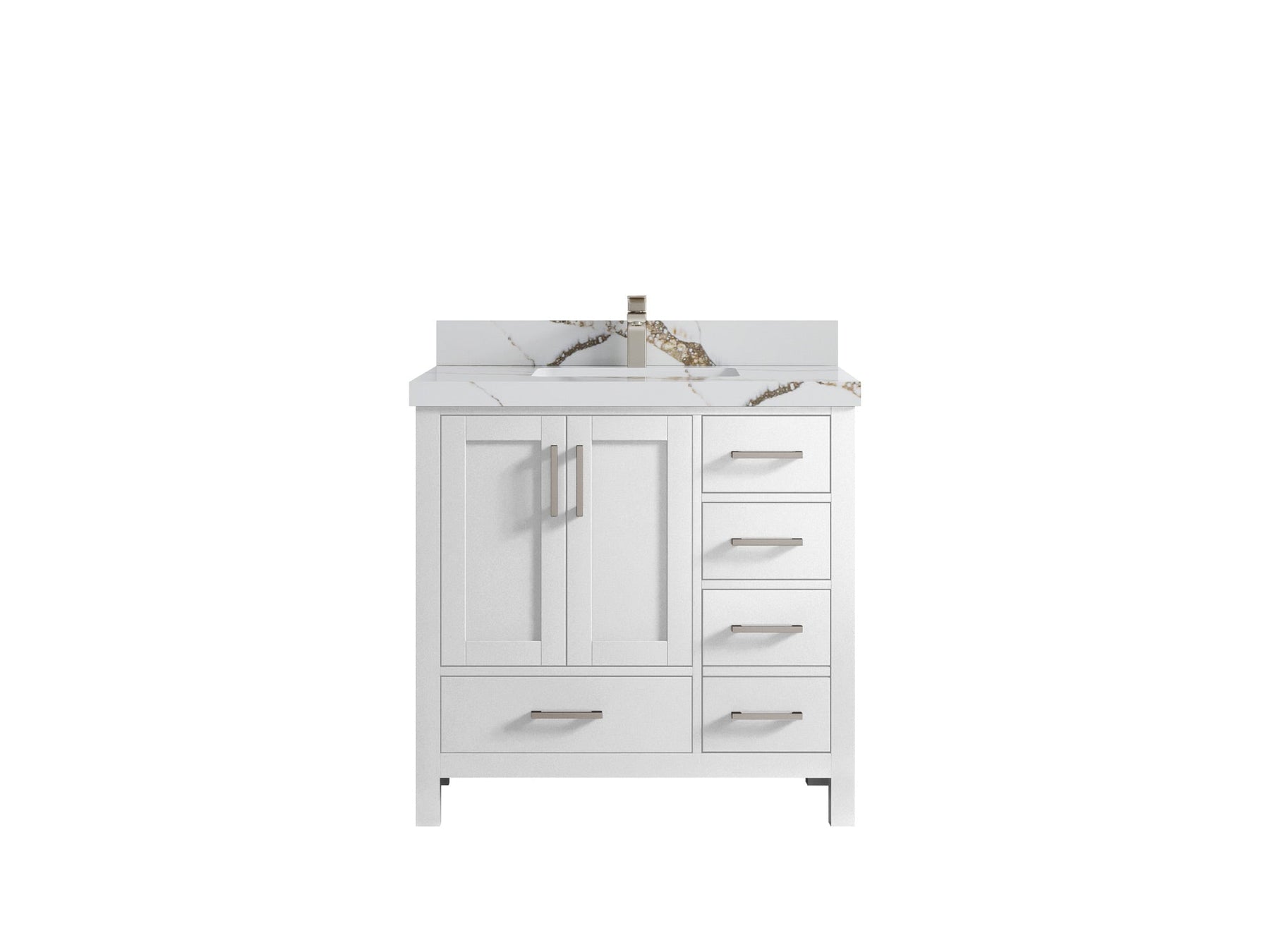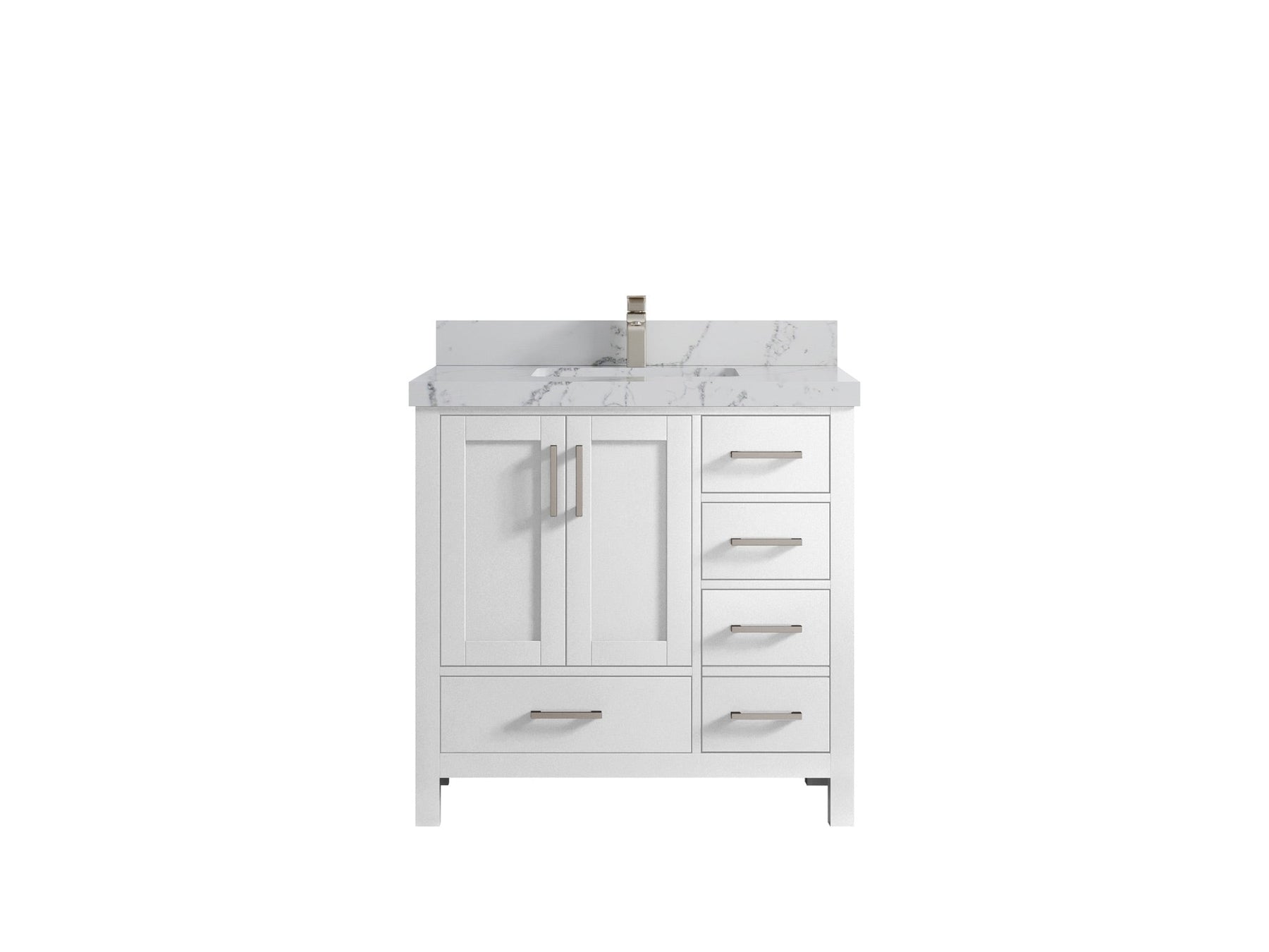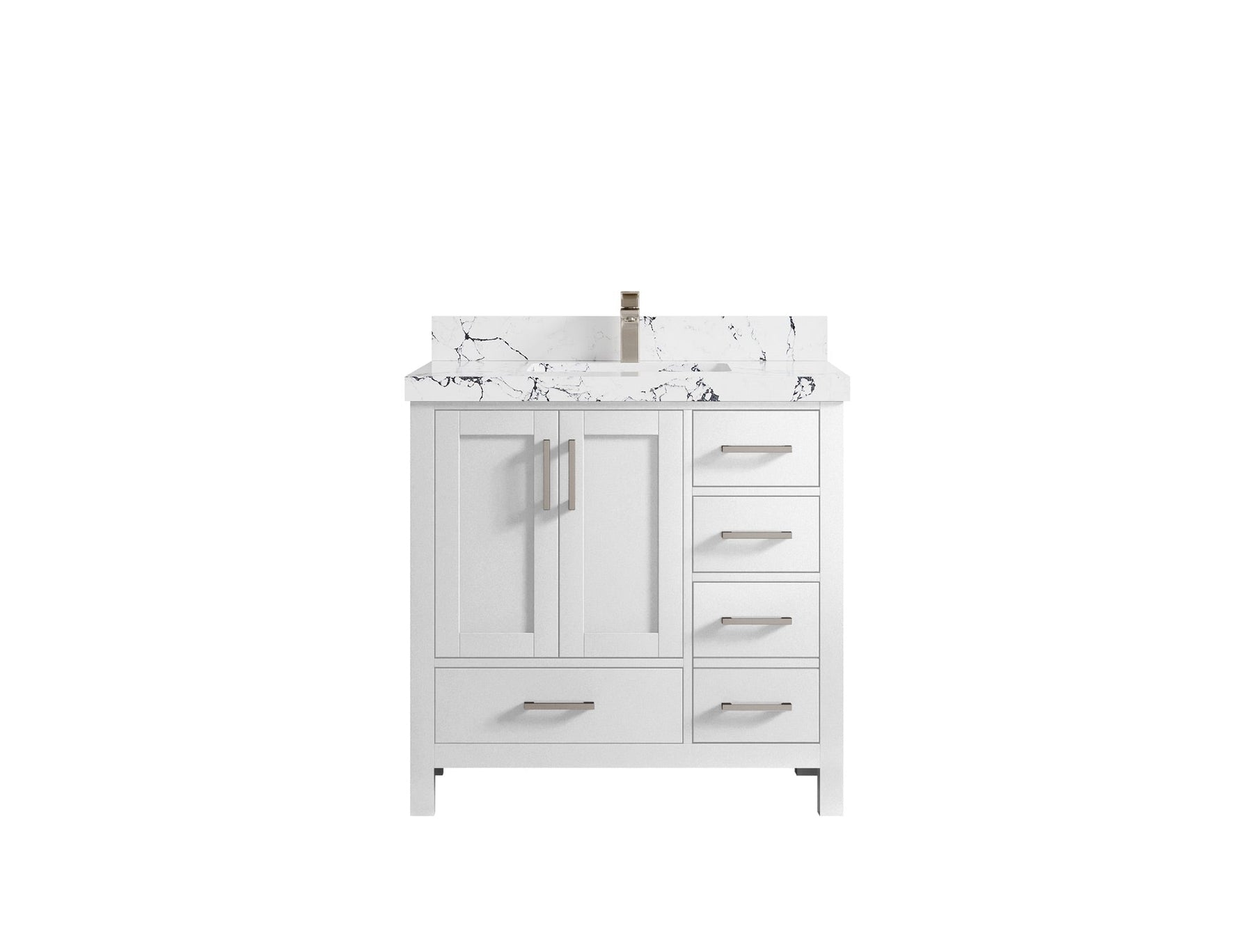 Faucet Hole(S): Comes with Single Faucet, 8 (in.) Widespread Faucet, Wall mount Faucets - Only Available for White Quartz and Carrara Quartz. (PLEASE ADD THIS CONFIGURATION UNDER COUNTERTOPS SECTION )