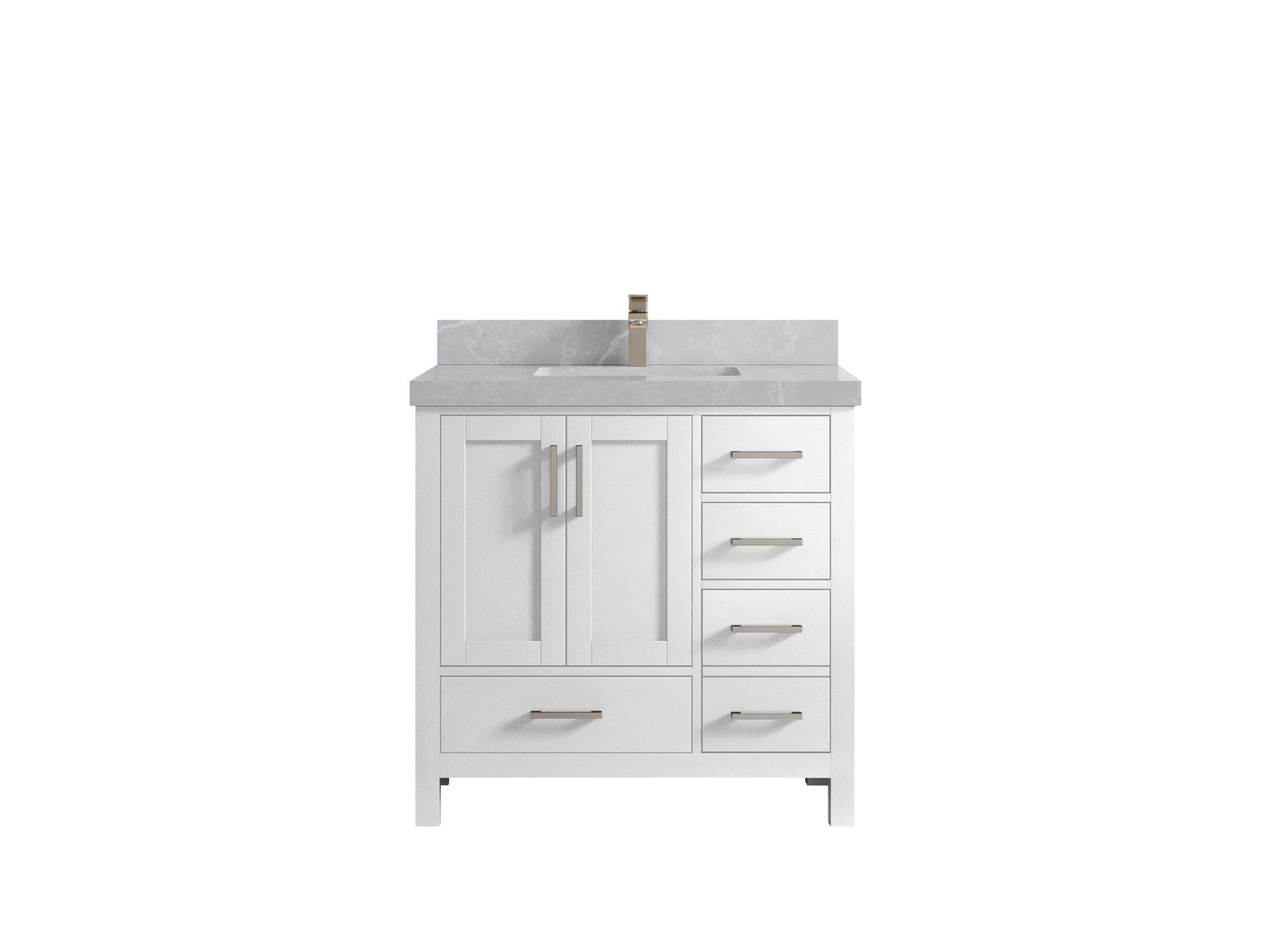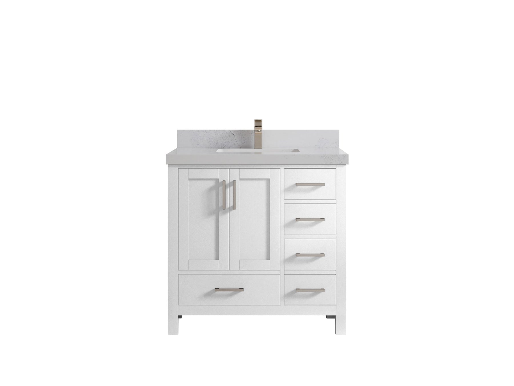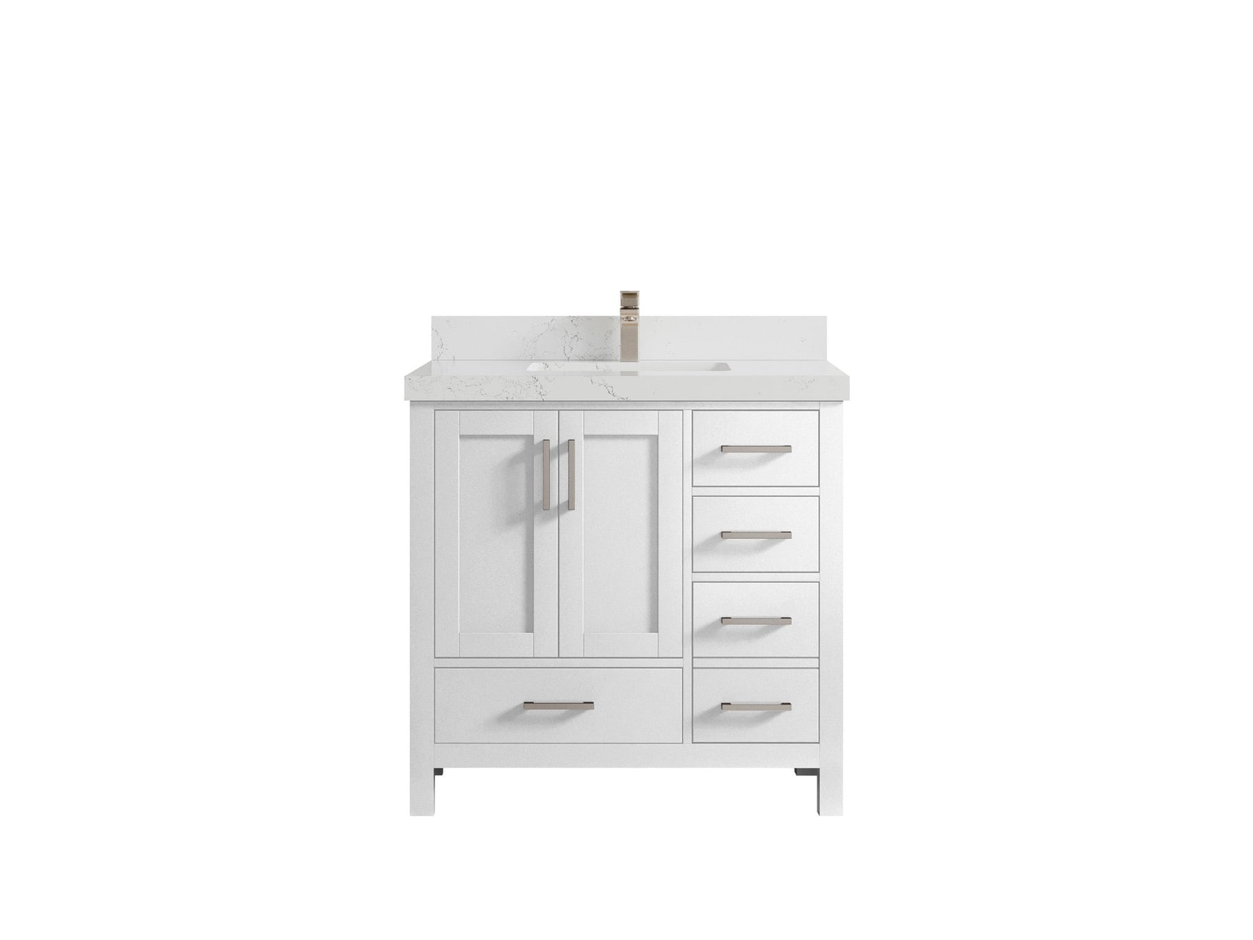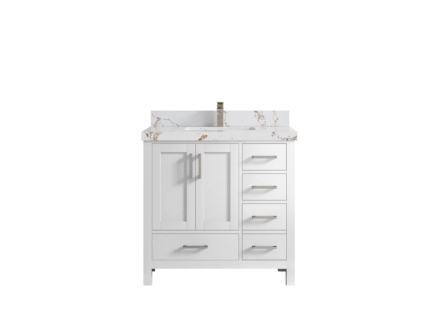 Faucet Hole(S): Comes with Single Faucet, 8 (in.) Widespread Faucet, Wall mount Faucets - Only Available for White Quartz and Carrara Quartz. (PLEASE ADD THIS CONFIGURATION UNDER COUNTERTOPS SECTION )
