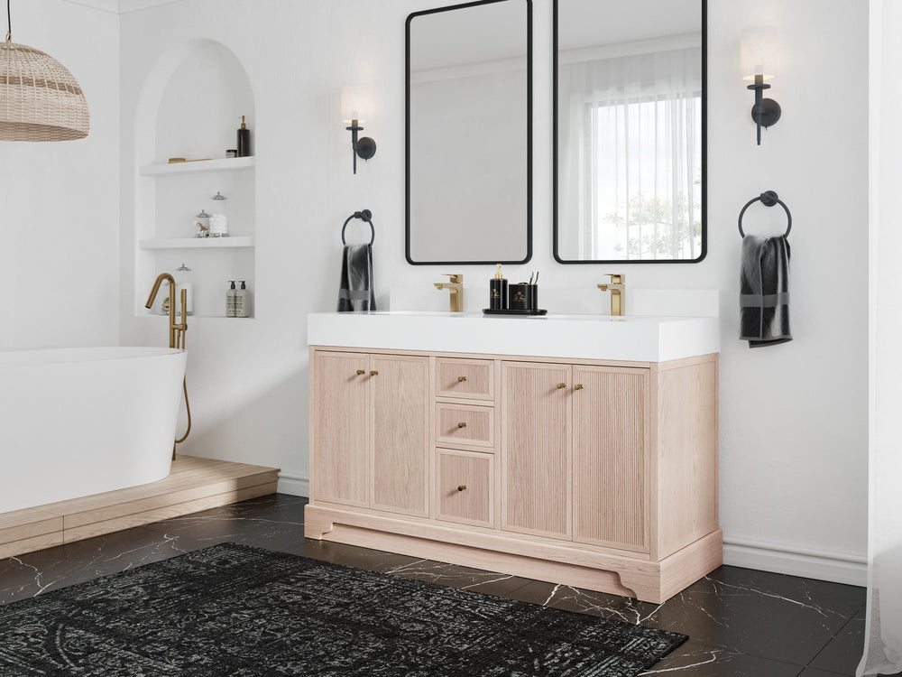 Manhattan White Oak 60 in. W x 22 in. D Double Sink Bathroom Vanity |