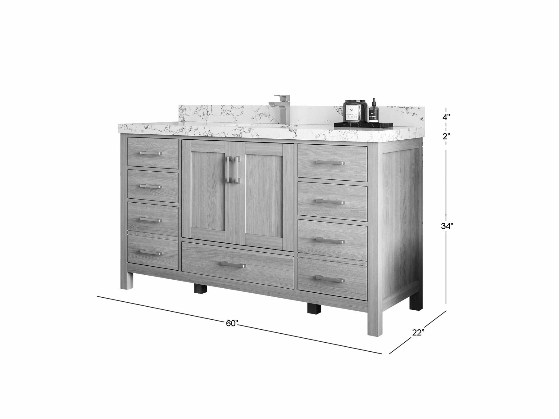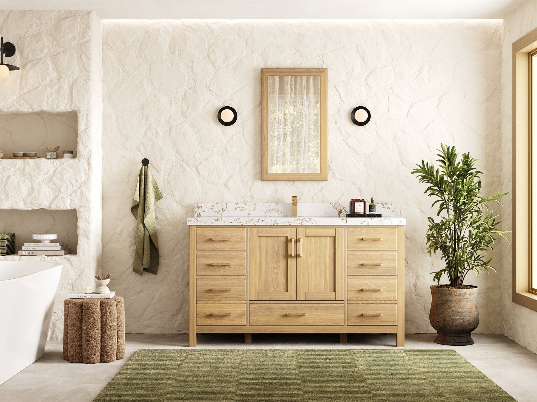 Malibu White Oak 60 in. W x 22 in. D Single Sink Bathroom Vanity - Willow Bath and Vanity