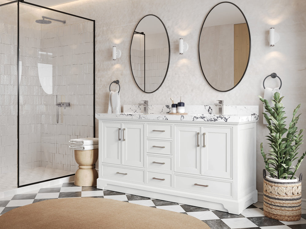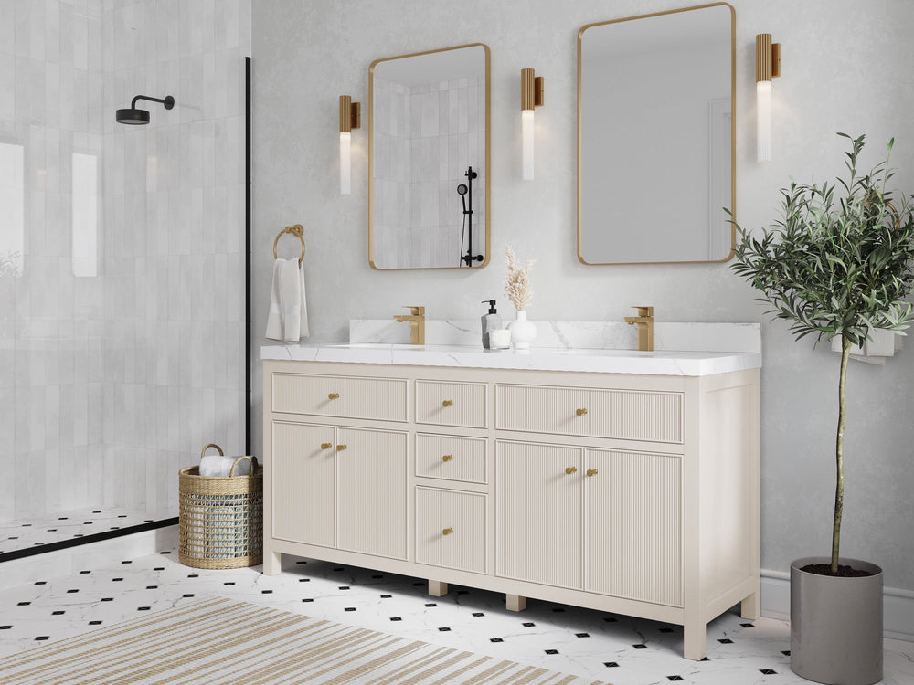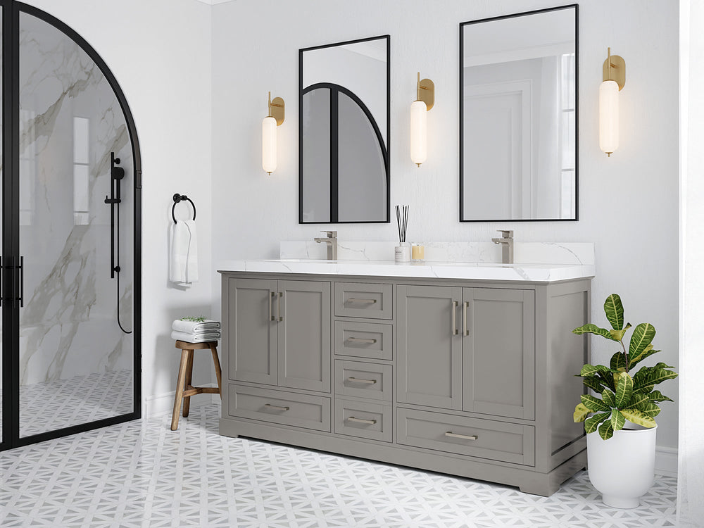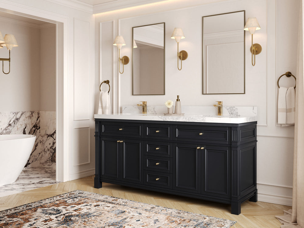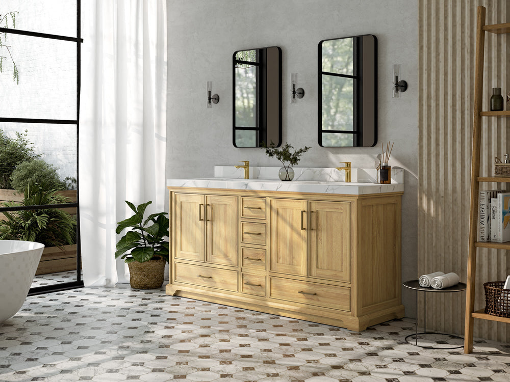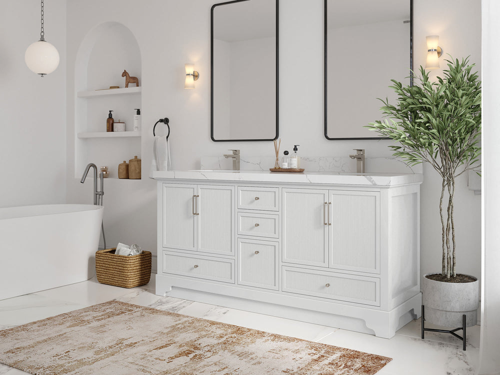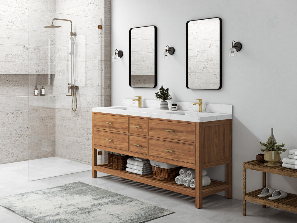 Upgrade your bathroom with our 72 in double vanity or 72 inch bathroom vanity double sink with top. These vanities come with all the features you need to create a beautiful and functional bathroom space. Our selection of 72 in double vanities includes options with drawers and cabinets, so you can choose the storage solution that works best for your needs.