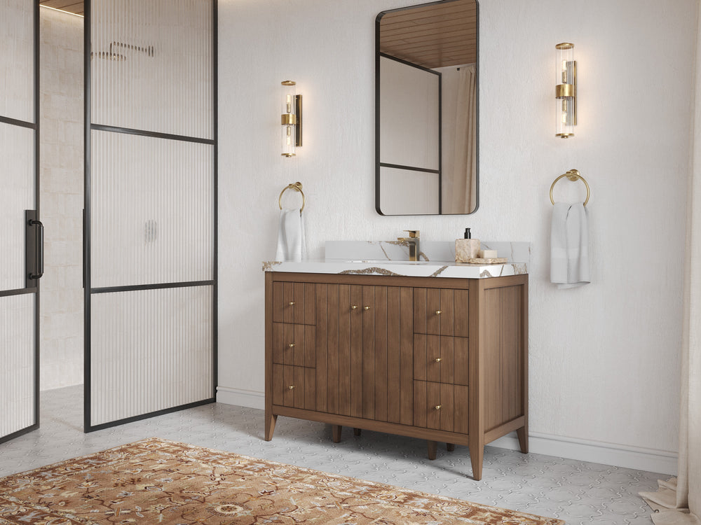 You’ll know it’s a fluted bathroom vanity because of the ornate fluting on the front panels. When executed correctly, fluting adds a different dimension and a sense of depth to bathroom cabinetry.