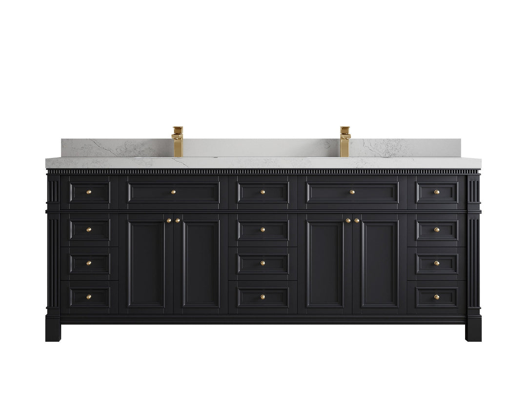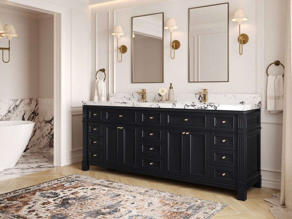 Vanity Countertops options: Straight edge (Calacatta Laza Quartz, Calacatta Nuvo Quartz, Arabescato Marble, Carrara Quartz, Empira White Quartz, Palissandro Quartz, White Quartz, Terrazzo Arctic Breeze, Terrazzo Golden Dusk)