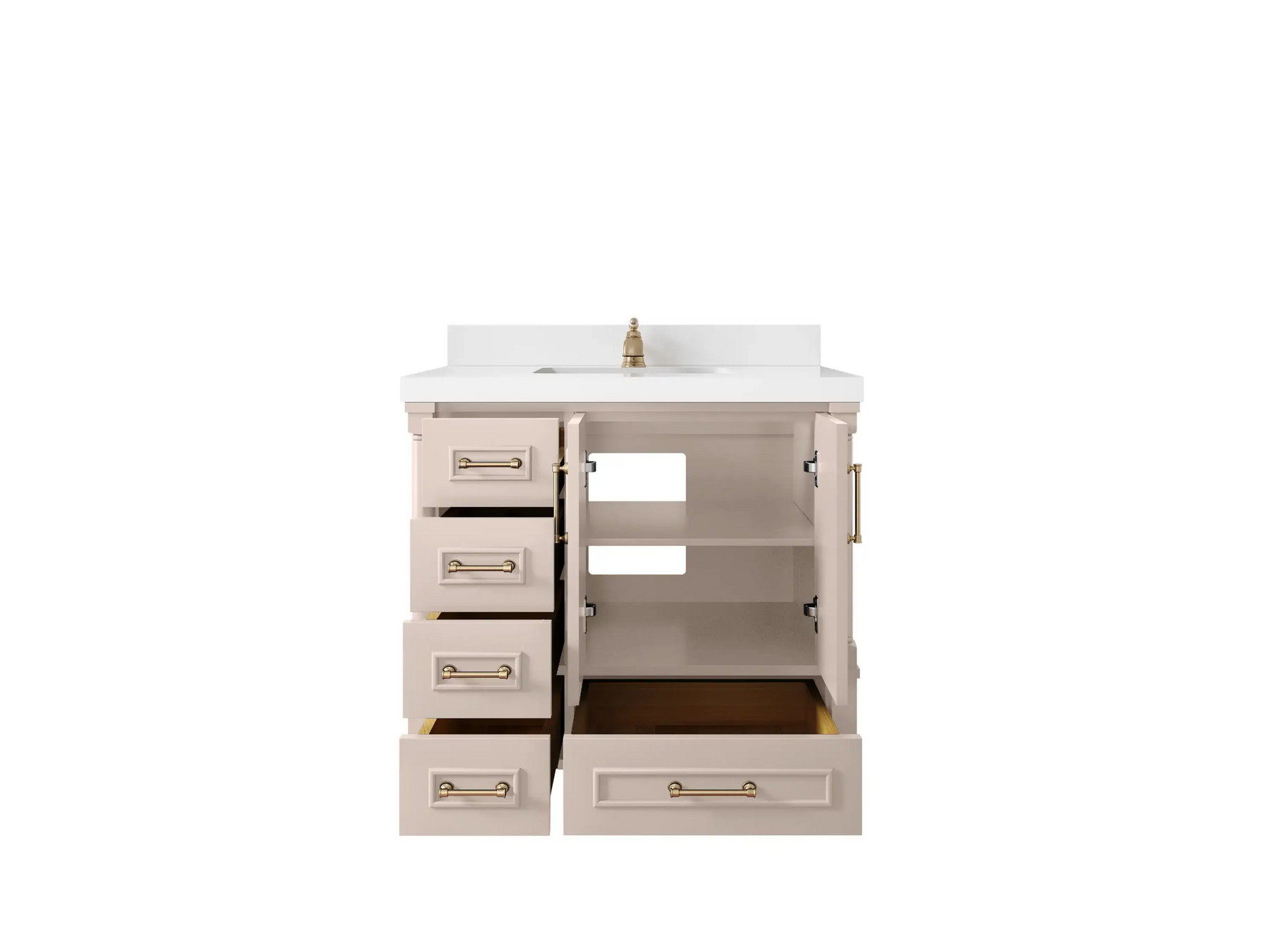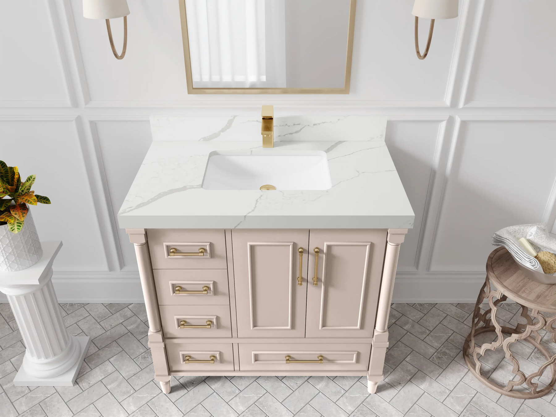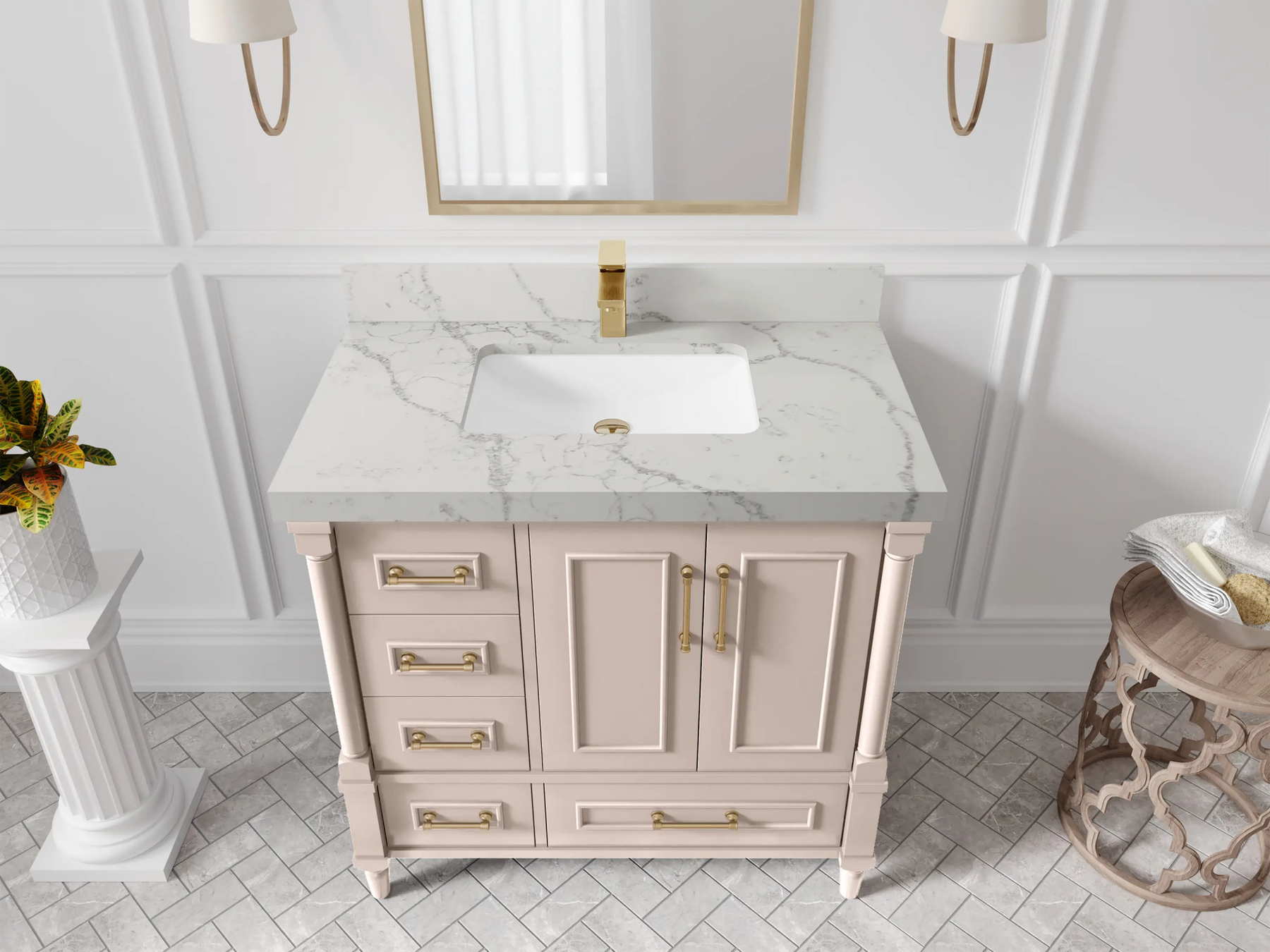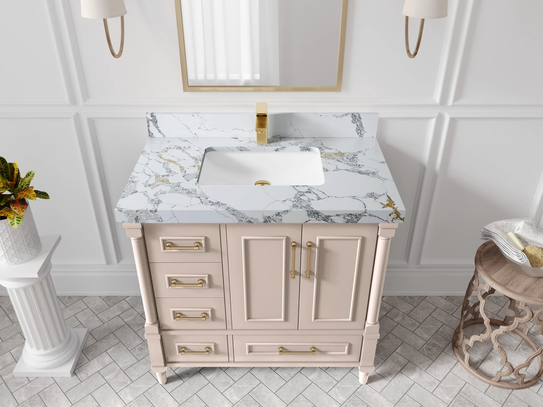 Vanity Countertops options: For Calacatta Laza Quartz, Empira White Quartz, Pure White Quartz, Palissandro Quartz we have 2 options Straight-Mitered Edge and Double Cove Edge; For Calacatta Nuvo Quartz, Carrara Marble, Carrara Quartz, Piatra Gray Quartz, Pearl Light Gray Quartz, Calacatta Black Quartz, Calacatta Gold Quartz, Calacatta Sienna Quartz, Calacatta Poanazzo Quartz, Venatino Quartz, Viola Brown Quartz, Viola Gold Quartz, Viola Night Quartz, Viola Biagio Quartz, Berkshire Brass Quartz, Frosty Carrara Quartz, Onyx Quartz we have Straight - Mitered Edge option.