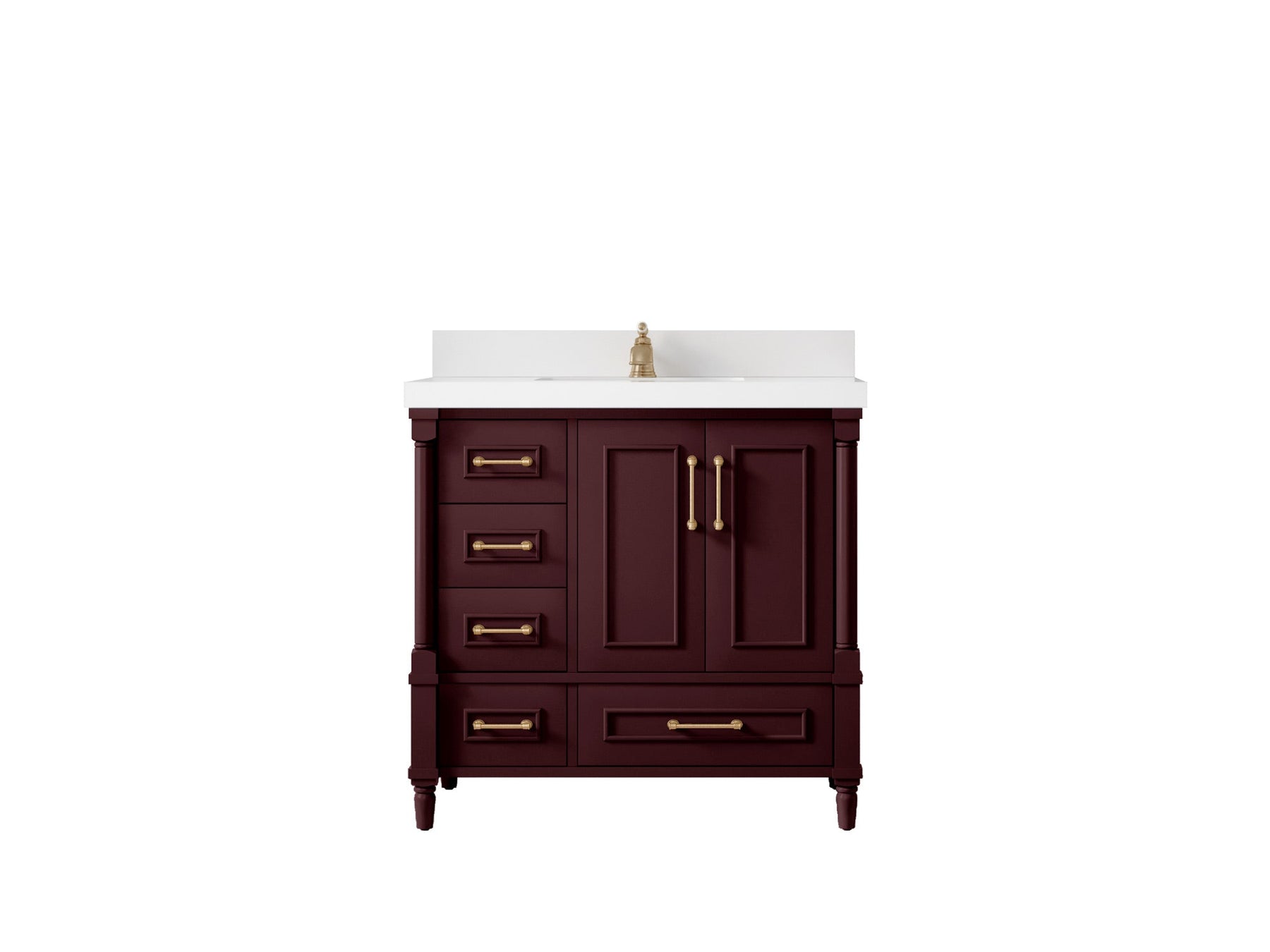 Aberdeen 36 in. W x 22 in. D Center Sink Bathroom Vanity | Burgundy