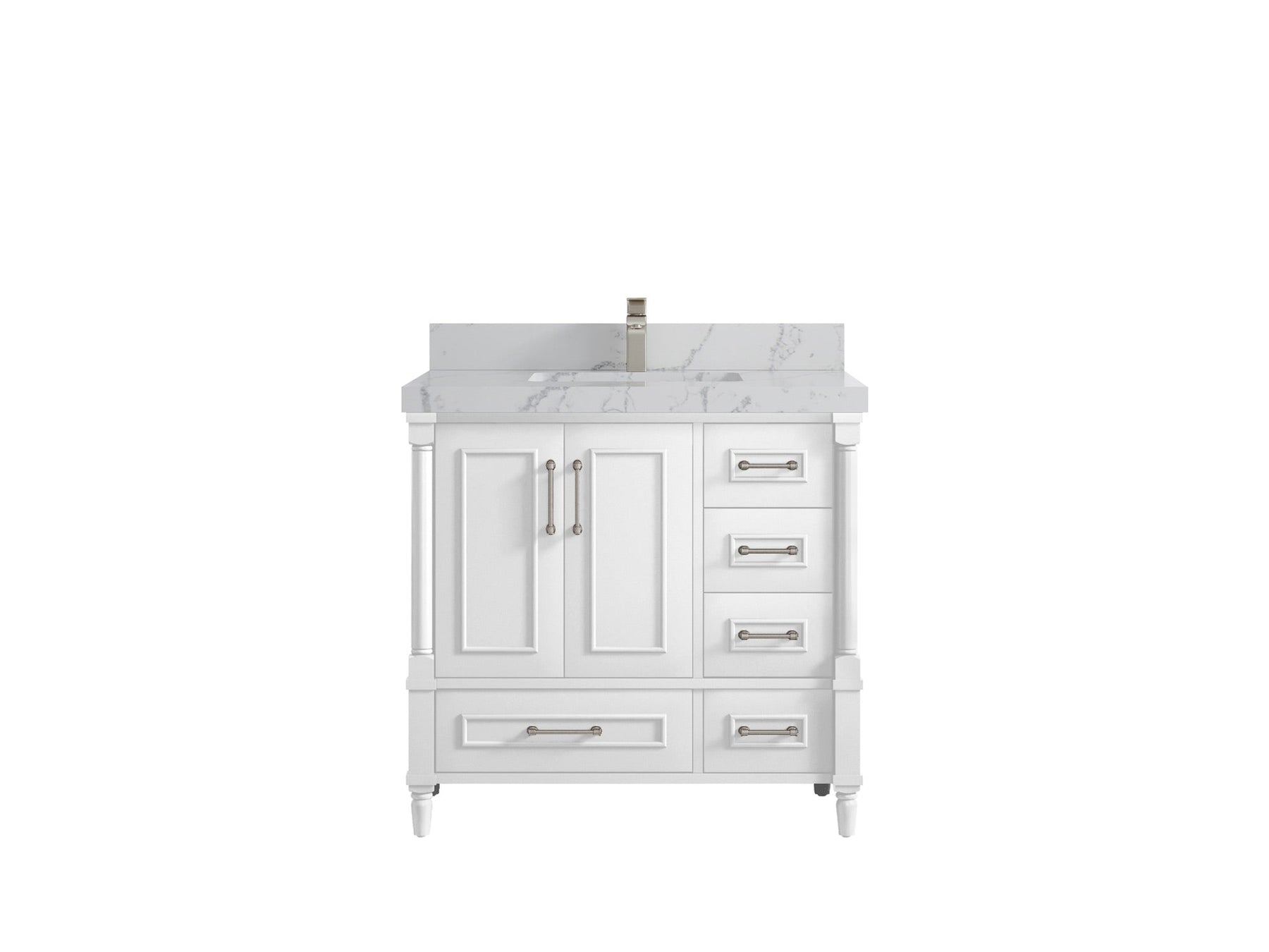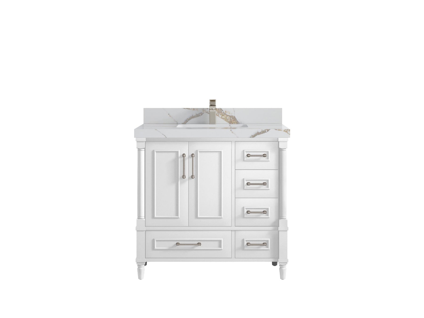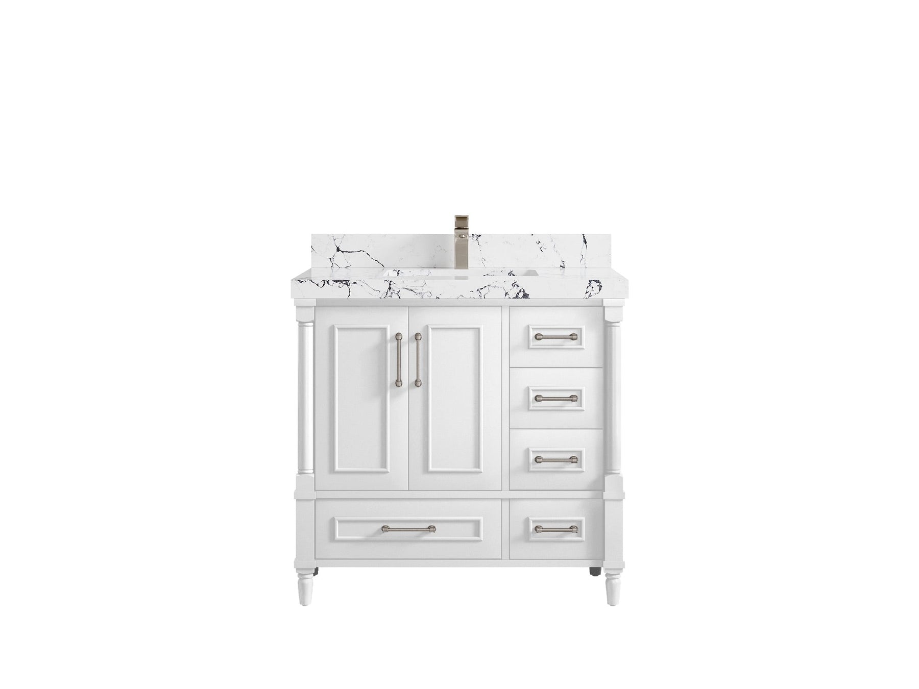 Faucet Hole(S): Comes with Single Faucet, 8 (in.) Widespread Faucet, Wall mount Faucets - Only Available for White Quartz and Carrara Quartz. (PLEASE ADD THIS CONFIGURATION UNDER COUNTERTOPS SECTION )