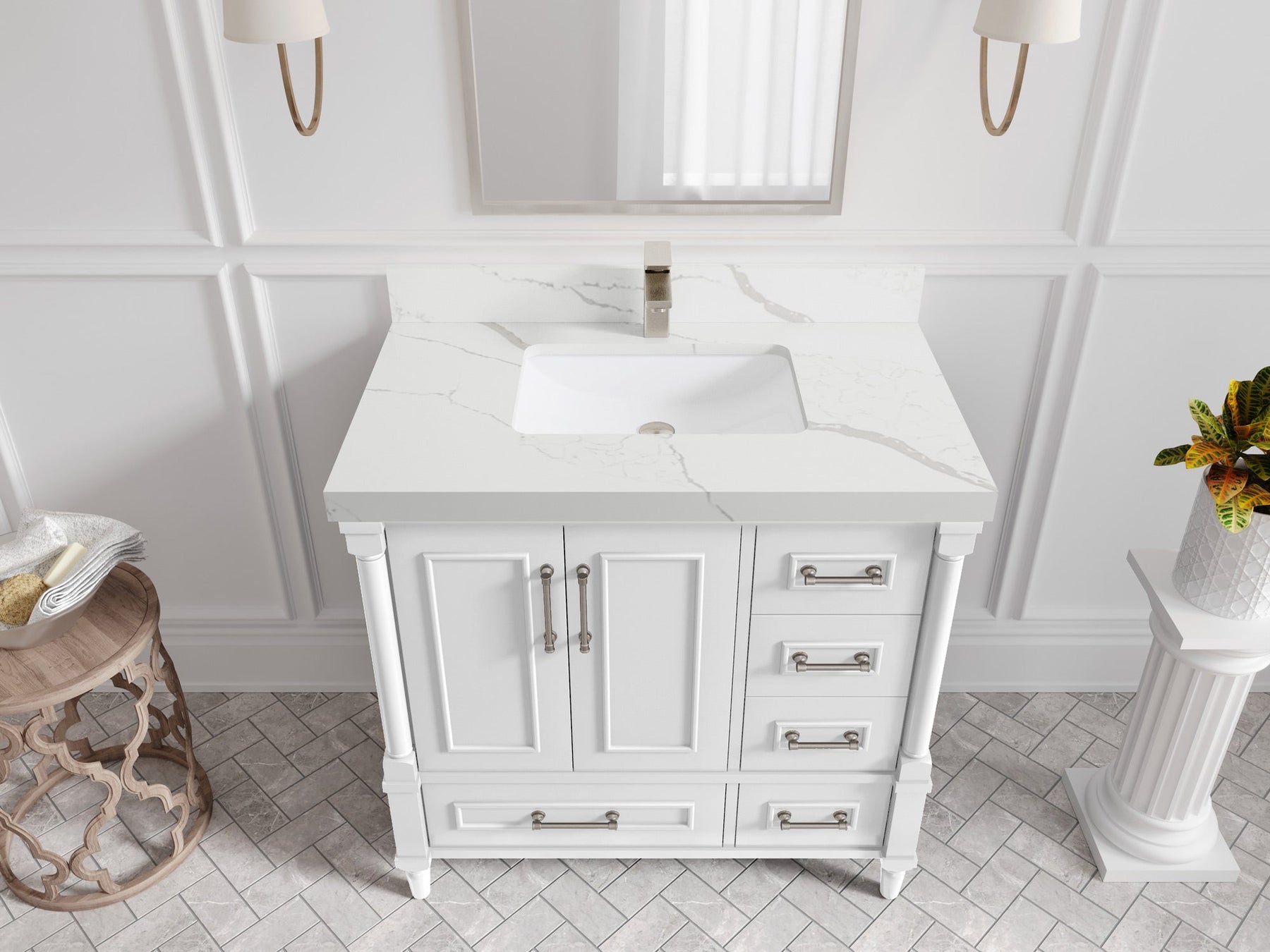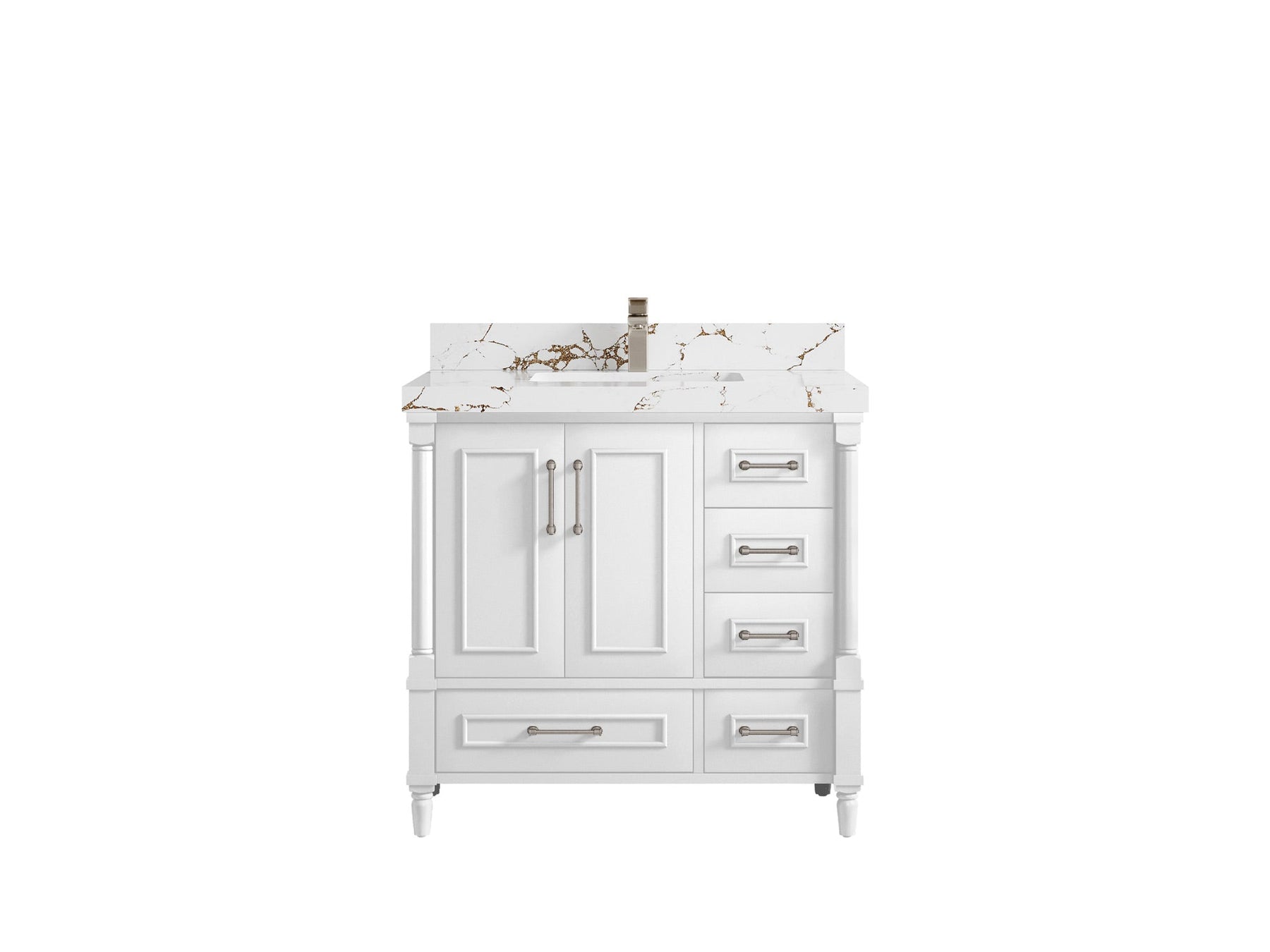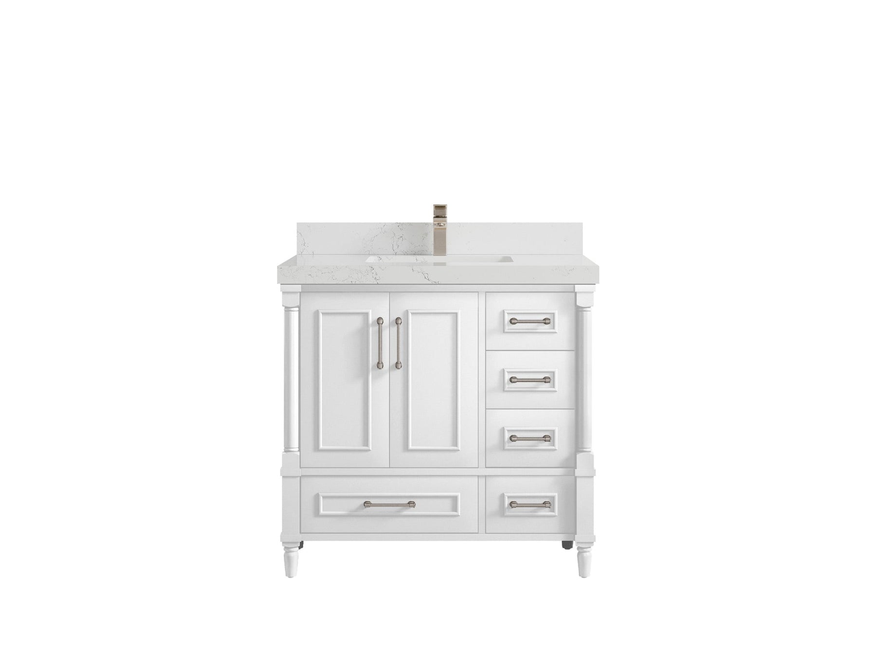 Faucet Hole(S): Comes with Single Faucet, 8 (in.) Widespread Faucet, Wall mount Faucets - Only Available for White Quartz and Carrara Quartz. (PLEASE ADD THIS CONFIGURATION UNDER COUNTERTOPS SECTION )