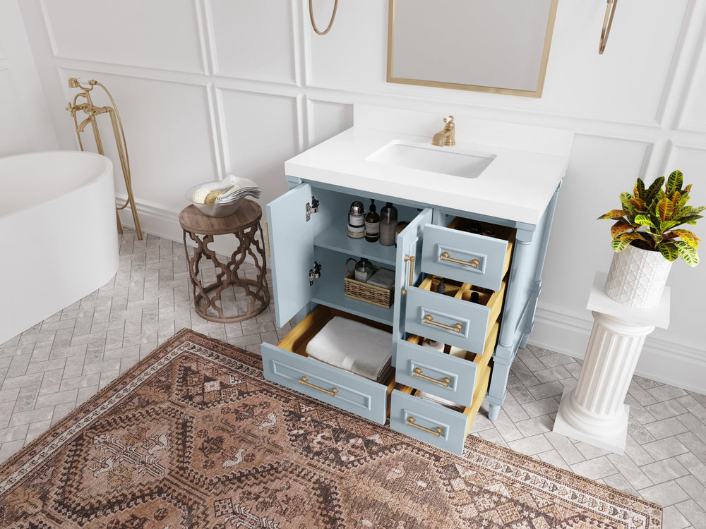 4. Ample Storage Space - The Aberdeen Vanity comes with spacious cabinet space to store all your bathroom essentials, including towels, toiletries, and more. The soft-close drawers and doors ensure that you can access your items easily and quietly.