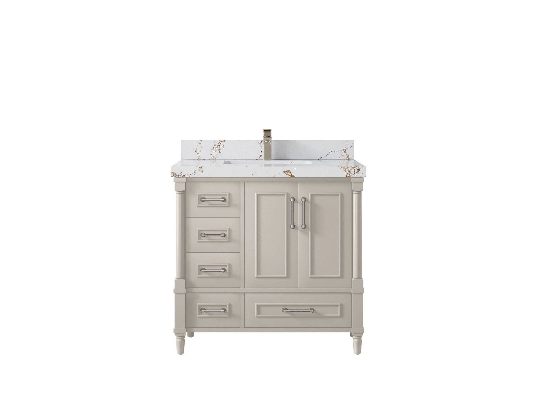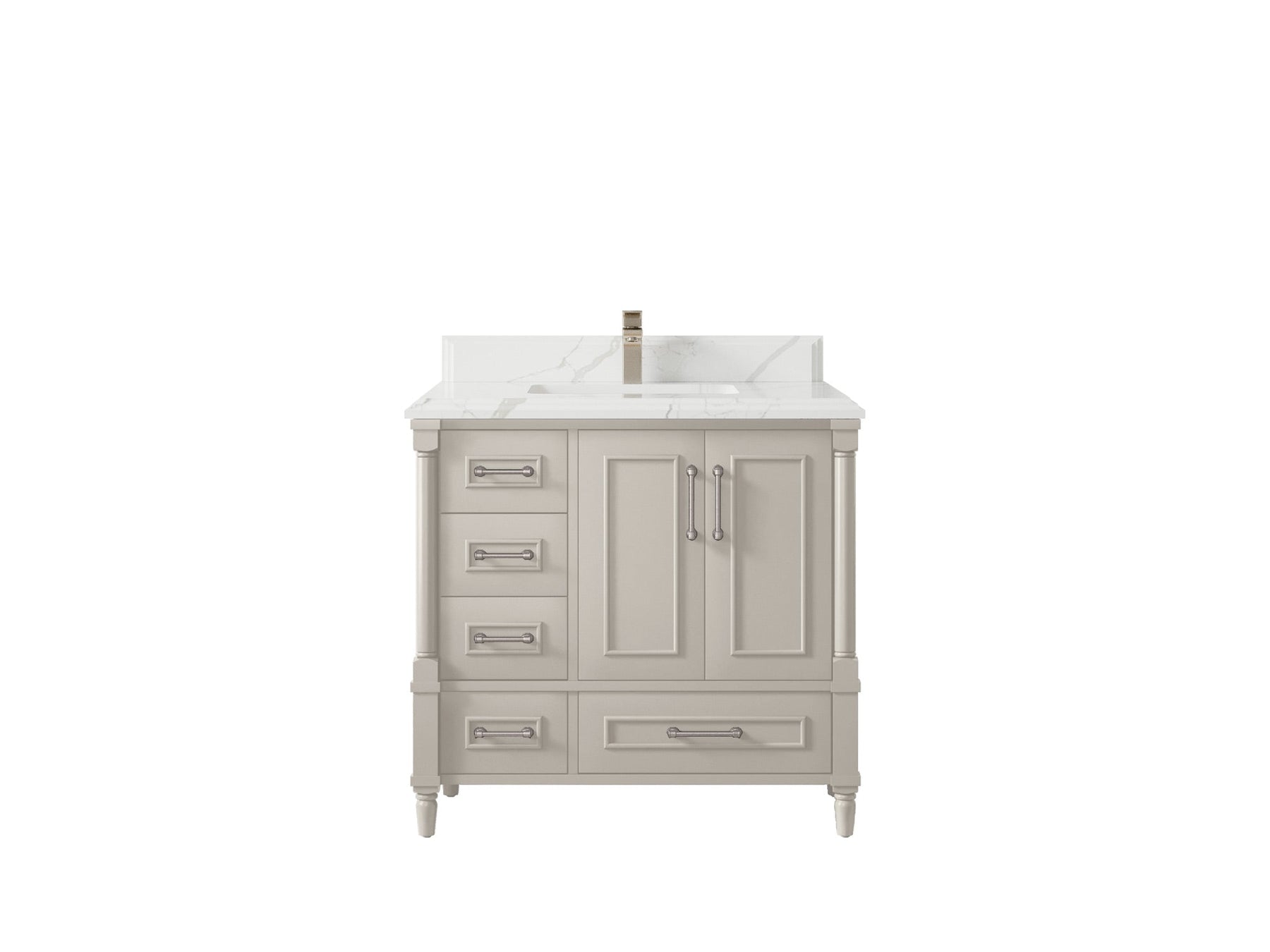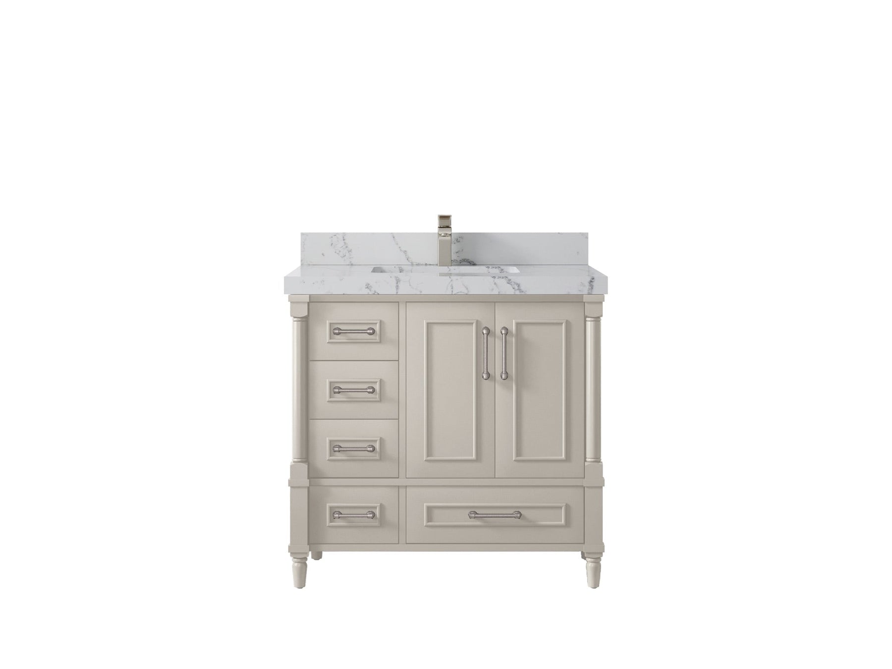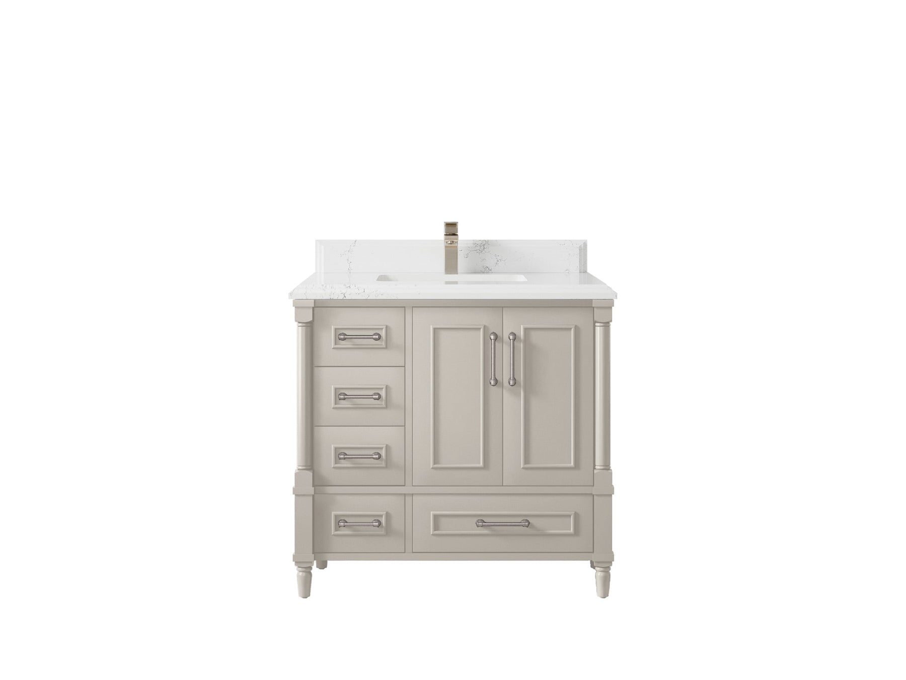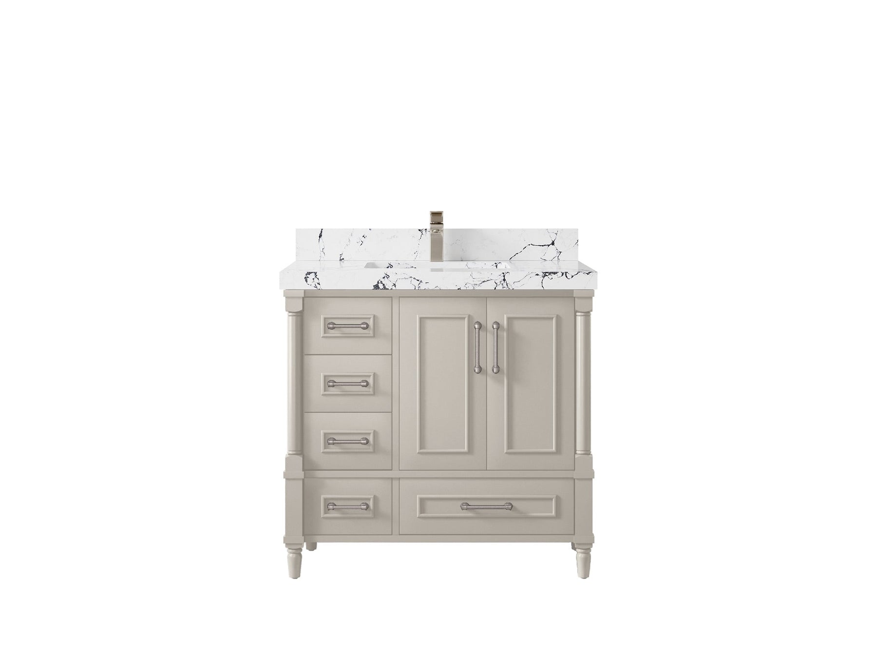 Faucet Hole(S): Comes with Single Faucet, 8 (in.) Widespread Faucet, Wall mount Faucets - Only Available for White Quartz and Carrara Quartz. (PLEASE ADD THIS CONFIGURATION UNDER COUNTERTOPS SECTION )