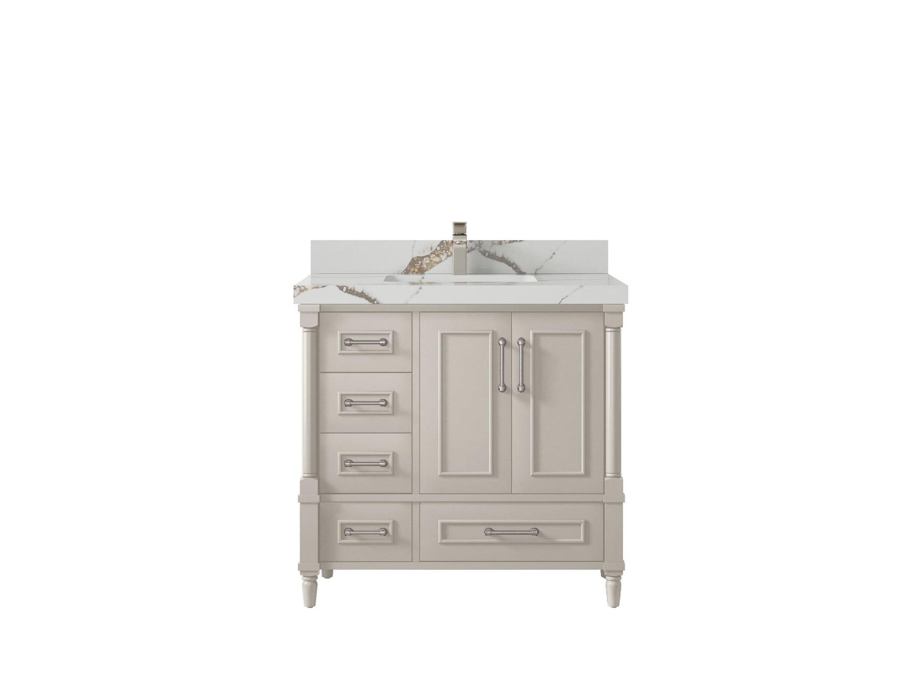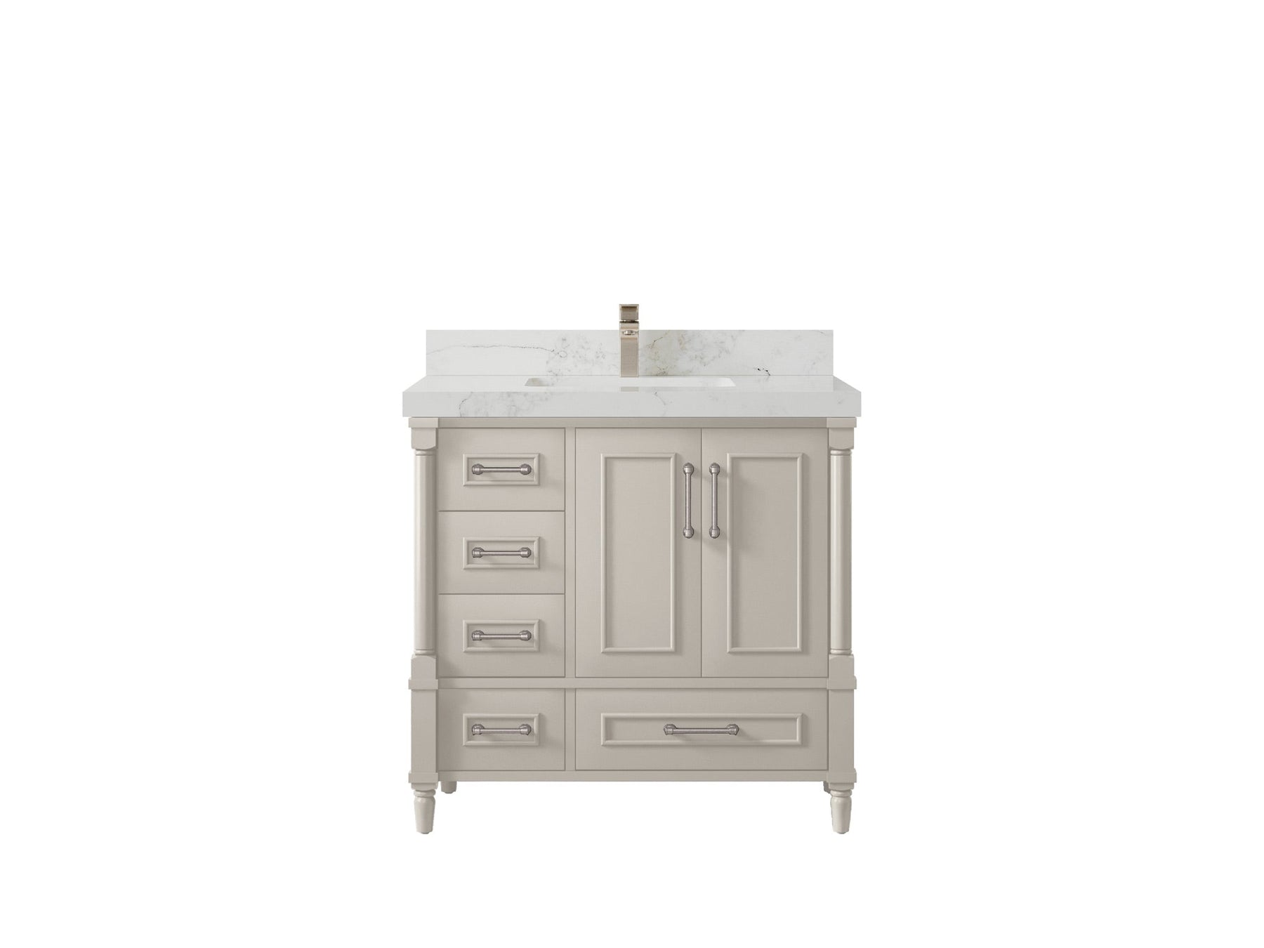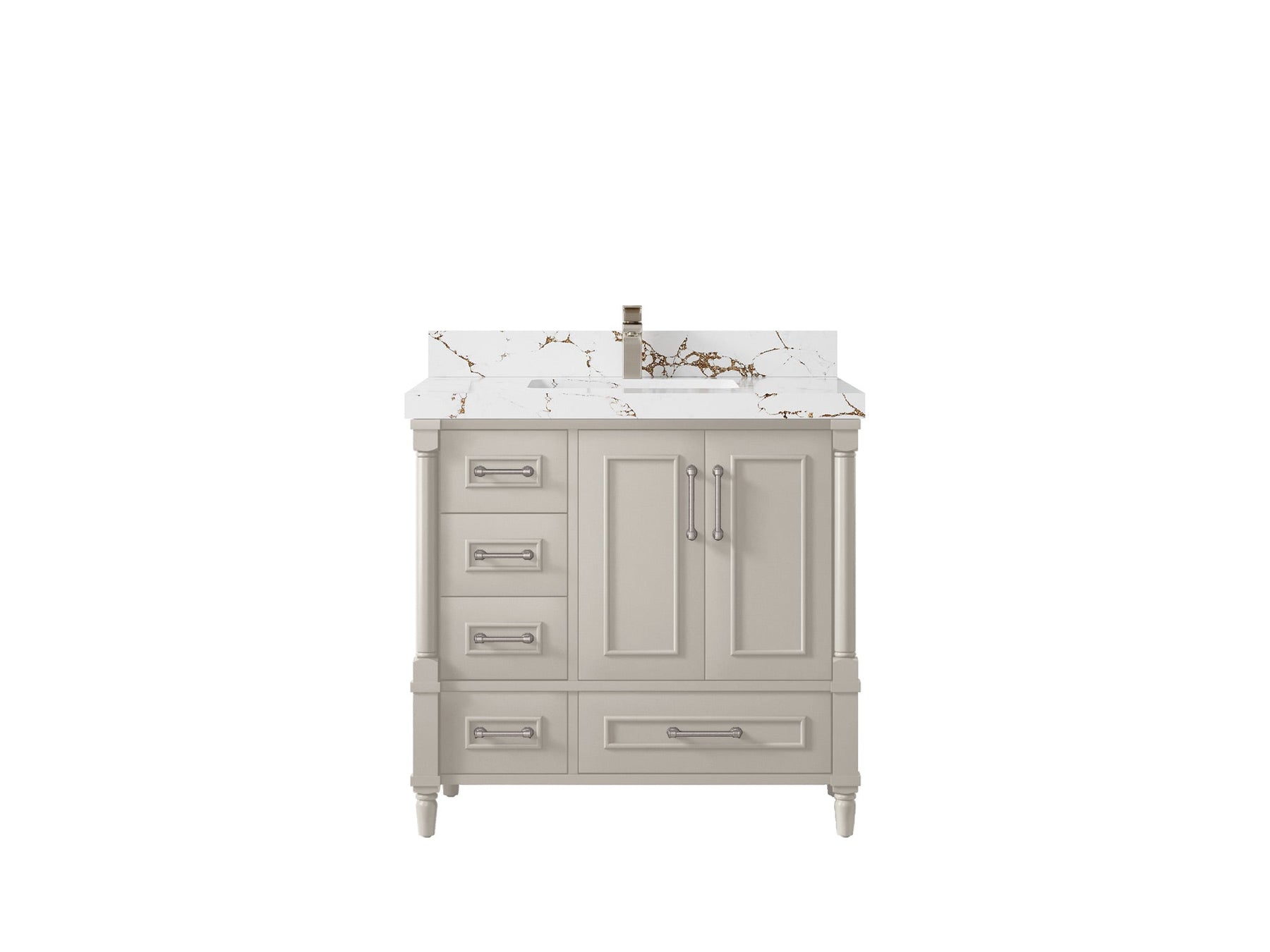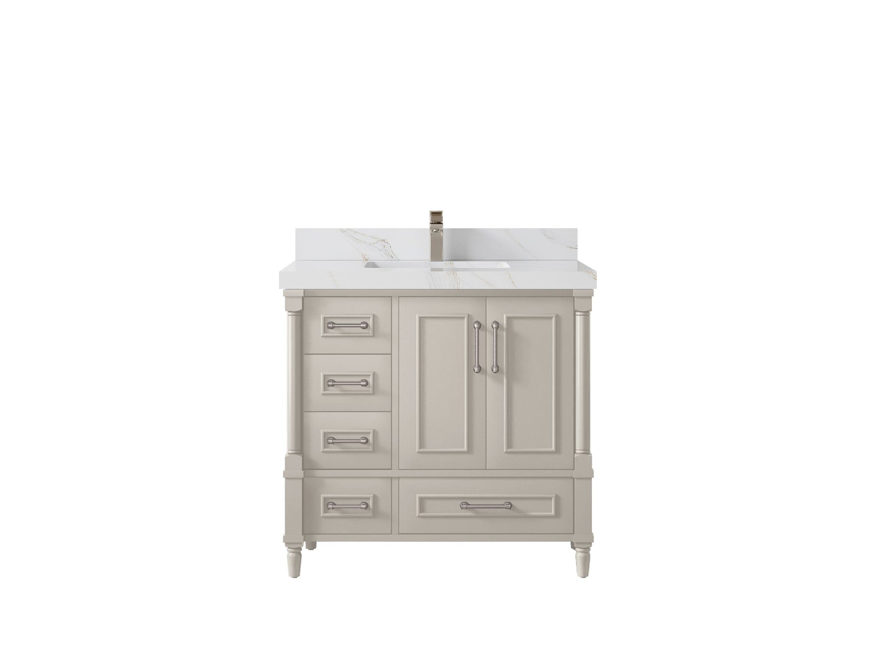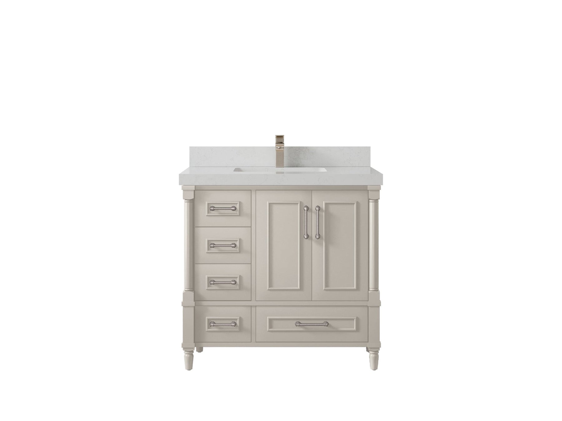 Faucet Hole(S): Comes with Single Faucet, 8 (in.) Widespread Faucet, Wall mount Faucets - Only Available for White Quartz and Carrara Quartz. (PLEASE ADD THIS CONFIGURATION UNDER COUNTERTOPS SECTION )