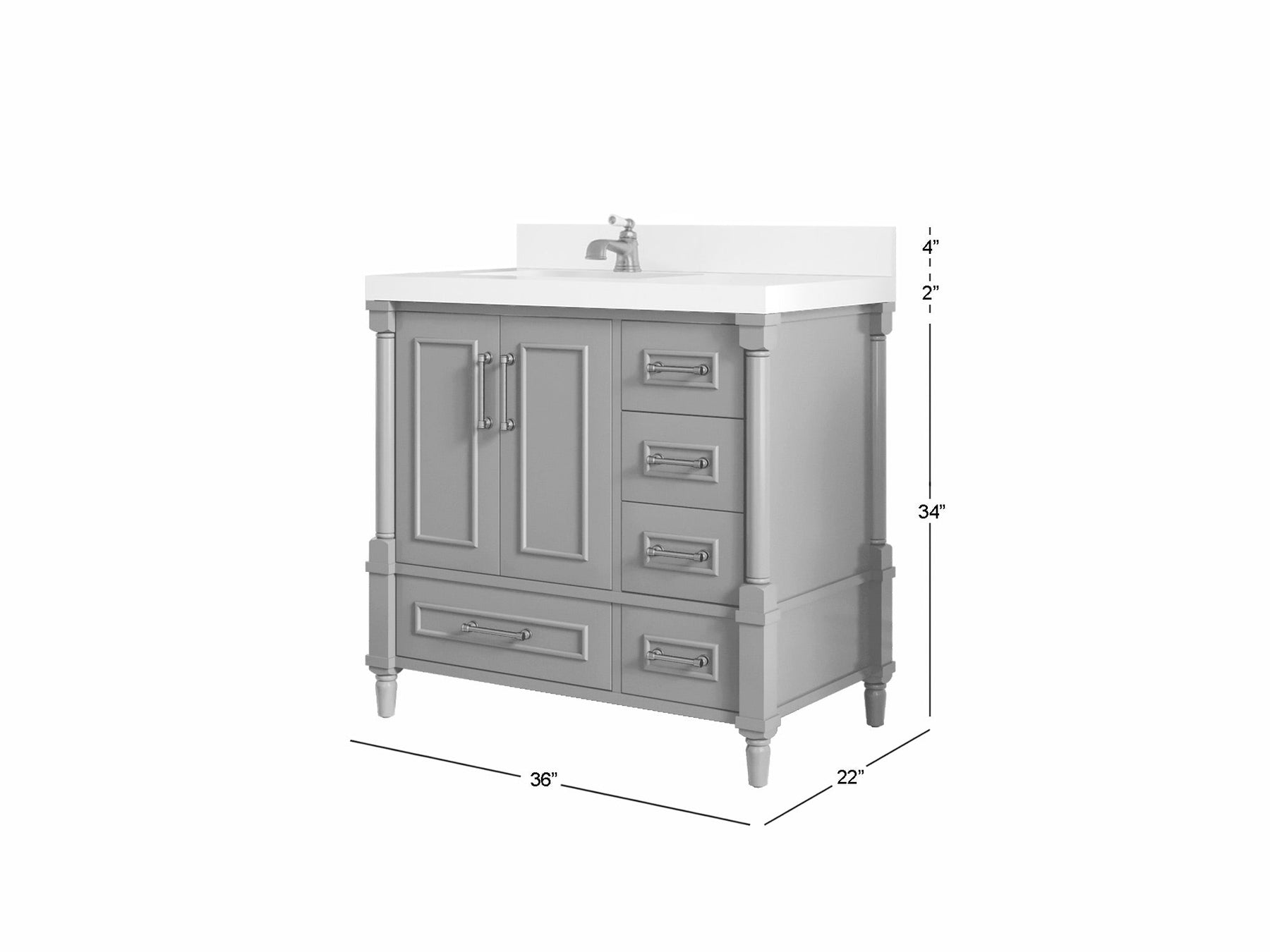 Includes cabinet base only. Countertop, sink, and faucet are not included.