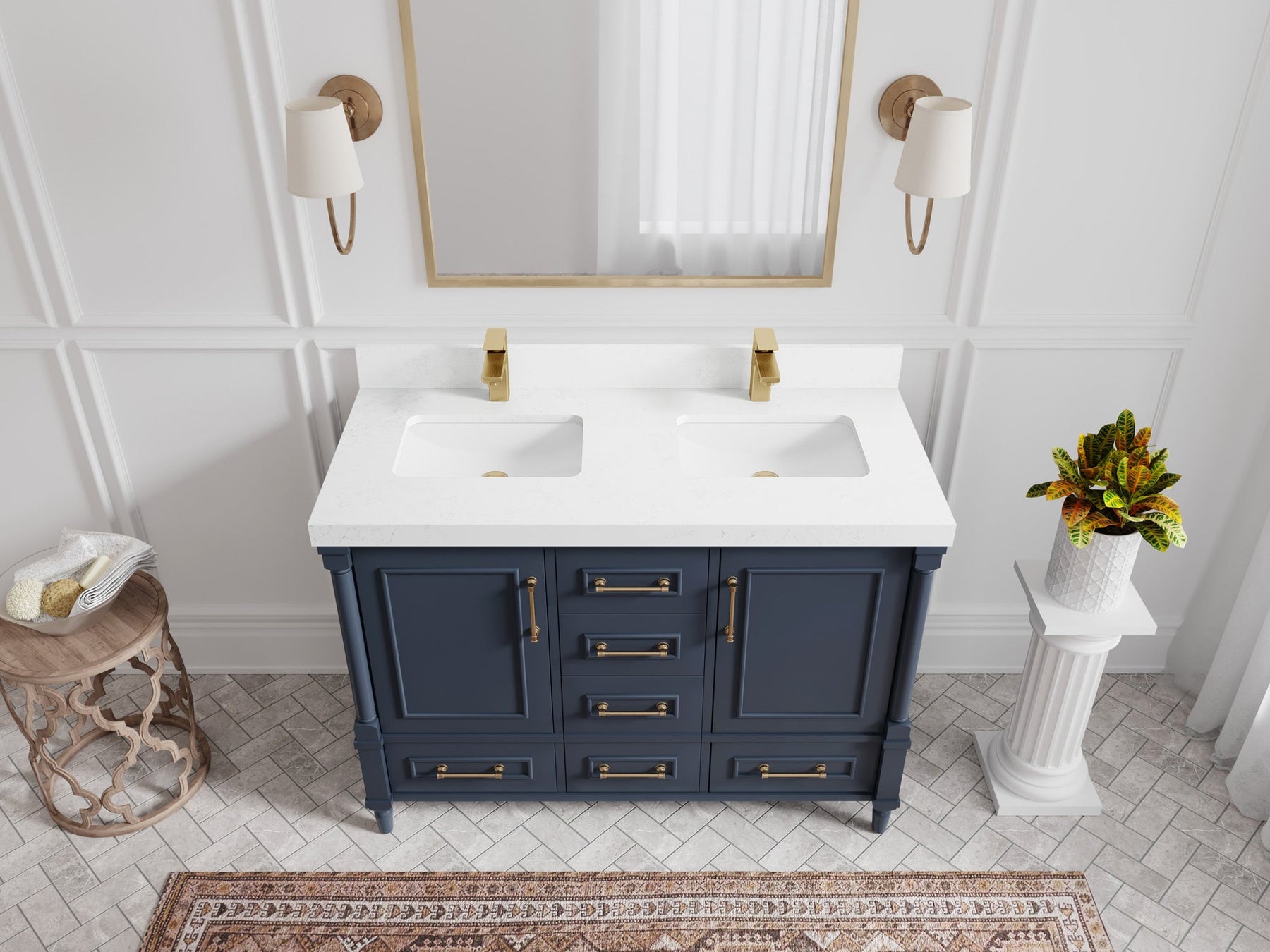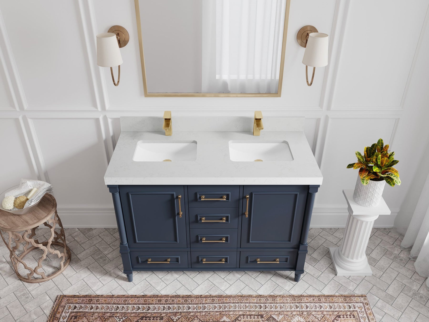 Vanity Countertops options: For Calacatta Laza Quartz, Empira White Quartz, Pure White Quartz we have 2 options Straight-Mitered Edge and Double Cove Edge; For Calacatta Nuvo Quartz, Carrara Marble, Carrara Quartz, Piatra Gray Quartz, Calacatta Black, Calacatta Gold, Venatino Quartz, Pearl Light Gray, Viola Brown, Viola Gold, Viola Night, Calacatta Sienna, 2" Calacatta Poanazzo we only have Straight - Mitered Edge option.