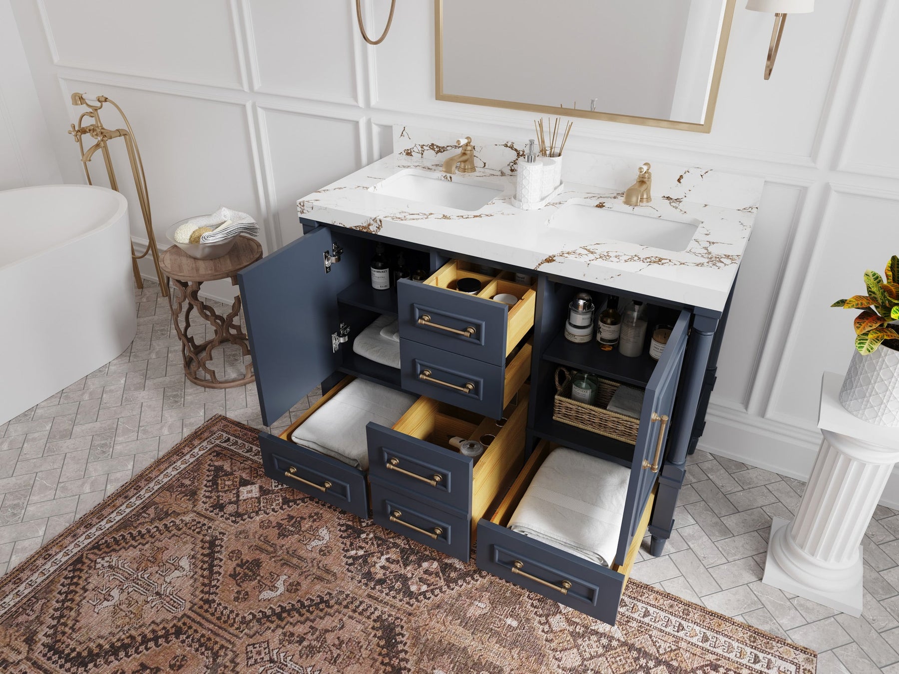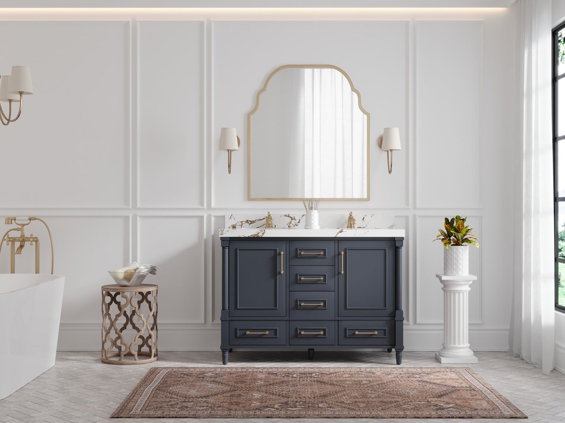 Hardware Finish: Alabaster, Coventry Gray, Fine Grain, White comes with Brushed Nickel Finish; Black, Black Top, Dark Forest Green, Evergreen, Hale Navy Blue, Pewter Green comes with Brushed Gold Finish