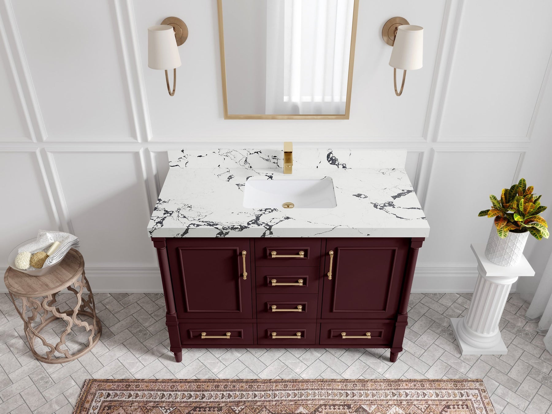 Vanity Countertops options: For Calacatta Laza Quartz, Empira White Quartz, Pure White Quartz we have 2 options Straight-Mitered Edge and Double Cove Edge; For Calacatta Nuvo Quartz, Carrara Marble, Carrara Quartz, Piatra Gray Quartz, Calacatta Black, Calacatta Gold, Venatino Quartz, Pearl Light Gray, Viola Brown, Viola Gold, Viola Night, Calacatta Sienna, 2" Calacatta Poanazzo we only have Straight - Mitered Edge option.